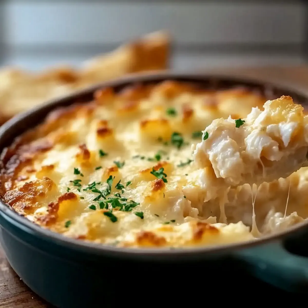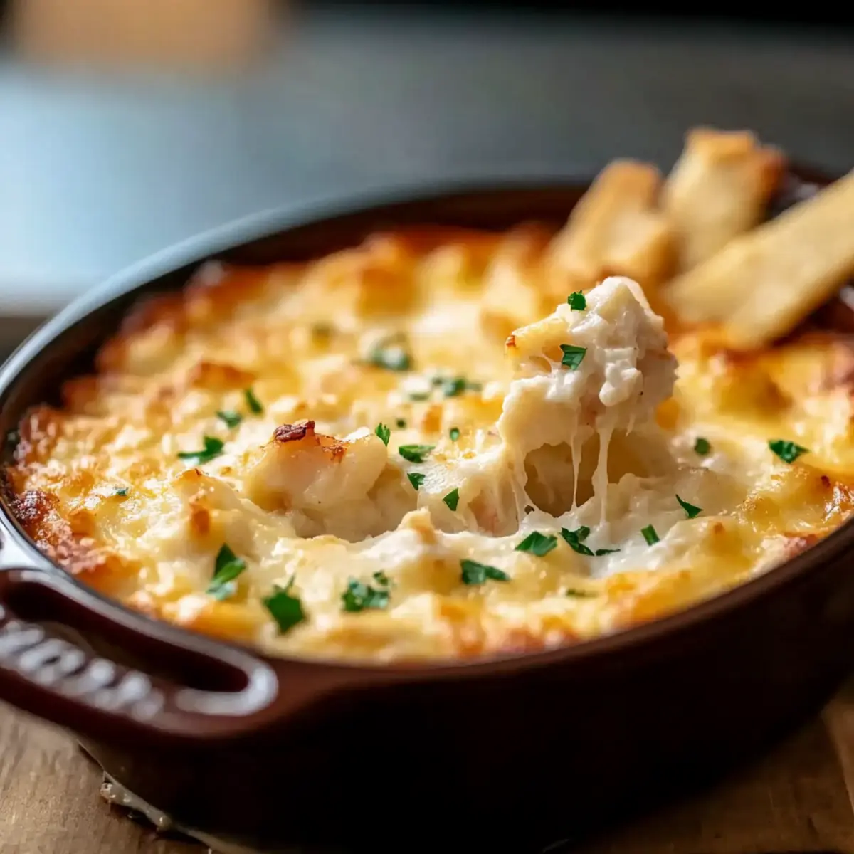 As I stood in my kitchen, the aroma of a savory seafood dip wafted through the air, transporting me to Joe’s Crab Shack without ever leaving home. This Joe’s Crab Shack Crab Dip perfectly encapsulates the essence of coastal cuisine while offering a creamy, luscious texture that everyone craves. It’s an effortless appetizer that whisks away the stress of dinner prep, making it an ideal choice for gatherings or cozy nights in. Not only is it quick to whip up, but it’s also a surefire hit amongst family and friends, adding a touch of seaside delight to your spread. So, are you ready to make some waves with this easy recipe that’s destined to become your go-to crowd-pleaser? Why is this crab dip so amazing? Creamy Bliss: This dip radiates indulgence with its smooth, velvety texture, perfect for satisfying your seafood cravings. Quick & Easy: It takes just a few minutes to prepare, allowing you to focus on enjoying your time with guests rather than slaving away in the kitchen. Crowd-Pleasing Flavor: The combination of fresh crab meat and zesty Old Bay brings a taste of the coast right to your table. Versatile Serving: Whether you’re using crackers, baguette slices, or fresh veggie sticks, this dip complements them all beautifully! Plus, try it chilled for a refreshing twist. Make it Your Own: Feel free to experiment with variations like adding jalapeños for a spicy kick or different cheeses to suit your palate. Trust me, this Joe’s Crab Shack crab dip will be the star of any gathering! Joe’s Crab Shack Crab Dip Ingredients For the Creamy Base • Cream Cheese – Provides a creamy base for the dip; substitute Neufchâtel for a lower-fat option. • Sour Cream – Adds tanginess and creaminess; Greek yogurt can be used for a healthier alternative. For the Star Ingredient • Crab Meat – Offers the key flavor profile; fresh lump crab is best for an authentic taste. Imitation crab is an option if fresh isn’t available. For Flavoring • Old Bay Seasoning – Contributes signature coastal flavors; adjust the amount based on your taste preferences. • Garlic Powder – Adds depth and aroma; fresh minced garlic can be used for a stronger flavor if desired. For the Final Touch • Shredded Cheese (e.g., Cheddar) – Enhances creaminess and flavor; freshly grated cheese melts better than pre-shredded. • Lemon Juice – Brightens the flavors and enhances the crab’s sweetness; fresh lemon juice is preferred for the best taste. This Joe’s Crab Shack crab dip is not only a delightful creamy dip but also an easy recipe that will impress at any gathering! Step‑by‑Step Instructions for Joe’s Crab Shack Crab Dip Step 1: Preheat the Oven Begin by preheating your oven to 350°F (175°C). This ensures the perfect temperature for baking, allowing your Joe’s Crab Shack crab dip to heat evenly and bubble delightfully. While the oven warms, grab a medium-sized mixing bowl for the upcoming ingredients. Step 2: Mix the Creamy Base In your mixing bowl, combine the cream cheese, sour cream, and a touch of mayonnaise. Using an electric mixer or a sturdy spatula, blend these ingredients together until the mixture is smooth and creamy, without any lumps. This rich base will provide the dip with its luscious texture. Step 3: Fold in Crab and Flavors Gently fold the crab meat into the creamy mixture, ensuring it’s evenly distributed. Then, add in the shredded cheese, Old Bay seasoning, garlic powder, and fresh lemon juice. Take care to incorporate everything harmoniously, keeping the crab meat intact to maintain its tender chunks, bringing the essence of Joe’s Crab Shack to your home. Step 4: Prepare for Baking Transfer the creamy crab mixture into a baking dish, spreading it evenly across the surface with your spatula. Smoothing the top will help it bake uniformly, allowing for a delightful bubbly and slightly golden finish that signals a perfectly cooked Joe’s Crab Shack crab dip. Step 5: Bake Until Bubbly Place the baking dish in the oven and bake for about 25 minutes. Keep an eye on the dip as it bakes; you’ll know it’s ready when the edges become bubbly and the top turns a light golden brown. This will enhance the flavors and create that enticing crust we all love. Step 6: Optional Broiling for a Golden Finish If you desire an extra golden top, switch the oven to broil for an additional 1-2 minutes, watching closely to prevent burning. This step isn’t necessary but adds a beautiful color and slight crispness to your Joe’s Crab Shack crab dip, making it even more inviting. Step 7: Serve Warm and Enjoy Once baked perfectly, remove your creamy crab dip from the oven and let it cool for a few moments. Serve it warm alongside an array of dippers such as crackers, toasted baguette slices, or fresh veggies, inviting everyone to dive into this delicious homemade offering. Storage Tips for Joe’s Crab Shack Crab Dip Fridge: Store leftover Joe’s Crab Shack crab dip in an airtight container for up to 3 days. The flavors actually improve after a day, making it even more delicious when reheated! Freezer: While it’s best enjoyed fresh, if you must freeze it, do so for up to 2 months. However, be aware that the creamy texture may change upon thawing. Reheating: To reheat, place the dip in a preheated oven at 350°F (175°C) for 10-15 minutes until warmed through. Avoid the microwave if possible, as it may dry out the dip. Chilled Serving: For a refreshing twist, refrigerate the dip for an hour before serving instead of baking. Enjoy it with dippers for a delightful cold dip alternative! What to Serve with Joe’s Crab Shack Crab Dip Imagine the warmth of a gathering filled with laughter and the enticing aroma of creamy, savory dips that fill the air as you enjoy quality time with your loved ones. Crusty Baguette Slices: These satisfyingly chewy slices provide the perfect crusty contrast to the creamy dip, enhancing each delightful bite. Fresh Vegetable Sticks: Crunchy carrots, cu