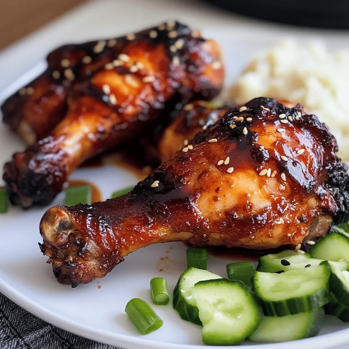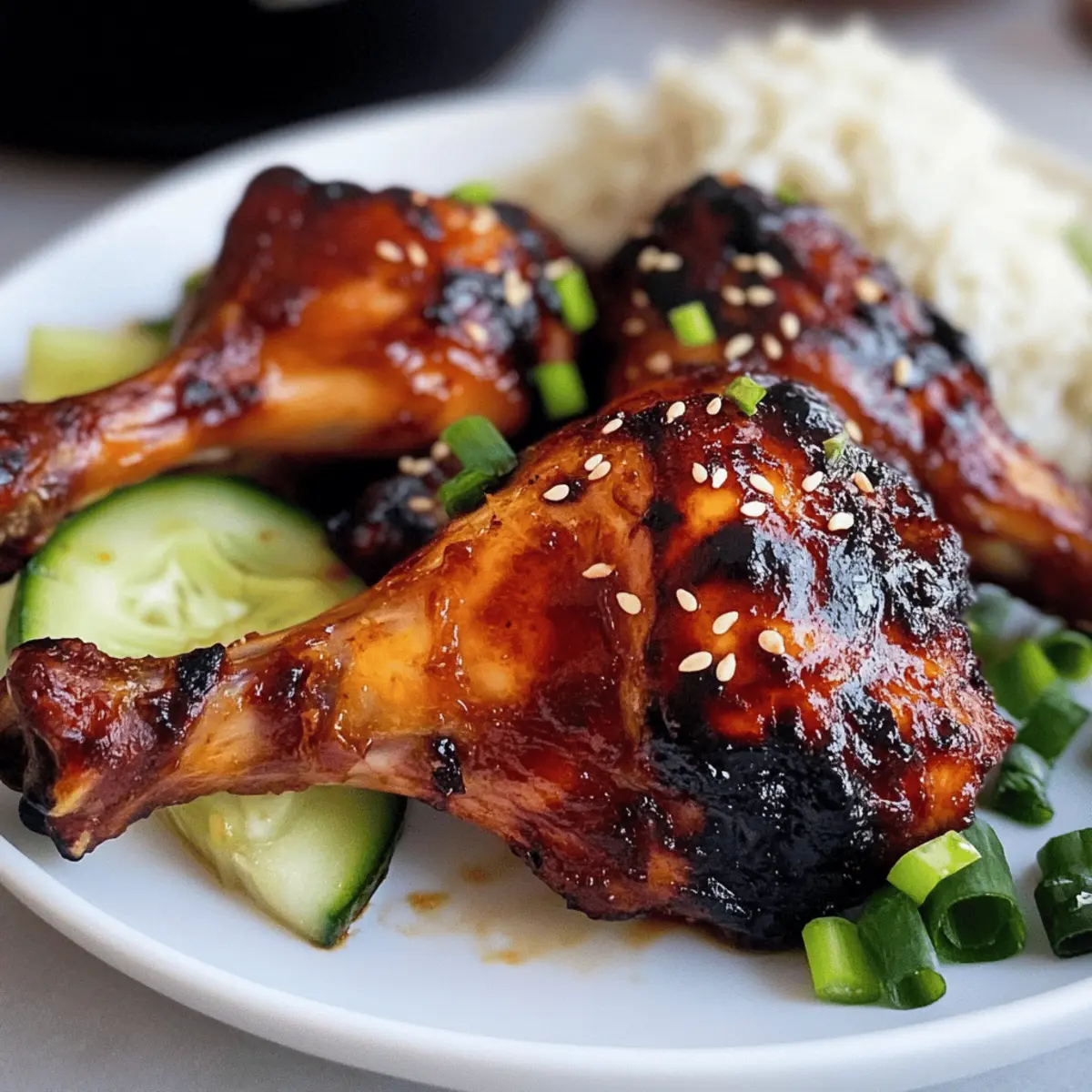 As I stood before my air fryer, the tantalizing aroma of Korean BBQ wafted through the kitchen, transporting me straight to a bustling market in Seoul. With just six simple ingredients and about 30 minutes to spare, I discovered the magic of Easy Air Fryer Kalbi Chicken Legs. This dish not only delivers incredible flavor but also offers a healthy twist on traditional barbecue favorites—perfect for those of us ready to ditch the fast food routine. Imagine juicy, tender chicken legs marinated in a savory-sweet blend that will have your taste buds dancing. Whether you’re entertaining guests or enjoying a cozy night in, this quick meal is bound to impress. Are you ready to elevate your weeknight dinners with a touch of Korean delight? Let’s dive into the recipe! Why Try Kalbi Chicken Legs Tonight? Simplicity at its finest: With just six ingredients and minimal prep, you can have a delicious meal in no time. Flavor-packed goodness: This marinade brings a delightful blend of sweet and savory, ensuring every bite is a treat for your taste buds. Versatile options: While this recipe shines with chicken legs, feel free to experiment with thighs, wings, or even drumsticks for a personalized touch! Crowd-pleaser appeal: Whether hosting dinner or enjoying a casual meal at home, this dish is sure to impress. Pair it with sides like steamed rice or even some tasty kimchi for a complete meal. Time-saving convenience: Forget the long cook times — in just 30 minutes, you’ll savor a dish that tastes like it’s been cooking all day. For another quick delight, check out my Fiery Chicken Ramen for a satisfying weeknight option! Kalbi Chicken Legs Ingredients • Ready to create a delicious meal? Here’s what you need: For the Chicken Chicken Quarters – The main protein; tender and juicy after cooking. Can substitute with chicken thighs, drumsticks, wings, or breasts. For the Marinade ½ Apple – Adds sweetness and moisture; can substitute with pear for a different flavor. ¼ Cup Soy Sauce – Provides umami and saltiness; low-sodium soy sauce may be used for a healthier alternative. ¼ Cup Mirin – Adds sweetness and enhances flavor; replace with rice vinegar and sugar if unavailable. 2” Ginger – Freshness and heat; use ground ginger in smaller amounts if needed. 4 Cloves Garlic – Flavor base; use garlic powder if fresh is not available. 2 Stalks Green Onion – Freshness and color; scallions can be an alternative. 2 Tablespoons Sesame Oil – Adds richness and authentic taste; use vegetable oil for a lighter flavor if necessary. 2 Tablespoons Rice Vinegar – Provides acidity; apple cider vinegar can be a substitute. 2 Tablespoons Sweetener (e.g., sugar) – Balances the flavor; honey or maple syrup can be an alternative. 1 Teaspoon Pepper – Adds heat and flavor; optional depending on spice level preference. Sesame Seeds (Optional) – Garnish for texture and flavor; can omit. Get ready to savor the incredible flavors of Kalbi Chicken Legs cooked to perfection in your air fryer! Step‑by‑Step Instructions for Easy Air Fryer Kalbi Chicken Legs Step 1: Prepare the Marinade In a blender, combine the apple, soy sauce, mirin, ginger, garlic, green onion, sesame oil, rice vinegar, sweetener, and pepper until you achieve a smooth consistency. This flavorful kalbi marinade will coat your chicken legs beautifully. Take a moment to smell the incredible aroma – you’re in for a treat! Step 2: Marinate the Chicken Cut slits into the chicken legs to help the marinade soak in deeper and amp up the flavor. Place the chicken legs in a zip-top bag and pour the prepared marinade over them, ensuring they are well coated. Seal the bag tightly, then massage the marinade into the chicken. Marinate for at least 1-2 hours, or ideally overnight in the refrigerator for maximum flavor infusion. Step 3: Preheat Air Fryer About 10 minutes before you’re ready to cook, preheat your air fryer to 375°F (190°C). This step is crucial, as a preheated air fryer ensures that your kalbi chicken legs will have that perfect crispy exterior while remaining juicy on the inside. Prepare your air fryer basket by lightly spraying it with cooking oil to prevent sticking. Step 4: Air Fry the Chicken Once the air fryer has preheated, carefully arrange the marinated chicken legs in the basket, making sure there’s enough space between each piece for even cooking. Cook for 25-30 minutes, flipping the chicken halfway through. You’ll know they’re ready when the skin turns golden-brown and the internal temperature reaches 165°F (74°C), ensuring a deliciously juicy bite. Step 5: Serve After cooking, let the kalbi chicken legs rest for about 5 minutes to retain their juices and flavor. Transfer them to a serving platter and garnish with chopped green onions and sesame seeds if desired. This extra touch adds freshness and a beautiful presentation, perfect for impressing your family or guests at dinner. Helpful Tricks for Kalbi Chicken Legs Proper Marinade Time: Allow the chicken to marinate for at least 1-2 hours, but ideally overnight. This enhances the flavor of your kalbi chicken legs significantly. Avoid Overcrowding: When placing your chicken in the air fryer, make sure there’s space between each piece. Crowding can lead to uneven cooking and prevent that deliciously crispy skin. Check Doneness: Use a meat thermometer to ensure your chicken reaches an internal temperature of 165°F (74°C). This guarantees your kalbi chicken legs will be juicy and safe to eat. Experiment with Cuts: Don’t hesitate to swap out chicken legs for thighs, wings, or drumsticks. Each cut brings its unique texture and flavor to your dish, keeping dinner exciting! Value of Preheating: Always preheat your air fryer before cooking. It helps achieve that perfect golden-brown exterior while locking in moisture for succulent meat. How to Store and Freeze Kalbi Chicken Legs Fridge: Store leftover kalbi chicken legs in an airtight container for up 