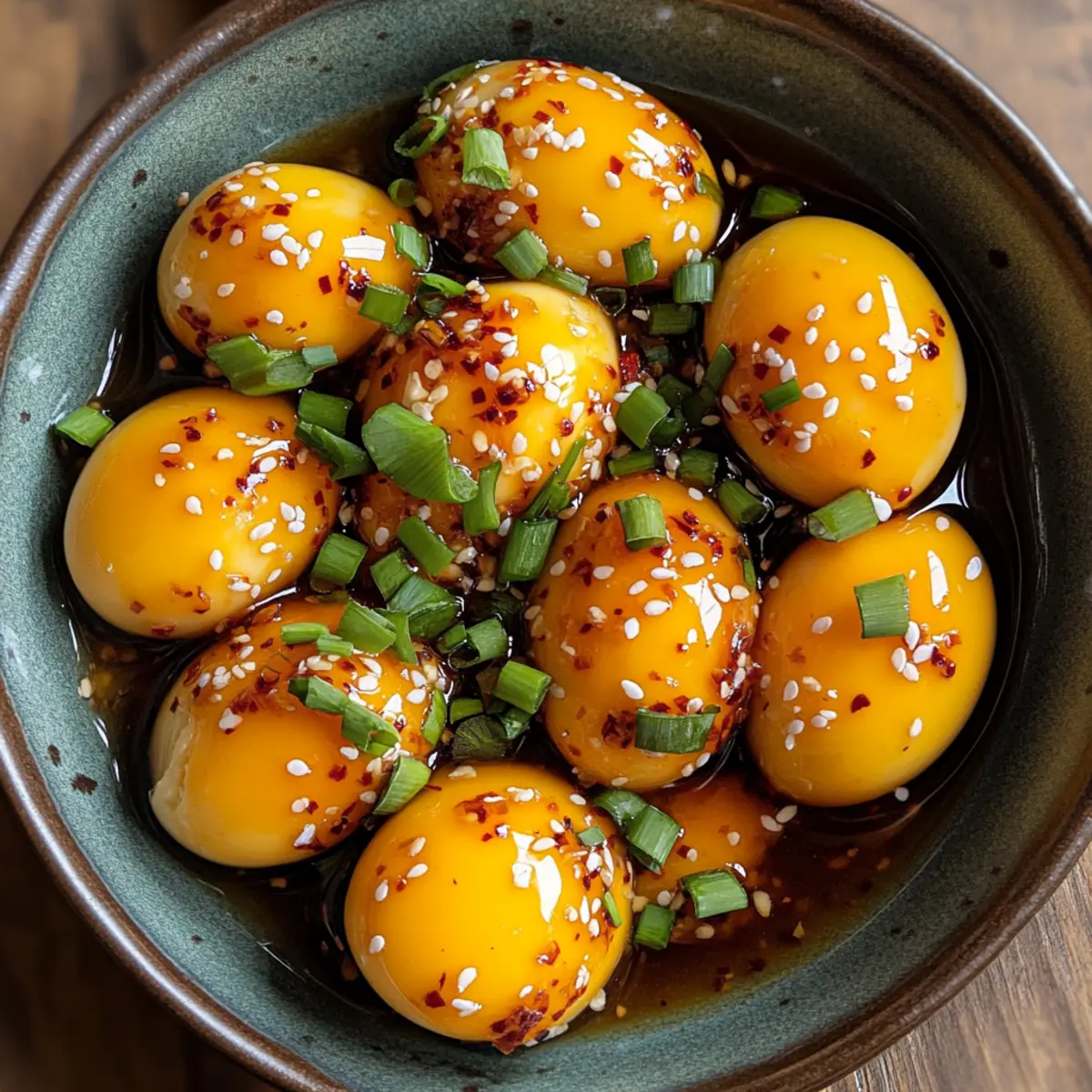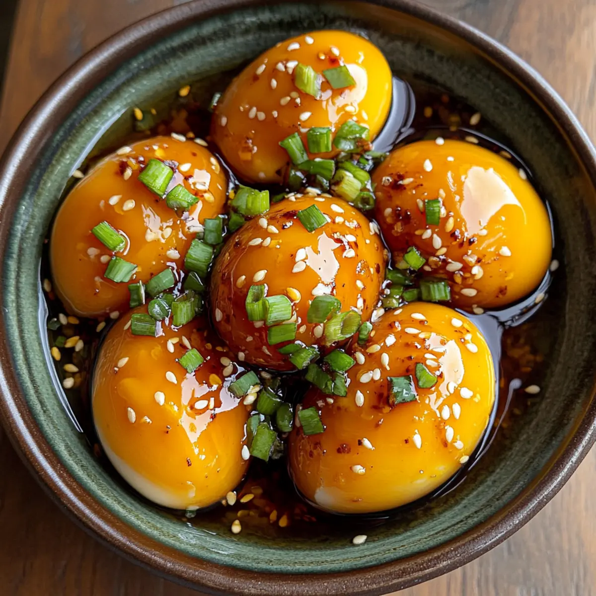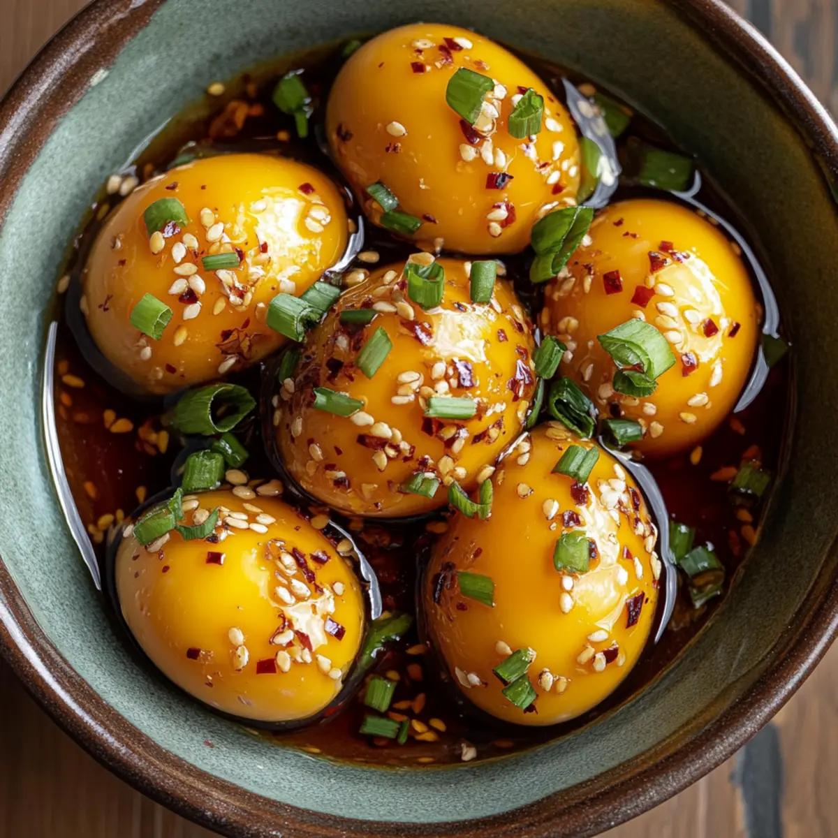 If you’re anything like me, you often crave a little culinary adventure that’s both quick and easy to whip up. Enter Korean Marinated Eggs, or Mayak Gyeran—a dish that truly elevates a simple ingredient into something extraordinary. These soft-boiled gems soak in a savory soy-based marinade, resulting in a delightful blend of umami flavors. What’s even better is that these addictive treats are budget-friendly and versatile; they can be enjoyed as a snack, tossed over rice, or stirred into noodles. Imagine enhancing your meals with just a few ingredients, all while enjoying the satisfying texture of soft yolks. Ready to transform your everyday eggs into a flavor-packed sensation? Let’s dive into this recipe and bring a taste of Korea into your kitchen! Why are Korean Marinated Eggs a must-try? Addictive flavor: The umami richness from the soy sauce combined with spices makes these eggs captivating and hard to resist. Budget-friendly: Using simple ingredients, you can create a deluxe snack or side dish without breaking the bank. Versatile: Enjoy them in various ways—on rice, in noodles, or as a stand-alone treat that fits seamlessly into any meal. Quick Preparation: In just a few steps, you can create a delicious dish that’s ready to elevate your culinary repertoire. For a delightful breakfast pairing, consider making an Eggs Benedict Casserole to accompany your marinated eggs! Impressive Presentation: They look stunning served with garnishes, turning everyday meals into gourmet experiences. Korean Marinated Eggs Ingredients For the Eggs • Medium Eggs – Provide the base ingredient for the recipe. Large eggs are recommended for better texture. For the Marinade • Soy Sauce – Adds depth of umami flavor and saltiness. Substitution: Tamari or coconut aminos for a gluten-free option. • Garlic – Enhances the marinade’s flavor with its aromatic notes. Prep Note: Fresh is best, but garlic powder can be used in a pinch. • Chili Peppers – Introduces heat and spice. Substitution: Red pepper flakes or sriracha to adjust spiciness level. • Brown Sugar – Balances the savory flavors with a touch of sweetness. Substitution: Honey or maple syrup. • Sesame Oil – Provides a nutty richness critical to the dish. A little goes a long way; consider less for milder flavor. For Garnishing • Green Onions – Adds freshness and crunch as a garnish. Substitution: Shallots or chives for similar flavor qualities. These Korean Marinated Eggs are sure to become one of your go-to recipes! Step‑by‑Step Instructions for Korean Marinated Eggs Step 1: Boil Eggs Start by bringing a medium saucepan of water to a rolling boil. Carefully add medium eggs to the boiling water, ensuring they are submerged. Allow them to cook for about 6 minutes for a jammy yolk consistency. Once the time is up, remove the eggs and transfer them immediately to an ice bath—this helps stop the cooking process and makes peeling easier. Step 2: Prepare Marinade While the eggs are cooling, gather a mixing bowl and whisk together your soy sauce, minced garlic, chopped chili peppers, brown sugar, and sesame oil. Mix thoroughly until the sugar dissolves and the marinade is well-combined. Be sure to taste it; this savory mixture should have a lovely balance of salty, sweet, and spicy flavors that will make your Korean Marinated Eggs irresistible. Step 3: Cool and Peel After about 5-10 minutes in the ice bath, take each egg out and gently tap them on a hard surface to crack the shell. Under running water, peel the eggs carefully to avoid any breaks. The running water helps slip off the shell more easily, resulting in perfectly smooth eggs ready for marinating. Set the peeled eggs aside in a clean container. Step 4: Marinate Place the peeled eggs in an airtight container and pour the prepared marinade over them, ensuring they are fully submerged. Seal the container tightly and refrigerate for at least 6 hours, or ideally overnight. This allows the flavors to deeply penetrate the eggs, turning them into flavorful Korean Marinated Eggs that are sure to delight your palate. Step 5: Serve When ready to serve, take the marinated eggs out of the fridge and slice them in half to reveal the beautifully jammy yolk. Garnish with chopped green onions and, if desired, sprinkle some sesame seeds on top. Drizzle with chili oil for an extra kick, and prepare to enjoy the delightful umami explosion of flavors from your homemade Korean Marinated Eggs. Make Ahead Options Preparing these Korean Marinated Eggs in advance is a brilliant time-saver for busy weeknights! You can boil and peel the eggs up to 3 days in advance, storing them in an airtight container in the refrigerator. The marinade can also be mixed ahead and kept refrigerated for about 24 hours. For maximum flavor, marinate the peeled eggs overnight; the longer they sit, the better the flavors develop. When you’re ready to serve, simply remove the eggs from the marinade, slice them in half, and garnish as desired. This way, you’ll enjoy delicious, ready-to-eat marinated eggs that are just as delightful as fresh! Expert Tips for Korean Marinated Eggs Marination Time: Allow the eggs to marinate overnight for the best flavor infusion, resulting in deeply seasoned Korean Marinated Eggs. Quality Ingredients: Use high-quality soy sauce for a richer umami flavor; cheap alternatives may compromise the taste. Perfect Peeling: Always cool the eggs in an ice bath before peeling to ensure a smooth shell removal, preventing any breakage. Adjust Spiciness: Feel free to adjust the amount of chili to suit your taste—if you’re unsure, start with a smaller amount and add more if desired. Proper Storage: Store marinated eggs in the refrigerator and consume within 4 days for optimal freshness and flavor. Storage Tips for Korean Marinated Eggs Fridge: Keep the marinated eggs in an airtight container in the refrigerator for up to 4 days to maintain their delicious flavor and texture. Fr