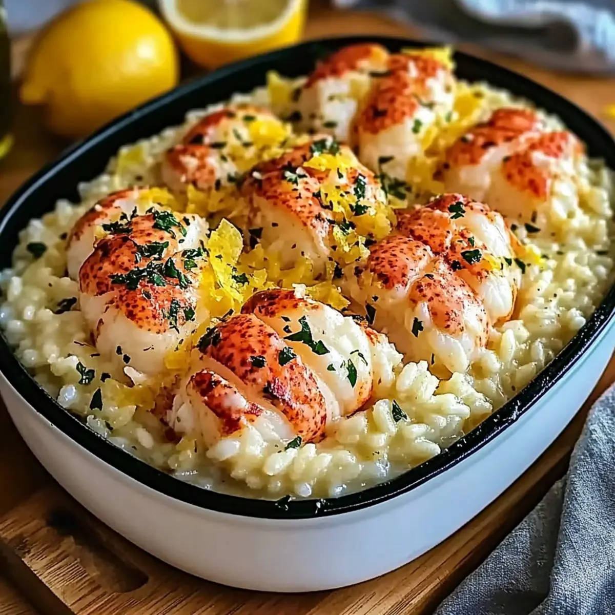 The aroma of rich, buttery lobster sizzling in lemon-infused goodness wafts through the kitchen, sparking a craving for something indulgent yet comforting. Enter the showstopper: Lemon Butter Lobster Risotto. This elegant dish beautifully marries the sweet tenderness of lobster with the creamy, velvety luxury of Arborio rice, making it the perfect choice for a romantic dinner or an upscale household treat. Not only does it impress with its restaurant-quality presentation, but it also delivers on flavor and satisfaction without taking hours to prepare. Ready to elevate your dining experience in just one pot? Let’s dive into the bliss of cooking this delectable risotto that promises to whisk you away to culinary bliss! Why is Lemon Butter Lobster Risotto a Must-Try? Indulgent Flavor: The combination of luscious lobster and creamy risotto provides a luxurious experience that’s perfect for special occasions. Ease of Preparation: You won’t spend all day in the kitchen; this recipe is designed for busy home cooks who crave gourmet dining without the fuss. Impressive Presentation: The vibrant colors and elegant plating make this risotto a showstopper, guaranteed to wow your guests. Customization Options: Want to lighten it up? Swap in cauliflower rice or add seasonal vegetables like peas for a fresh twist! Versatile Pairings: Serve it with a glass of chilled Chardonnay or alongside grilled asparagus for a complete and sophisticated meal. With this Lemon Butter Lobster Risotto, you’re not just cooking; you’re creating an unforgettable dining experience that will leave everyone asking for seconds! Lemon Butter Lobster Risotto Ingredients For the Risotto • Lobster – Sweet and tender, the star ingredient of this luxurious dish; consider using shrimp as a substitute. • Arborio Rice – The essential grain that gives risotto its creamy texture; no true substitutes exist without compromising the dish’s identity. • Parmesan Cheese – Adds a nutty richness; freshly grated is best, and Pecorino Romano works as an alternative. • Fresh Lemon Juice & Zest – Brightens the dish while balancing its richness; it’s irreplaceable, but additional citrus can complement the flavor. • Dry White Wine – Adds depth and acidity; swap with broth and a splash of apple cider vinegar for a non-alcoholic version. • Warm Seafood Broth – Enriches the risotto; low-sodium options are recommended for better control of saltiness. Chicken broth can work in a pinch. For Cooking • Butter – Used for sautéing and enriching the dish; choose high-quality European-style butter for extra creaminess. • Onions – Adds a touch of sweetness and depth; always opt for fresh onions for the best flavor. Embrace the delightful interplay of flavors with this Lemon Butter Lobster Risotto as the centerpiece of your meal, and watch your loved ones relish every creamy bite! Step‑by‑Step Instructions for Lemon Butter Lobster Risotto Step 1: Cook the Lobster Begin by heating a skillet over medium heat and adding a generous tablespoon of butter. Once melted, add the lobster meat and sauté for about 3-4 minutes until it turns opaque and tender. Your lobster should be bright in color and slightly firm to the touch. Remove it from the skillet and set aside, keeping it warm while you prepare the risotto. Step 2: Sauté the Onions In the same skillet, add another tablespoon of butter along with finely diced onions. Cook over medium heat for 3-5 minutes until the onions become translucent and fragrant. Stir occasionally to prevent them from browning. The softened onions will enhance the base of your Lemon Butter Lobster Risotto with rich flavor. Step 3: Toast the Rice Next, add 1 cup of Arborio rice into the skillet with the sautéed onions, stirring gently for about 2-3 minutes. You’ll want to coat the rice in the butter while toasting it; the rice should turn slightly translucent at the edges. This step is crucial as toasting helps release the rice’s starch, contributing to a creamy texture later. Step 4: Add the Wine Pour in ½ cup of dry white wine to the rice, stirring continuously for about 2 minutes until the liquid is fully absorbed. You’ll notice the rice will become fragrant and a little sticky, which is a great sign that it’s absorbing the flavors needed for the Lemon Butter Lobster Risotto. Step 5: Gradually Add Broth Now, slowly begin adding 4 cups of warm seafood broth, half a cup at a time. Stir frequently and wait until most of the liquid is absorbed before adding more, which typically takes about 5-7 minutes for each addition. This method allows the rice to release its starches slowly, giving you that desired creaminess in the risotto. Step 6: Incorporate the Lobster Once the risotto is creamy and the rice is al dente, fold in the sautéed lobster, ½ cup of grated Parmesan cheese, and an additional tablespoon of butter off the heat. Stir gently to combine everything well; the lobster should be heated through, and the risotto will be luxuriously creamy. Step 7: Finish with Lemon Just before serving, stir in the zest and juice of one fresh lemon. This citrus will brighten up your Lemon Butter Lobster Risotto perfectly, enhancing its flavors. Give everything a final taste and adjust seasoning as necessary, then serve immediately for the best texture and taste. Make Ahead Options These Lemon Butter Lobster Risotto components are perfect for meal prep, making it easy to enjoy a gourmet dish on a busy weeknight! You can sauté the lobster and store it in the refrigerator for up to 3 days, which allows the flavors to meld. Additionally, you can prepare the sautéed onions and toasted Arborio rice (step 1 to step 3) and refrigerate them up to 24 hours before finishing the risotto. When you’re ready to serve, simply reheat the mixture, add the wine and warm broth gradually as per the original recipe, then fold in the prepped lobster and finish with the lemon juice and zest for that fresh, bright f