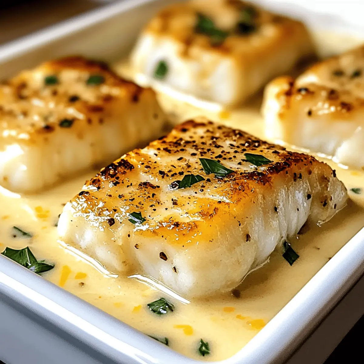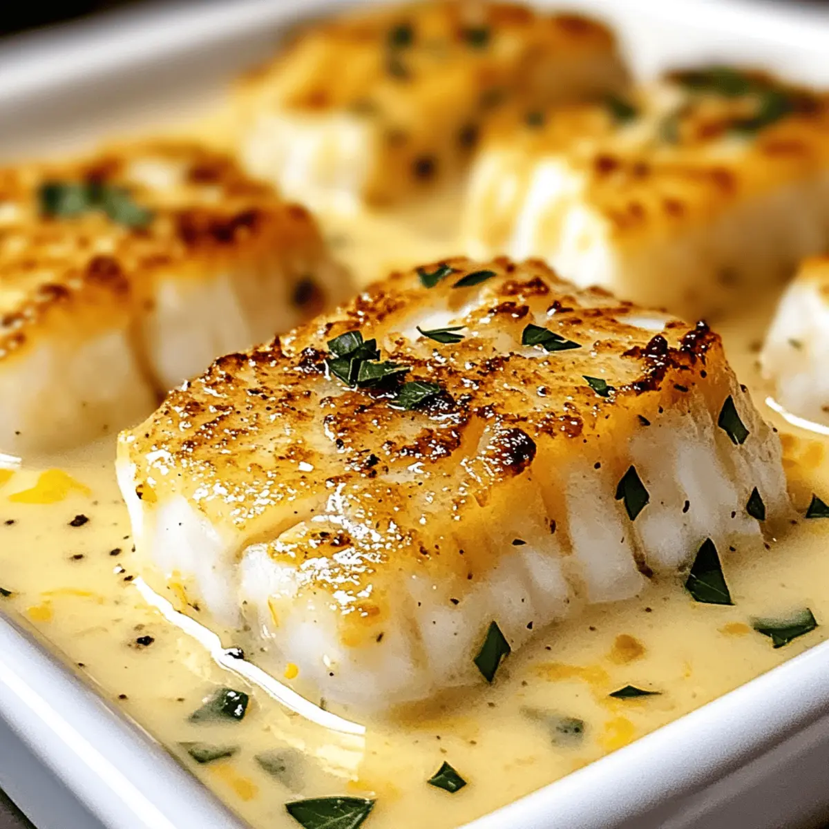 The enticing aroma of coconut wafting through your kitchen is sure to turn heads, but wait until your loved ones catch a glimpse of this Baked Cod in Coconut Lemon Cream Sauce! In just under 30 minutes, you can transform a regular weeknight dinner into an extraordinary feast that balances comfort and lightness seamlessly. This dish is a fantastic way to indulge in the richness of seafood while keeping it health-conscious and satisfying. The bright zing of lemon paired with the creamy texture elevates the cod to new heights, making it a quick crowd-pleaser. Are you ready to create a delightful harmony of tropical flavors that will have everyone asking for seconds? Why is Lemon Cream Sauce a Game Changer? Flavorful Boost: This creamy lemon sauce elevates even the simplest dishes, bringing a delightful zing that dances on your palate. Quick Preparation: In just a few minutes, you can whip up a sauce that transforms your weeknight meals into gourmet experiences. Versatile Use: Whether drizzled over seafood, pasta, or veggies, this sauce complements various recipes beautifully, just like with our Coconut Cream Pancakes or a fresh garden salad. Crowd-Pleasing Appeal: Its rich yet light taste makes it perfect for family dinners or entertaining guests without the fuss. Comfort Meets Health: Indulge guilt-free in this satisfying dish that pairs creamy textures with wholesome ingredients, keeping you satisfied and nourished! Lemon Cream Sauce Ingredients • Perfect for enhancing any dish! For the Sauce Olive Oil – A rich base for sautéing; coconut oil can be swapped for added coconut flavor. Onion – Adds sweetness and depth; can be substituted with shallots or leeks for a different flavor. Ginger – Provides a warm spice note; fresh is best, but powdered works in a pinch. Garlic – Elevates flavor; fresh garlic is ideal, while garlic powder can be used as a substitute. Coconut Milk – Creates the creamy texture and rich flavor; light coconut milk can offer a healthier version. Lemon Juice – Brightens up the sauce with acidity; lime can serve as a suitable alternative. Lemon Zest – Enhances lemony flavor with aromatic oils, adding an extra layer of brightness. Salt and Pepper – Essential for seasoning; adjust to taste to enhance overall flavors. This Lemon Cream Sauce is the ultimate flavor boost for any dish, bringing harmony to your delightful baked cod! Step‑by‑Step Instructions for Baked Cod in Coconut Lemon Cream Sauce Step 1: Preheat Oven Start by preheating your oven to 180°C (350°F). This temperature is perfect for baking the cod and ensuring it cooks evenly. As the oven heats, gather your baking dish and prepare to make the creamy sauce that will elevate your baked cod. Step 2: Season the Cod While the oven warms up, generously season your cod fillets with salt and pepper on both sides. Use fresh fillets that are thick and glossy for the best results. Ensure each piece is coated evenly, which will enhance the flavor and richness of the baked cod when it’s paired with the lemon cream sauce. Step 3: Prepare the Sauce In a skillet, heat a tablespoon of olive oil over medium heat. Once hot, add finely chopped onion and sauté until it becomes translucent, about 3-4 minutes. The aroma of the onions will fill your kitchen as they soften, setting the stage for the delicious coconut lemon cream sauce to come. Step 4: Add Ginger and Garlic Next, stir in freshly grated ginger and minced garlic. Cook this mixture for an additional minute, allowing the flavors to unite and become fragrant. The warmth of the ginger and the savory notes of the garlic will create a flavorful foundation for your coconut milk and lemon addition. Step 5: Incorporate Coconut Milk Pour in the coconut milk and stir well, letting it simmer gently for 2-3 minutes. The sauce should begin to thicken slightly, enveloping itself in the delightful harmony of the ingredients. Finally, add the lemon juice and zest, stirring to combine and brighten the sauce, which perfectly complements the baked cod. Step 6: Assemble and Bake In a baking dish, arrange your seasoned cod fillets nicely and pour the prepared coconut lemon cream sauce generously over the top. Ensure each fillet is well-coated, as this will create a beautiful presentation. Place the dish in the preheated oven and bake for 20-25 minutes, or until the cod flakes easily with a fork. Step 7: Serve Warm Once baked, remove the cod from the oven and let it rest for a few minutes. Serve the cod warm, allowing the luscious coconut lemon cream sauce to flow over the fish. Pair it with jasmine rice or fresh vegetables to soak up the exquisite sauce, making this baked cod dish truly comforting and satisfying. How to Store and Freeze Baked Cod in Coconut Lemon Cream Sauce Fridge: Store leftover baked cod in an airtight container for up to 2 days to maintain its freshness. Freezer: For longer storage, freeze cod portions in a freezer-safe container for up to 3 months. To preserve the creamy texture, wrap each piece tightly in plastic wrap before placing it in the container. Reheating: Reheat gently in the oven at 150°C (300°F) until warmed through, about 10-15 minutes. Add a splash of coconut milk if the sauce thickens too much during storage. Quality Tip: Always check for the freshness of the cod before eating leftover dishes, ensuring it’s still flavorful even after being stored away. Expert Tips for Baked Cod Choose Fresh Cod: Always opt for thick, glossy cod fillets to ensure a tender and flaky texture. Frozen cod works well but should be properly thawed. Don’t Rush the Sauce: Allow the coconut milk to simmer slightly for a thicker, creamier sauce. This step enhances the overall flavor, especially in your lemon cream sauce. Watch the Cooking Time: To avoid overcooking, check the cod at the 20-minute mark. It should flake easily and be opaque; aim for an internal temperature of 145°F (63°C). Customize Your Seasoning: Feel free to adjust salt and pepper a
