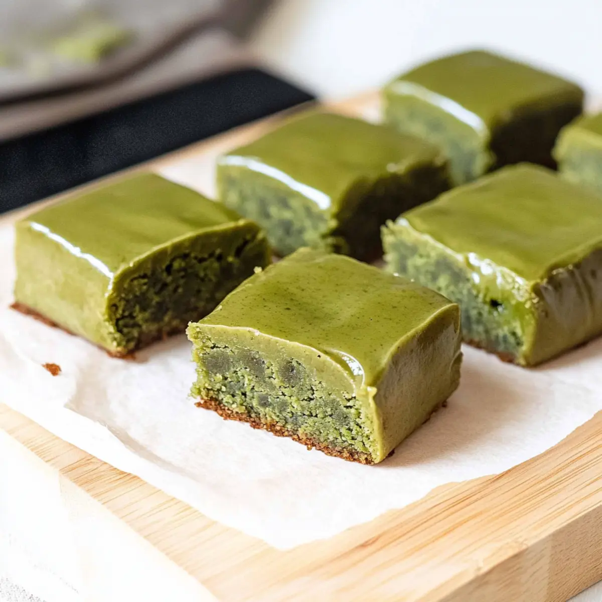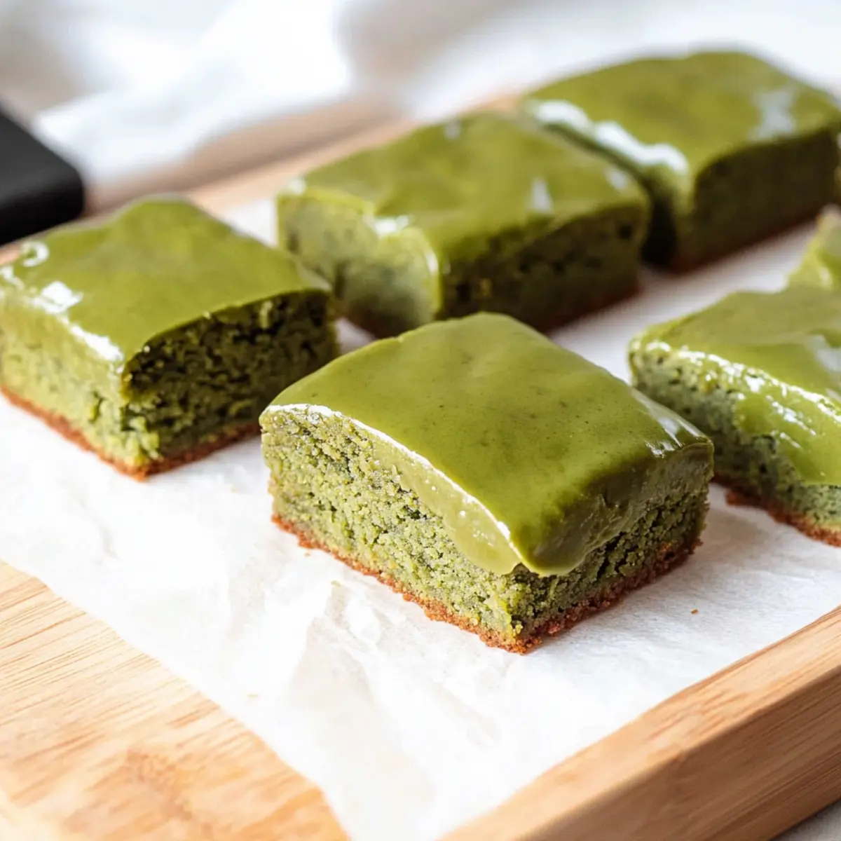 As I sifted the vibrant green matcha powder into my mixing bowl, a wave of excitement washed over me. There’s something magical about creating desserts that blend tradition with a modern twist, and these Chewy Matcha Mochi Brownies with Sweet Matcha Ganache perfectly embody that spirit. With their delightful balance of cakey and chewy textures, each bite unveils the earthy goodness of matcha, making them more than just a treat—they’re an experience for your taste buds. One of the best parts? They’re gluten-free and topped with a luscious ganache that elevates every chocolatey morsel, making this dessert a crowd-pleaser at any gathering. Whether you’re a seasoned chef or a home-cooking enthusiast, this recipe might just become your new go-to for satisfying cravings. Ready to dive into this sweet adventure? Let’s get baking! Why Are Matcha Mochi Brownies Special? Unique Flavor Fusion: The marriage of traditional mochi and rich matcha creates a dessert experience unlike any other. Gluten-Free Delight: Made with mochiko, these brownies are entirely gluten-free, perfect for those with dietary restrictions. Easy to Make: With a straightforward process, even novice bakers can whip up these treats in no time! Crowd-Pleasing Appeal: They’re a wonderful way to impress guests at gatherings, as everyone will love the chewy texture and vibrant taste. Make It Your Own: Feel free to experiment with mix-ins like chocolate chips or nuts for an extra layer of flavor, much like my Caramel Swirl Brownies! Matcha Mochi Brownie Ingredients For the Brownie Base Butter – Adds richness and moisture; substitute with margarine or coconut oil for a dairy-free version. Granulated Sugar – Provides sweetness and contributes to the chewy texture; coconut sugar can be used for a less refined option. Eggs – Acts as a binder and adds moisture; for a vegan version, use 1/2 cup unsweetened applesauce for each egg. Culinary Matcha Powder – Imparts a vibrant color and unique flavor; opt for culinary-grade matcha as ceremonial matcha is too costly for baking. Vanilla Paste or Extract – Enhances flavor complexity; replace with almond extract for a different twist. Milk – Adds moisture to the batter; non-dairy milk options such as almond or coconut are great alternatives. Mochiko – Provides the distinctive chewy texture of mochi; essential to use mochiko instead of regular rice flour. Fine Sea Salt – Balances sweetness and enhances flavor accentuation. For the Sweet Matcha Ganache White Chocolate Chips – Adds creaminess; use dairy-free chocolate chips for a vegan option. Heavy Cream – Combines with chocolate for ganache richness; coconut cream is a suitable dairy-free substitute. Additional Culinary Matcha Powder – Enhances the matcha flavor in the ganache, bringing a lovely touch to the topping. Dive into the delightful world of Matcha Mochi Brownies and let their irresistible chewy texture and vibrant flavor captivate your taste buds! Step‑by‑Step Instructions for Matcha Mochi Brownies w/ Matcha Ganache Step 1: Preheat and Prepare the Pan Begin by preheating your oven to 350°F (177°C). While it heats up, line a 9×9-inch baking pan with parchment paper, ensuring the paper hangs over the sides for easy removal later. This preparation is key for perfect Matcha Mochi Brownies that will slide out smoothly once baked. Step 2: Mix Wet Ingredients In a large mixing bowl, whisk together the melted butter, granulated sugar, and eggs until the mixture is smooth and creamy. Add in the culinary matcha powder and vanilla paste or extract, stirring until everything is well combined. This creates a flavorful base for your delicious brownies, enhancing the matcha flavor beautifully. Step 3: Incorporate Milk and Dry Ingredients Gradually pour in half of the milk and mix until fully blended. Then, add the remaining milk along with the mochiko and fine sea salt. Stir this mixture with a spatula until it reaches a uniform consistency. You want to achieve a thick batter that captures the essence of these distinct Matcha Mochi Brownies. Step 4: Bake the Brownies Pour the batter into your prepared baking pan, using an offset spatula to spread it evenly. Place the pan in the preheated oven and bake for 40-50 minutes. To test for doneness, insert a toothpick into the center; it should come out with a few moist crumbs, indicating the brownies are perfectly baked and ready for cooling. Step 5: Cool Before Ganache Remove the baked brownies from the oven and set them aside to cool in the pan for approximately 30 minutes. This cooling step is essential, as it allows the brownies to firm up before adding the sweet matcha ganache—resulting in the ideal chewy texture. Step 6: Make the Matcha Ganache In a microwave-safe bowl, combine the white chocolate chips and heavy cream. Microwave in 30-second intervals, stirring until fully melted and smooth. Once melted, sift in the additional culinary matcha powder and gently mix until well combined. This ganache will provide a creamy, decadent finish to your matcha mochi brownies. Step 7: Pour and Chill the Ganache Carefully pour the matcha ganache over the cooled brownies, using a spatula to spread it evenly across the top. Once it’s beautifully coated, transfer the brownies to the refrigerator and chill for about 45 minutes, allowing the ganache to set to perfection. Step 8: Cut and Serve After the ganache has set, remove the brownies from the refrigerator and lift them out of the pan using the parchment paper. Cut into 9 squares using a sharp knife, and your Matcha Mochi Brownies w/ Matcha Ganache are ready to be served. Enjoy each chewy, flavorful bite! Matcha Mochi Brownies Variations Feel free to explore these delightful twists on your matcha mochi brownies, making the recipe truly your own! Mix-Ins: Add chocolate chips or nuts for an exciting crunch that contrasts with the chewy texture. A handful of walnuts offers a rustic flavor, while dark chocolate chips intensi