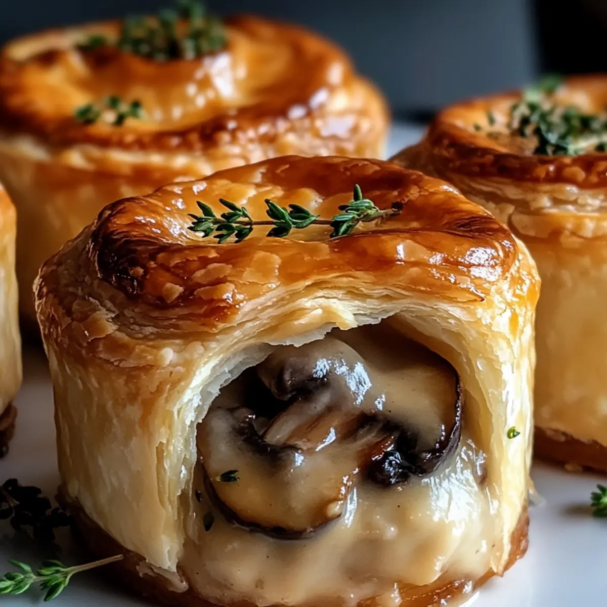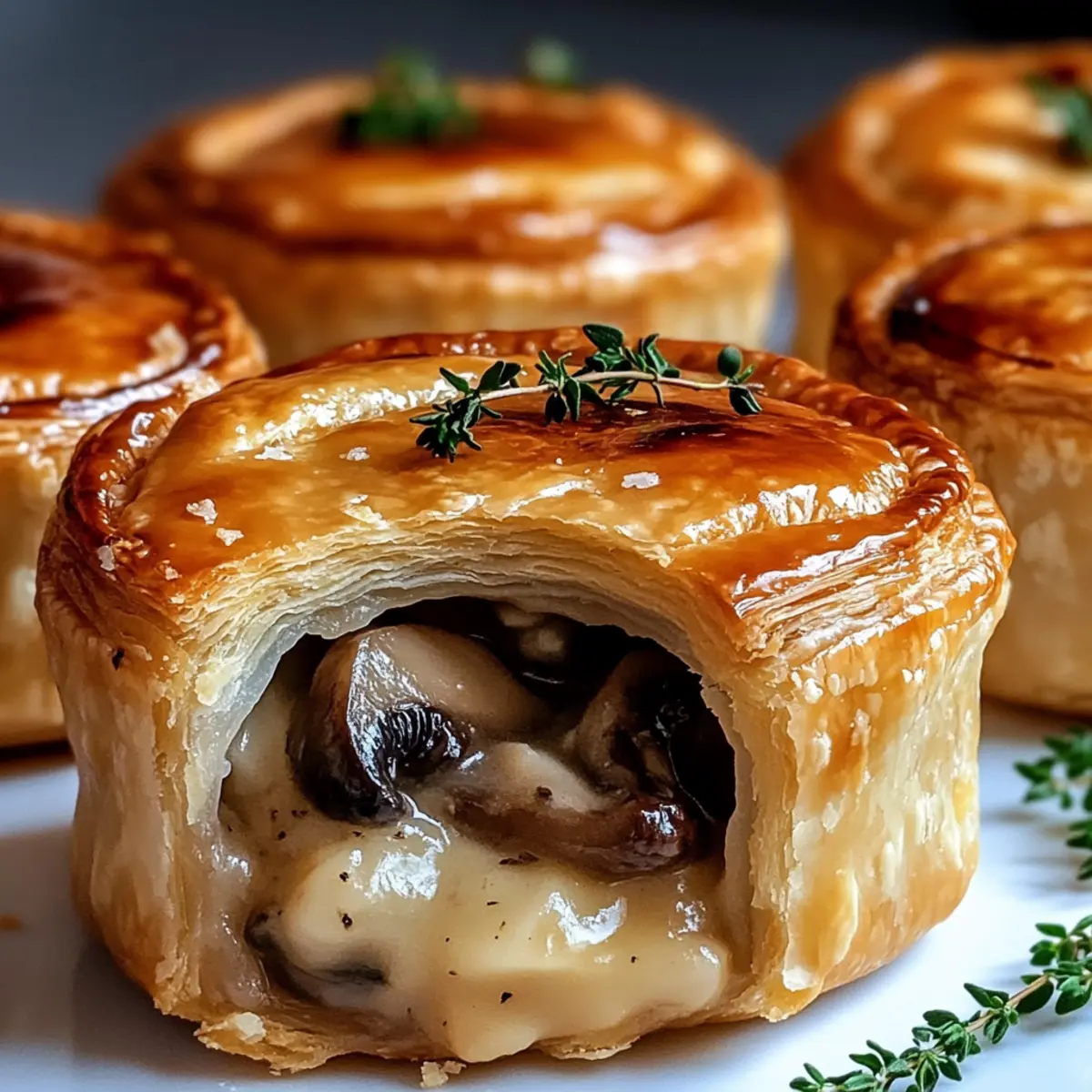As I pulled the warm, golden-brown Mini Mushroom & Gruyère Pot Pies from the oven, the heady aroma of thyme and sautéed mushrooms filled my kitchen, wrapping me in a cozy embrace. These delightful, bite-sized pastries are a fun twist on comfort food, perfect for impressing guests or whipping up on a busy weeknight. With their creamy mushroom filling and flaky crust, they’re not just quick and easy to make—they also offer a vegetarian crowd-pleaser that even meat-lovers can’t resist. Imagine serving these mini delights at your next gathering; they might just steal the spotlight! Ready to dive into the full experience? Let’s get cooking and create a cozy meal together! Why are Mini Mushroom & Gruyère Pot Pies a Must? Comfort Food Reimagined: These Mini Mushroom & Gruyère Pot Pies elevate traditional comfort food with a chic twist, making them perfect for both everyday dinners and fancy gatherings. Simple to Make: With a straightforward preparation process, they’re ideal for busy weeknights. You can whip these up in no time, making them an instant favorite! Rich & Creamy Filling: Infused with aromatics and creamy Gruyère, each bite is a delightful explosion of flavor that tantalizes the taste buds. Endless Customization: Feel free to experiment with various mushrooms or even switch up the cheese, making these pot pies versatile for any palate. Impressive Presentation: These charming mini pot pies not only taste great but also look stunning on any table, guaranteed to impress your guests! Serve them alongside a light salad, just like with my Mini Baked Chicken Tacos for a complete meal. Mini Mushroom & Gruyère Pot Pie Ingredients For the Filling • Unsalted Butter – Adds richness and flavor; can substitute with olive oil for a lighter option. • Olive Oil – Enhances flavor and aids in sautéing ingredients; use vegetable oil if desired. • Onion – Provides sweetness and depth; yellow or white onions are ideal, avoid red for sweetness. • Garlic – Adds aromatic flavor; fresh minced garlic is preferred, but dried garlic can work in a pinch. • Mushrooms (cremini, shiitake, button) – Provide the main flavor and texture; mix different types for depth, considering portobello or oyster for alternatives. • All-Purpose Flour – Thickens the filling; for gluten-free, utilize a 1:1 gluten-free flour blend. • Vegetable/Chicken Broth – Serves as the base for the filling; use vegetable broth for a vegetarian dish. • Heavy Cream – Adds creaminess; substitute with half-and-half or coconut cream for a dairy-free option. • Fresh Thyme – Brightens flavor with aromatic quality; substitute with dried thyme, but use less. • Dijon Mustard (optional) – Adds tanginess for flavor complexity; omit for a milder filling. • Salt & Pepper – Essential for seasoning to taste; adjust based on personal preference. • Gruyère Cheese – Provides flavor and creaminess; substitute with cheddar, fontina, or goat cheese if unavailable. For the Pastry • Puff Pastry – The outer layer providing flakiness; use ready-made pastry or homemade for a fresher touch. These Mini Mushroom & Gruyère Pot Pies are a delightful twist on comfort food, perfect for anyone craving a cozy, vegetarian dish. Let’s get cooking! Step‑by‑Step Instructions for Mini Mushroom & Gruyère Pot Pies Step 1: Prepare the Filling In a large skillet over medium heat, melt 2 tablespoons of unsalted butter with 1 tablespoon of olive oil. Add 1 finely chopped onion and 2 minced garlic cloves, sautéing until the onions are translucent, about 3-4 minutes. Stir in 8 ounces of sliced mushrooms, cooking until they are golden and their moisture has evaporated, approximately 6-8 minutes. Step 2: Thicken the Mixture Sprinkle 2 tablespoons of all-purpose flour over the sautéed mushrooms, stirring for about a minute to cook off the raw flour taste. Gradually whisk in 1 cup of vegetable broth and 1/2 cup of heavy cream, allowing the mixture to simmer. Cook until thickened, around 3-5 minutes, before adding 1 tablespoon of fresh thyme, Dijon mustard (if using), and seasoning with salt and pepper. Finally, fold in 1 cup of grated Gruyère cheese until it melts beautifully into the filling. Step 3: Assemble the Pot Pies Preheat your oven to 400°F (200°C) and grease a muffin tin with cooking spray. Roll out 1 sheet of puff pastry on a floured surface and cut out circles that are slightly larger than the muffin cups. Place each pastry circle into the muffin tin, ensuring they fit securely, then fill each cup generously with the creamy mushroom mixture. Step 4: Seal and Prepare for Baking Cover the filled cups with smaller pastry circles, pressing the edges together to seal the pot pies tightly. Brush the top of each pastry with an egg wash made from 1 beaten egg to achieve a golden finish. Optionally, sprinkle with herbs or additional cheese for extra flair before placing the muffin tin in the preheated oven. Step 5: Bake to Perfection Bake the Mini Mushroom & Gruyère Pot Pies in the oven for 20-25 minutes, or until the pastry is puffed and golden brown. Keep an eye on them towards the end to prevent over-browning. Once baked, remove them from the oven and let them cool slightly before enjoying the warm comfort of these lovely pot pies. What to Serve with Mini Mushroom & Gruyère Pot Pies? Treat your loved ones to a full and delightful meal experience that perfectly complements the rich flavors of these irresistible pot pies. Mixed Green Salad: A fresh salad with a light vinaigrette balances the richness, keeping the meal light and refreshing. Toss in nuts or cranberries for added texture. Creamy Mashed Potatoes: These fluffy potatoes offer a comforting, velvety side that pairs beautifully with the savory mushroom filling, creating a heartwarming dish. Roasted Asparagus: This simple side presents a crisp contrast to the soft pot pies. Drizzle with lemon juice for a burst of brightness that complements the mushrooms