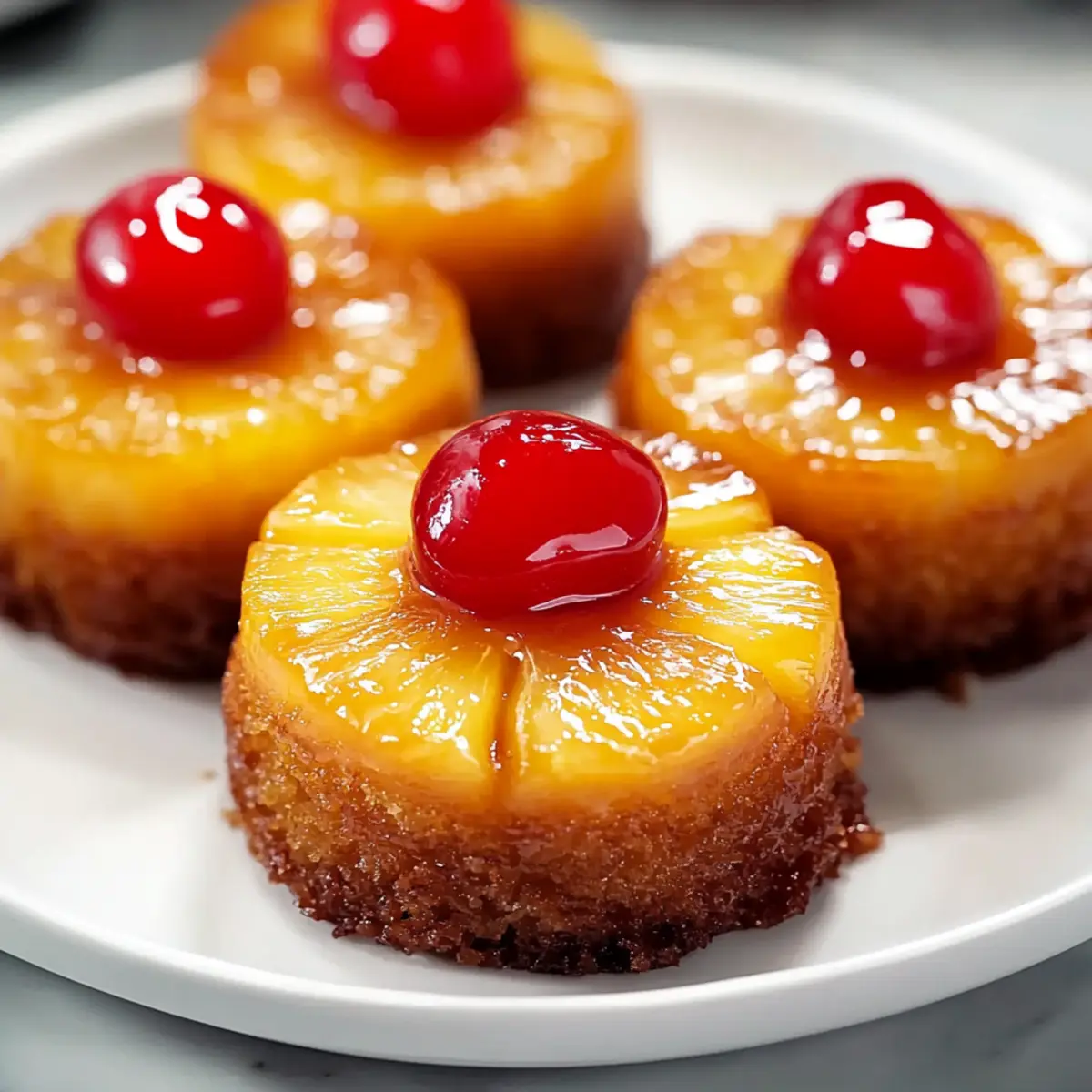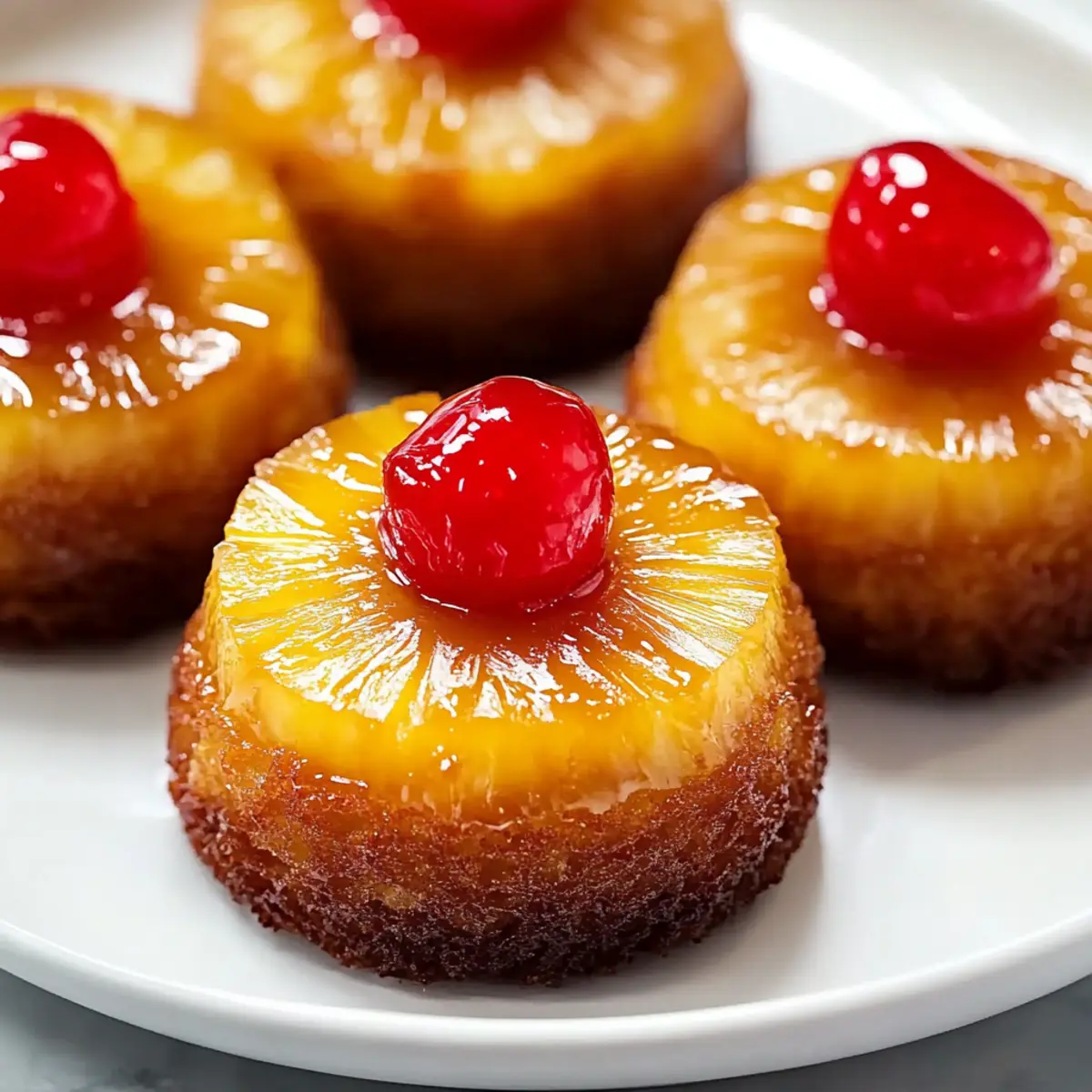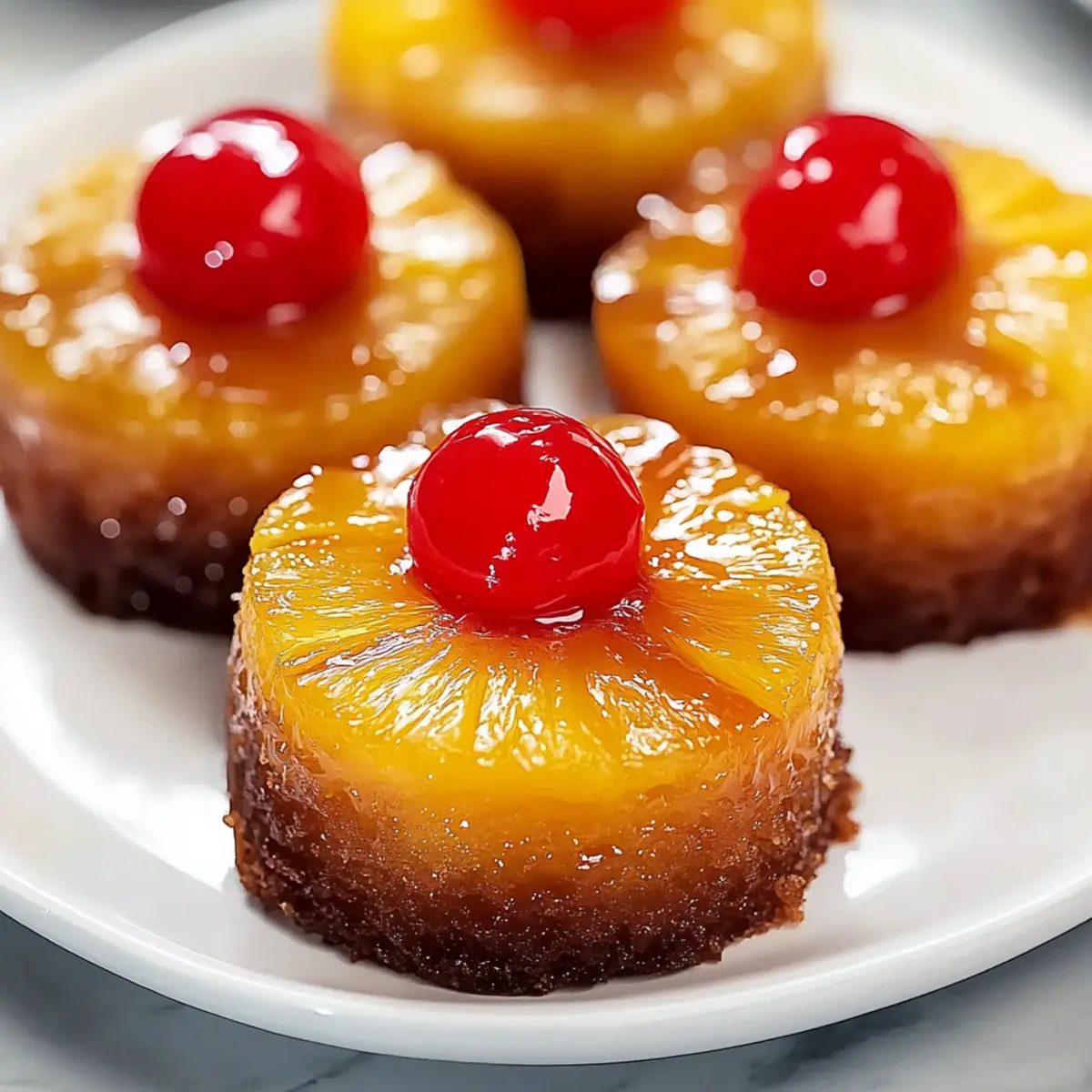The aroma of warm cake and sweet, caramelized pineapple took me back to Grandma’s kitchen, where the simple joys of baking were a cherished ritual. Let’s talk about Classic Mini Pineapple Upside Down Cakes – a delightful twist on a classic dessert that not only brings a smile to your face but also indulges your cravings for comforting, homemade goodness. These mini marvels are incredibly easy to make and perfect for portion control, allowing everyone to enjoy their own individual slice of paradise. Plus, with a quick preparation time, you’ll be serving these charming cakes in no time! What’s your favorite memory tied to a sweet treat like this? Why Are Mini Cakes So Appealing? Individual servings: Everyone loves a dessert that’s just for them! These mini pineapple upside down cakes are perfectly portioned for an easy grab-and-go treat. Nostalgic flavors: The sweet, caramelized pineapple paired with a soft, buttery cake takes you back to joyful memories of family gatherings and special occasions. Quick preparation: With minimal prep and baking time, you can whip up these delightful treats in a flash—ideal for surprise guests or a sweet craving! Versatile options: Feel free to swap out ingredients based on what you have at home. Experiment with fresh fruits or even try a vegan version using coconut cream. Delightfully impressive: Serve them at your next get-together for a crowd-pleasing dessert that looks as good as it tastes! For a delightful breakfast twist, consider these Pecan Pancakes Cozy or pair it with some tasty Greek Yogurt Pancakes for a brunch spread. Mini Pineapple Upside Down Cake Ingredients • Delight in the layers of flavor you’ll create with these delightful ingredients. For the Base Canned Pineapple Rings – Main fruit component; offers sweetness and moisture. Substitute with fresh pineapple rings, ensuring to pat dry to avoid sogginess. Maraschino Cherries – Fun decoration and additional sweetness; optional for a simpler profile. Butter (1/4 cup) – Adds richness and moisture to the cake; margarine can work in a pinch. For the Sweetness Light Brown Sugar (2/3 cup) – Provides a delicious caramel flavor; can be substituted with granulated sugar for less sweetness. Granulated Sugar (2/3 cup) – Sweetness and structure; can be reduced for a less sweet cake. For the Batter Eggs (2 large) – Bind ingredients and moisture; use flax eggs for a vegan alternative. Pineapple Juice (4 tbsp) – Enhances flavor and moisture; consider substituting with orange juice for a different twist. All-Purpose Flour (2/3 cup) – Main structure of the cake; whole wheat flour can be a healthier choice. Baking Powder (1 tsp) – Leavening agent for a fluffy rise; gluten-free baking powder is an option for gluten-sensitive diets. Salt (1/4 tsp) – Enhances all flavors; reduce for low-sodium diets. Experience the joy and nostalgia of Mini Pineapple Upside Down Cakes with these perfect ingredients! Step‑by‑Step Instructions for Mini Pineapple Upside Down Cakes Step 1: Preheat and Prepare Begin by preheating your oven to 350°F (175°C) and greasing a muffin tin with non-stick spray to ensure easy release of your mini pineapple upside down cakes. Make sure you cover each cup thoroughly, as this will help maintain that delightful caramelized layer on the bottom. Step 2: Beat the Wet Ingredients In a large mixing bowl, crack two large eggs and whisk them together with granulated sugar and pineapple juice until the mixture becomes frothy—about 2 minutes of vigorous mixing will do the trick. This step is essential to incorporate air into the batter, giving your cakes a light and fluffy texture. Step 3: Combine the Dry Ingredients Sift together the all-purpose flour, baking powder, and salt in a separate bowl. Gradually add this dry mixture to the wet ingredients, stirring until just combined and smooth over a period of 2 minutes. Be cautious not to overmix; a few lumps are perfectly fine and will result in tender cakes. Step 4: Make the Caramel Base In a small saucepan, melt 1/4 cup of butter over low heat. Once melted, stir in 2/3 cup of light brown sugar, mixing until you achieve a smooth, gooey caramel consistency—this should take about 1 minute. This luscious blend will form the base for your delicious mini pineapple upside down cakes. Step 5: Assemble the Base Layer Spoon equal amounts of the brown sugar mixture into each prepared muffin cup, allowing it to settle at the bottom. Next, place a pineapple ring and a maraschino cherry in the center of each ring, creating a beautiful and colorful presentation that will shine through when baked. Step 6: Fill with Batter Carefully fill each muffin cup with the prepared cake batter until they are about 3/4 full, ensuring an even distribution for consistent baking. This step is vital because overfilling can lead to spillover, while underfilling means you won’t have those perfect mini pineapple upside down cakes. Step 7: Bake to Perfection Place the muffin tin in the preheated oven and bake for 20-25 minutes. To check for doneness, insert a toothpick into the center of one of the cakes; if it comes out clean or with just a few crumbs, your mini cakes are ready to come out of the oven. Step 8: Cool and Invert Allow the mini pineapple upside down cakes to cool in the pan for 3 minutes before inverting them onto a wire rack. Gently press the tops to ensure they release fully and achieve a beautiful presentation. Let them cool completely to allow the caramel to set before enjoying your delightful treats! Expert Tips for Mini Pineapple Upside Down Cakes Prep Your Pineapple: Ensure pineapple rings are thoroughly drained and patted dry to prevent soggy mini cakes that lose their shape. Caramelization Matters: Allow the brown sugar and butter mixture to bubble before adding the fruit; this ensures a perfect caramel layer that enhances the flavor of the mini pineapple upside down cakes. Watch Your Fill Level: Avoid overfilling muffi