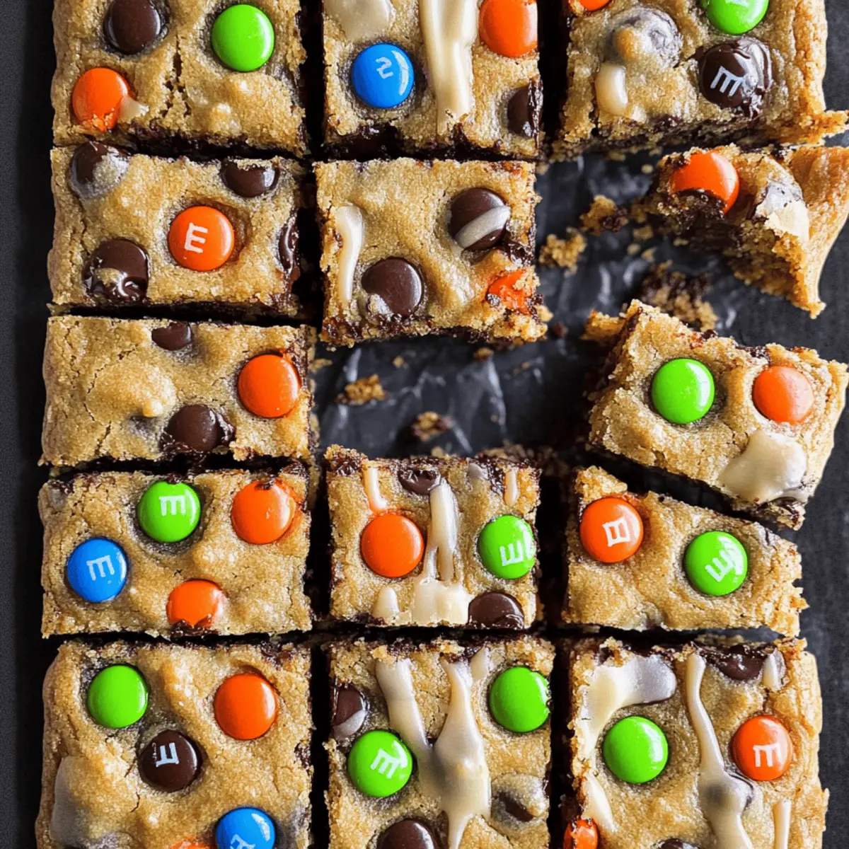 The air is crisp, and the scent of cinnamon spices wafts through the kitchen, signaling that Halloween is just around the corner. To celebrate this festive season, I couldn’t wait to whip up these delightful M&M’s Halloween Cookie Bars. Bursting with colorful M&M’s and mini chocolate chips, they are not only a feast for the eyes but incredibly easy to make—no rolling or scooping needed! These vibrant treats are perfect for parties or school gatherings, making them the ultimate crowd-pleaser. Plus, their chewy texture combined with slightly crispy tops is sure to delight everyone, young and old alike. Want to create something truly special for your holiday gatherings? Let’s dive into this fabulous recipe together! Why are M&M’s Halloween Cookie Bars special? Irresistible Colors: These cookie bars burst with vibrant Halloween hues, making them visually appealing for any party or gathering. Effortless Preparation: Say goodbye to the hassle of rolling or scooping dough; just mix, spread, and bake! Versatile Snacks: Easily swap M&M’s for seasonal candies or nuts to tailor these bars to your liking. Chewy Goodness: Enjoy the perfect blend of a chewy interior and a slightly crispy top, reminiscent of a beloved cookie-brownie hybrid. Crowd Favorite: These bars are a surefire hit with kids and adults alike, ideal for school parties or festive celebrations, making them a must-try this Halloween! M&M’s Halloween Cookie Bars Ingredients For the Batter Unsalted Butter (2 sticks) – Provides richness and moisture; use margarine if dairy-free. Granulated Sugar (1 cup) – Sweetens the bars without being overly sweet; coconut sugar is a healthier alternative. Brown Sugar (1 cup, packed) – Adds moisture and a subtle caramel flavor; dark brown sugar gives a richer taste. Large Eggs (3) – Binds ingredients effectively; substitute with flax eggs for a vegan version. Pure Vanilla Extract (1 ½ teaspoons) – Enhances overall flavor; a fresh vanilla bean gives an intense aroma. All-Purpose Flour (3 cups) – Provides necessary structure; a 1:1 gluten-free blend works for gluten-free diets. Baking Soda (¾ teaspoon) – Crucial for helping the bars rise; always ensure it’s fresh for best results. Salt (¾ teaspoon) – Balances sweetness; reduce if using salted butter. For the Mix-ins Halloween M&M’s (1 ½ cups, plus more for topping) – Adds fun colors and texture; feel free to substitute with seasonal candies for variety. Mini Chocolate Chips (1 cup, plus more for topping) – Contributes richness; dark chocolate chips offer a deeper flavor. Step‑by‑Step Instructions for M&M’S Halloween Cookie Bars Step 1: Preheat and Prepare the Pan Begin by preheating your oven to 350°F (175°C). While it heats up, grab a 9×13 inch baking pan and line it with foil, allowing some overhang for easy removal later. Lightly spray the foil with nonstick cooking spray to ensure your M&M’s Halloween Cookie Bars come out effortlessly. Step 2: Cream the Butters and Sugars In a stand mixer, combine the unsalted butter, granulated sugar, and packed brown sugar. Beat on medium speed until the mixture becomes fluffy and light in color, about 2–3 minutes. This crucial step helps create the perfect texture for your cookie bars, setting the stage for a delightful treat that everyone will adore. Step 3: Mix in Eggs and Vanilla Add the large eggs, one at a time, mixing on low until fully incorporated after each addition. Pour in the pure vanilla extract, continuing to beat until the mixture is smooth and creamy. At this point, the batter should have a rich aroma, making it hard to resist tasting! Step 4: Combine Dry Ingredients Slow the mixer to low speed and gently add the all-purpose flour, baking soda, and salt to the wet ingredients. Mix just until combined; be careful not to overmix. You want your M&M’s Halloween Cookie Bars to remain chewy, so stop as soon as no flour pockets remain visible, ensuring your batter stays light and airy. Step 5: Fold in the Fun Mix-ins Using a spatula, carefully fold in the vibrant Halloween M&M’s and mini chocolate chips, reserving a handful of each for topping. This step adds brilliant color and texture to your bars, making them as visually enticing as they are delicious. Step 6: Spread the Dough in the Pan Transfer the thick, rich dough to your prepared pan. Use your hands or a spatula to evenly press the dough into the corners, ensuring a uniform thickness throughout. This will help your M&M’s Halloween Cookie Bars bake evenly and achieve that perfect chewy texture everyone loves. Step 7: Top and Bake Sprinkle the reserved M&M’s and mini chocolate chips over the top of the dough, adding an extra layer of color. Place the pan in the preheated oven and bake for 30-35 minutes. Keep an eye out for a golden brown top and a toothpick inserted into the center should come out clean, indicating your bars are ready. Step 8: Cool and Cut Once baked, remove the pan from the oven and let it cool completely in the pan on a wire rack—this can take about 1–2 hours. Once cool, use the foil overhang to lift the bars out. Cut into squares, and you’ll have perfect M&M’s Halloween Cookie Bars ready for your spooky festivities! How to Store and Freeze M&M’s Halloween Cookie Bars Room Temperature: Store your M&M’s Halloween Cookie Bars in an airtight container at room temperature for up to 5 days to maintain their chewy goodness. Fridge: For longer freshness, place them in the refrigerator, where they will stay delicious for up to 1 week. Just be sure to seal them well to prevent drying out. Freezer: These treats freeze beautifully! Wrap individual bars in plastic wrap and place them in an airtight container or freezer bag. They can be frozen for up to 3 months. Reheating: When ready to enjoy, simply let them thaw at room temperature. You can warm them in the microwave for about 10 seconds for that fresh-out-of-the-oven experience! Make Ahead Options These M&M’s Hal
