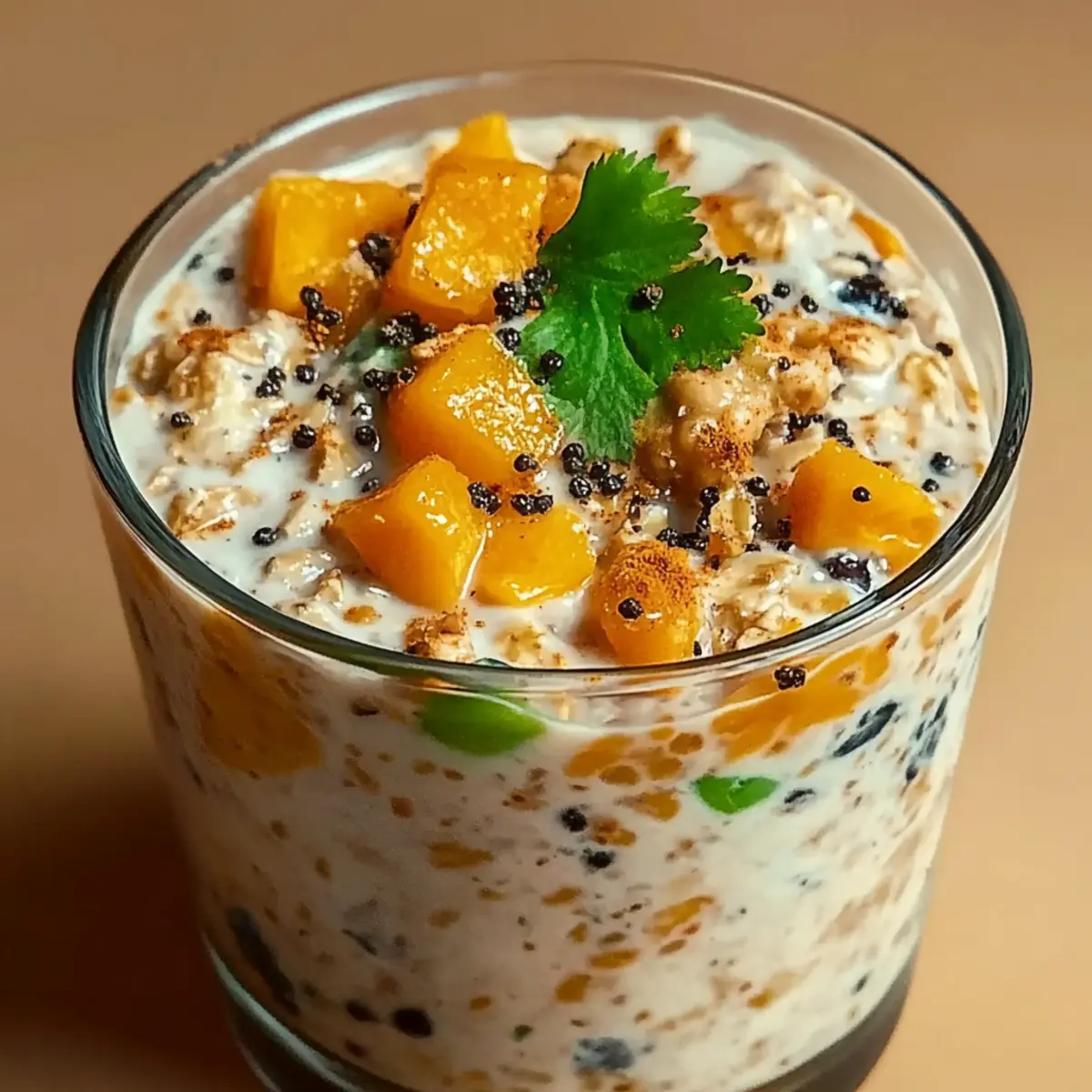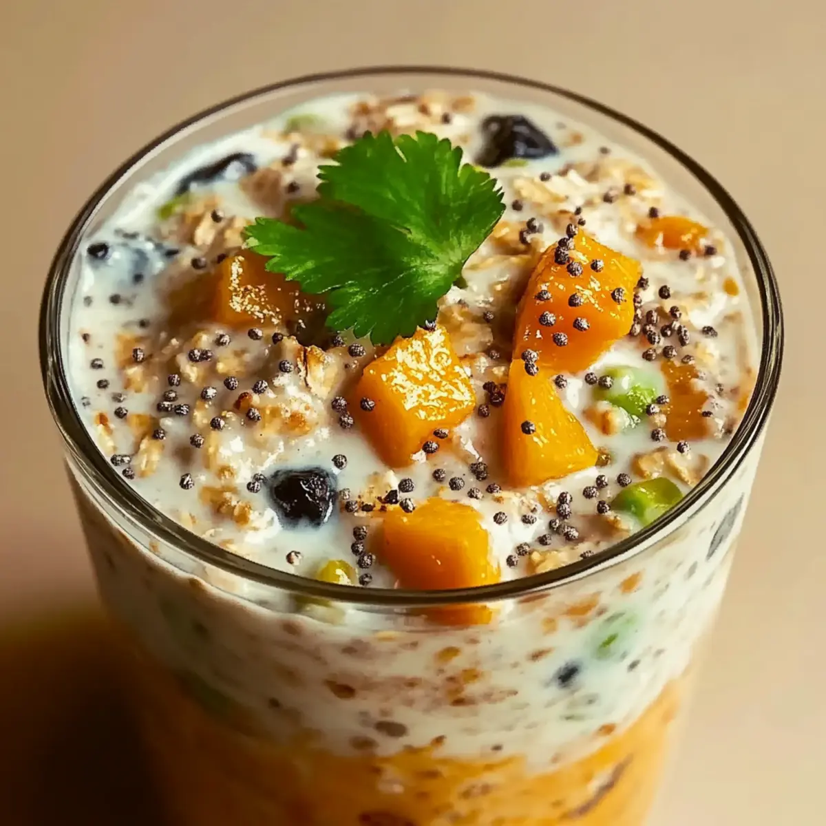 As the sun rises, filling the kitchen with warmth, I find myself reflecting on those busy mornings when a nutritious breakfast feels like a distant dream. Enter Nourishing Indian Overnight Oats—my secret weapon for turning hectic daybreaks into serene rituals. This delightful no-cook recipe is not only a breeze to prepare, but it also bursts with vibrant flavors and textures. With creamy oats mingling with aromatic spices, crunchy nuts, and the natural sweetness of sun-dried mango, each bowl offers a wholesome start to your day. Plus, they can be made ahead, so you can grab and go without sacrificing your health. Curious about how to whip up this simple yet satisfying breakfast? Let’s dive into the recipe! Why Make Nourishing Indian Overnight Oats? Simplicity at its finest: With a no-cook approach, this recipe saves you time, perfect for those bustling mornings! Vibrant flavors come together beautifully: Creamy oats infused with warming spices create a delightful symphony for your taste buds. Nutrient-rich ingredients: Packed with fiber, healthy fats, and protein, these oats fuel your day the right way. Versatile and customizable: Feel free to swap nuts or dried fruits, or even explore variations like adding saffron. For more exciting breakfast ideas, check out my delicious Indian Butter Chicken for a savory twist! Crowd-pleaser appeal: Enjoy these oats alone or share them with the family; they’ll love this wholesome treat, making breakfast a cherished moment! Nourishing Indian Overnight Oats Ingredients For the Oats Mixture • Rolled Oats – The base of our nourishing Indian overnight oats, offering a creamy texture and fiber. • Milk – Moistens and enhances creaminess; any unsweetened dairy or plant-based milk works wonderfully. • Yogurt – Adds a tangy depth; feel free to substitute with dairy-free yogurt for a vegan option. • Chia Seeds – These little seeds thicken our mixture and provide healthy fats for extra nourishment. • Honey – A natural sweetener that harmonizes the spices; swap it with maple syrup for a vegan alternative. • Ground Cardamom and Cinnamon – Infuse aromatic warmth into each bite; nutmeg can be used if these spices are unavailable. • Turmeric – Adds a lovely earthy flavor and vibrant color; omit for a milder taste preference. • Ginger – Fresh ginger brightens the dish with a hint of spiciness; ground ginger serves as a suitable substitute. • Salt – A pinch elevates the overall flavor, so remember, a little goes a long way! For the Toppings • Nuts (e.g., almonds, walnuts) – Provide delightful crunch and healthy fats; feel free to use any preferred variety. • Dried Mango or Raisins – Adds sweetness and a chewy texture; any dried fruit can substitute in this nourishing dish. Now that we have gathered these key ingredients for our nourishing Indian overnight oats, let’s transform breakfast into a magical moment waiting to unfold! Step‑by‑Step Instructions for Nourishing Indian Overnight Oats Step 1: Combine Ingredients In a large jar or bowl, combine rolled oats, milk, yogurt, and chia seeds. Add a drizzle of honey, along with ground cardamom, cinnamon, turmeric, fresh ginger, and a pinch of salt. Stir the mixture vigorously for about 1-2 minutes until all ingredients are well combined and the oats are evenly coated. Step 2: Cover and Chill Once mixed, tightly cover the jar or bowl with a lid or plastic wrap. Place it in the refrigerator and let the Nourishing Indian Overnight Oats soak for a minimum of 6 hours or overnight. This allows the oats to absorb the liquid and flavors, resulting in a creamy texture. Step 3: Stir Before Serving After the soaking time, remove the oats from the fridge and give the mixture a good stir. If the consistency appears too thick, add a splash of milk to achieve your desired creaminess. This adjustment ensures a silky texture that’s perfect for enjoying right from the jar. Step 4: Add Toppings Before savoring your vibrantly flavored Nourishing Indian Overnight Oats, generously top with chopped nuts for added crunch and some dried mango or raisins for a hint of sweetness. This step elevates the dish, creating a delightful mix of textures and flavors that make breakfast truly special. How to Store and Freeze Nourishing Indian Overnight Oats Fridge: Store your nourishing Indian overnight oats in an airtight container in the refrigerator for up to 3 days. This ensures they remain fresh and flavorful, perfect for quick breakfast access. Freezer: If you want to prepare a large batch, freeze portions in airtight containers for up to 1 month. Just remember to thaw in the fridge overnight before enjoying! Reheating: When ready to eat frozen oats, gently reheat in the microwave or on the stovetop, adding a splash of milk for a creamier texture if needed. Toppings: For the best experience, add your favorite nuts and dried fruits just before serving to maintain their crunch and flavor. Expert Tips for Nourishing Indian Overnight Oats • Mix Thoroughly: Ensure all ingredients are well combined for a balanced flavor in your nourishing Indian overnight oats. • Soak Overnight: Allow the oats to soak overnight for optimal absorption of flavors and a creamy texture come morning. • Customize Protein: For an extra boost, feel free to add a scoop of protein powder or top with Greek yogurt. • Adjust Consistency Gently: If reheating, do so over low heat and add a splash of milk to keep the creamy texture intact. • Fresh Toppings Matter: Add fresh toppings just before serving to keep your oats vibrant and crunchy, enhancing the overall experience. Nourishing Indian Overnight Oats Variations Feeling inspired to make this recipe uniquely yours? Let’s explore some delicious twists and substitutes to elevate your overnight oats! Nut-Free: Swap out nuts for seeds like pumpkin or sunflower seeds to keep it crunchy without the nutty flavor. Vegan Delight: Use plant-based milk and yogurt, and substitute 