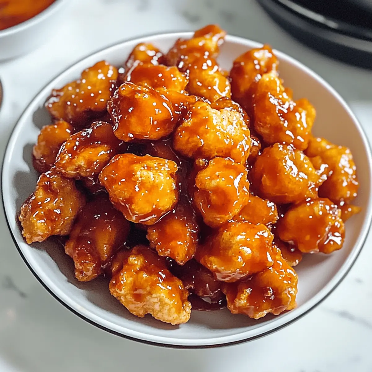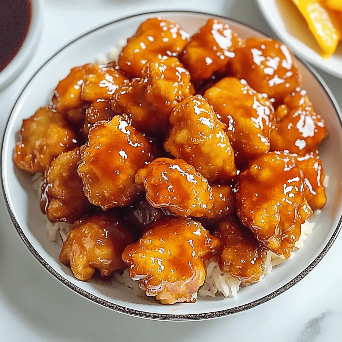 The tantalizing aroma of sizzling chicken fills the kitchen as I reminisce about my favorite takeout nights. Holding onto that nostalgic craving, I’ve crafted this Hot Orange Chicken recipe, a spicy copycat adventure that takes the well-loved Panda Express dish to a whole new level. With an extra punch from chili peppers and a uniquely complex sauce, this homemade version is not only healthier but also ready in a jiffy—perfect for those of us busy making memories instead of relying on fast food. Whether you’re a seasoned home chef or just starting out, you’ll find joy in creating something delicious that lights up your dinner table. Curious about how to whip up this culinary delight in just a few simple steps? Let’s dive in! Why is Homemade Orange Chicken Better? Healthier Choice: With this homemade version, you control the ingredients, making it a far superior alternative to fast food options. Bold Flavors: The spicy kick from chili peppers adds an irresistible depth that takes it beyond the typical sweet and sour. Quick to Prepare: Ready in under 30 minutes, this dish fits perfectly into your busy schedule without sacrificing taste! Crowd-Pleaser: Whether for a family dinner or a gathering with friends, this Orange Chicken is sure to impress everyone at the table. Versatile Options: Feel free to customize with your choice of protein or add some veggies to make it your own! For more delightful Asian-inspired meals, check out my Fiery Chicken Ramen or Orange Chicken Savory. Orange Chicken Ingredients • Get ready to create a flavor explosion with these simple ingredients! For the Chicken Boneless, Skinless Chicken Thighs or Breasts – Choose thighs for juiciness or breasts for a leaner option. Cornstarch – This creates a crispy breading; you can use all-purpose flour for a different texture. Egg – Essential for binding the coating to the chicken, ensuring a delightful crunch. For the Sauce Fresh Orange Juice – The sweet base of your sauce; fresh is best, but bottled works too. Soy Sauce – Provides that umami flavor; use tamari for a gluten-free alternative. Sugar – Balances acidity and sweetness; brown sugar gives a richer taste. Chili Peppers – Add that spicy kick; adjust based on your heat preference or use sriracha for convenience. Garlic and Ginger – Infuse your dish with aromatic depth; fresh is recommended, but powders can do in a pinch. With these ingredients, you’re on your way to whipping up a delicious homemade Orange Chicken that rivals any takeout! Step‑by‑Step Instructions for Hot Orange Chicken Step 1: Make the Orange Sauce In a mixing bowl, combine 1 cup of freshly squeezed orange juice, ¼ cup of soy sauce, ¼ cup of sugar, 2 minced garlic cloves, and 1 teaspoon of grated ginger. Stir in 1-2 chopped chili peppers to your desired spice level. Whisk until the sugar fully dissolves and the mixture is smooth, creating a vibrant sauce that will coat your Hot Orange Chicken beautifully. Step 2: Prep and Bread the Chicken Slice 1½ pounds of boneless, skinless chicken thighs or breasts into bite-sized pieces, ensuring uniformity for even cooking. In a shallow dish, beat 1 egg until frothy. Dredge each chicken piece first in the egg, then coat thoroughly in ½ cup of cornstarch, ensuring an even layer. This will create a wonderfully crispy texture when fried. Step 3: Fry the Chicken In a large skillet or pan, heat ½ inch of vegetable oil over medium-high heat until shimmering, about 350°F. Carefully add the breaded chicken pieces in batches, making sure not to overcrowd the pan. Fry for 5-7 minutes, turning occasionally, until golden brown and cooked through. Use a slotted spoon to transfer the chicken to a paper towel-lined plate to drain excess oil. Step 4: Stir-Fry in Wok In a hot wok or large skillet, add the fried chicken along with the prepared orange sauce. Toss the chicken in the sauce over medium-high heat for 2-3 minutes, allowing the sauce to bubble and thicken slightly. Ensure each piece of chicken is well-coated, glistening in that delightful homemade orange sauce. Step 5: Serve and Enjoy Once the sauce has thickened and clings beautifully to the chicken, remove the wok from heat. Serve your sumptuous Hot Orange Chicken over a bed of fluffy steamed rice or alongside a vibrant fried rice. Garnish with sesame seeds or sliced green onions for an extra touch of flavor and color, inviting everyone to enjoy this delicious home-cooked meal! Make Ahead Options These Hot Orange Chicken preparations are perfect for busy weeknights! You can make the orange sauce up to 3 days in advance; simply store it in an airtight container in the refrigerator to keep its vibrant flavor intact. For the chicken, bread the pieces and refrigerate them for up to 24 hours before frying. This allows the coating to adhere better, yielding an extra crispy finish. When you’re ready to cook, simply fry the chicken in hot oil and toss it in the prepared sauce for that restaurant-quality Hot Orange Chicken right at home. Enjoy hearty, homemade flavors with minimal last-minute effort! Expert Tips for Hot Orange Chicken Ingredient Freshness: Use fresh orange juice and aromatics for the best flavor. Freshness elevates the taste of your homemade Orange Chicken significantly. Avoid Sogginess: Ensure your chicken is completely drained after frying; excess oil can make your dish greasy. Use a paper towel to absorb any leftover oil. Customize Spice Level: Start with one chili pepper; you can always add more for heat later. It’s easier to adjust than to tone down the spice in your sauce! Watch the Heat: Frying chicken at the right temperature is crucial; too hot can burn the coating, while too low may make it soggy. Aim for a steady 350°F. Prep Ahead: For a smoother cooking experience, measure and mix ingredients ahead of time. This way, everything is ready when you cook your delicious Orange Chicken. How to Store and Freeze Orange Chicken Fridge: Store leftover Orange Chic
