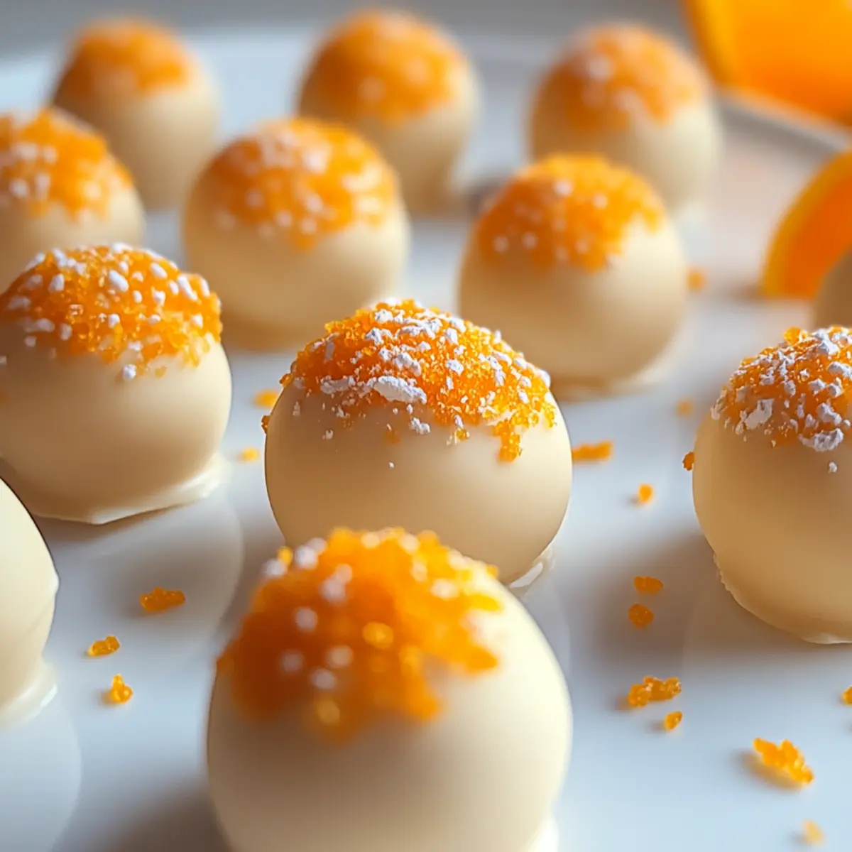 Traveling back to my childhood, I often recall the delight of indulging in a creamy orange popsicle on a hot summer day. These memories inspired me to create Orange Creamsicle Truffles, a no-bake dessert that beautifully captures that nostalgic flavor in every bite. Combining the rich creaminess of white chocolate with tangy cream cheese and a hint of fresh orange zest, these truffles are not only incredibly easy to whip up, but they also make for a delightful treat that’ll impress everyone at your next gathering. Plus, they’re naturally gluten-free, allowing you to share the joy with friends and family who have dietary restrictions. So, are you ready to bring a taste of summer to your kitchen? Let’s get started! Why Are Orange Creamsicle Truffles Irresistible? Nostalgic Delight: Each bite transports you back to sunny days, reminiscent of your favorite creamy orange popsicle. Effortless Preparation: These no-bake truffles require minimal skills, making them perfect for anyone, from novice cooks to seasoned chefs. Citrus Burst: Fresh orange zest infuses a vibrant flavor, keeping your taste buds excited and engaged. Versatile Treat: Customize with your choice of coatings or mix-ins, like crushed nuts or sprinkles, to make each batch unique. For a different take, try these Orange Chicken Savory for another citrusy delight! Crowd-Pleasing: With their elegant appearance and delightful taste, they’re sure to impress at any gathering, making them a go-to dessert for parties and celebrations. Diet-Friendly: Naturally gluten-free, everyone can enjoy these scrumptious truffles without worry! Orange Creamsicle Truffle Ingredients For the Truffles • Cream Cheese – provides a smooth, creamy texture and tangy flavor; substitute with mascarpone or vegan alternatives for a similar feel. • Powdered Sugar – adds sweetness and achieves a smooth consistency; adjust to taste if needed. • Fresh Orange Zest – enhances the citrus flavor and aroma; feel free to add more for a stronger kick. • Fresh Orange Juice – adds freshness, though bottled juice can work in a pinch; fresh juice is best for flavor. • White Chocolate Chips – contributes sweetness and a creamy texture; ensure they are melted carefully, and use gluten-free options if needed. • Vanilla Extract – adds a warm sweetness; almond extract can be substituted for a unique twist. For Coating (Optional) • Candy Melts – for coating; choose white or orange for visual appeal and extra flavor. Step‑by‑Step Instructions for Orange Creamsicle Truffles Step 1: Prepare Mixture In a mixing bowl, place 8 oz of softened cream cheese, 1 cup of powdered sugar, the zest of one fresh orange, and 2 tablespoons of fresh orange juice. Using an electric mixer, beat the ingredients on medium speed until the mixture is smooth and creamy, taking about 2–3 minutes. The texture should be light and well-combined, ensuring a delightful base for your Orange Creamsicle Truffles. Step 2: Melt Chocolate In a microwave-safe bowl or using a double boiler, gently melt 1 cup of white chocolate chips. If using the microwave, heat in 30-second intervals, stirring frequently until completely melted and smooth, which should take about 1–2 minutes total. Allow the melted chocolate to cool slightly; this helps to prevent curdling when mixed with the cream cheese. Step 3: Combine Ingredients Slowly pour the cooled melted white chocolate into the cream cheese mixture while stirring constantly with a spatula. This gradual introduction helps to fully incorporate the chocolate without clumping, achieving a glossy finish. Once combined, add 1 teaspoon of vanilla extract and mix thoroughly until the colors are uniformly blended, giving your Orange Creamsicle Truffles a rich flavor. Step 4: Chill Mixture Cover the mixing bowl with plastic wrap and refrigerate the mixture for about 1 to 2 hours. This chilling time is essential as it allows the mixture to firm up, making it much easier to scoop and handle. You’ll know it’s ready when the mixture holds its shape and is somewhat firm to the touch. Step 5: Form Truffles Once the mixture has chilled adequately, remove it from the refrigerator. Using a small cookie scoop, portion out the chilled mixture and roll it into bite-sized balls with your hands. Place each ball on a parchment-lined tray, ensuring there’s space between them for easy coating later. This should yield about 24–30 truffles, perfect for sharing! Step 6: Coat Truffles (Optional) If desired, melt additional candy melts in your preferred color (white or orange) following the same melting method as before. Dip each truffle into the melted candy melts, ensuring they are evenly coated. Allow the excess to drip off before placing the coated truffles back onto the parchment-lined tray to set. This creates a beautiful and smooth coating for your Orange Creamsicle Truffles. Step 7: Garnish For an extra special touch, sprinkle the tops of the truffles with additional fresh orange zest, a dusting of powdered sugar, or finely chopped candied orange peels. This not only enhances the flavor but also adds a pop of color and visual appeal to your Orange Creamsicle Truffles, making them even more enticing for your guests! What to Serve with Orange Creamsicle Truffles? There’s nothing quite like the vibrant sweetness of orange truffles to brighten your day and any gathering. Earl Grey Tea: The subtle bergamot notes in this tea perfectly complement the citrusy flavors, enhancing the overall dessert experience. Chocolate-Dipped Strawberries: The rich chocolate adds depth and texture contrast, creating a delightful balance with the smooth truffles. Sparkling Citrus Water: Refreshing and light, this drink echoes the flavors of the truffles, making it an invigorating pairing. Zesty Orange Salad: A vibrant mix of greens, citrus segments, and a light vinaigrette adds a refreshing crunch that complements the rich truffles. Whipped Cream: A dollop of freshly whipped