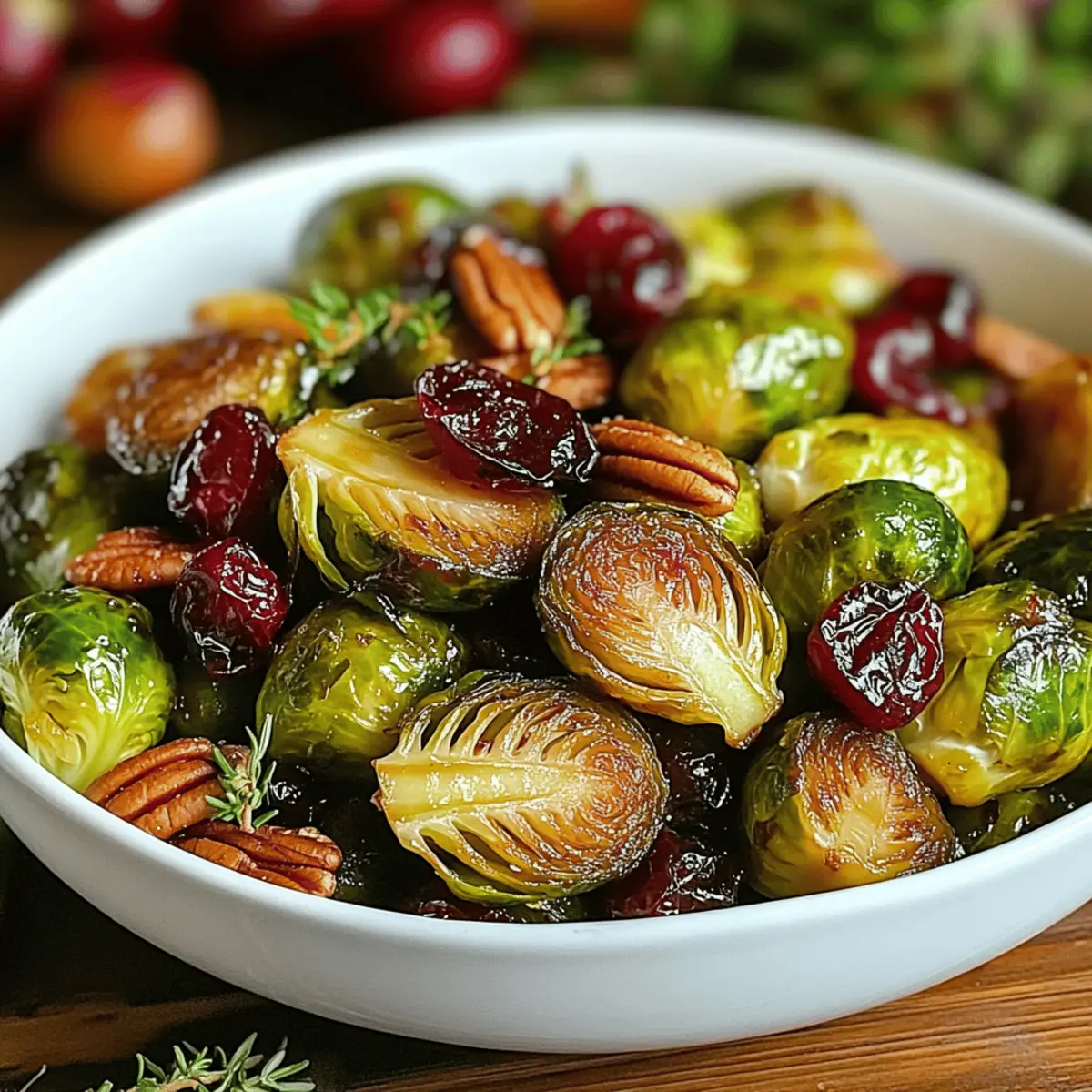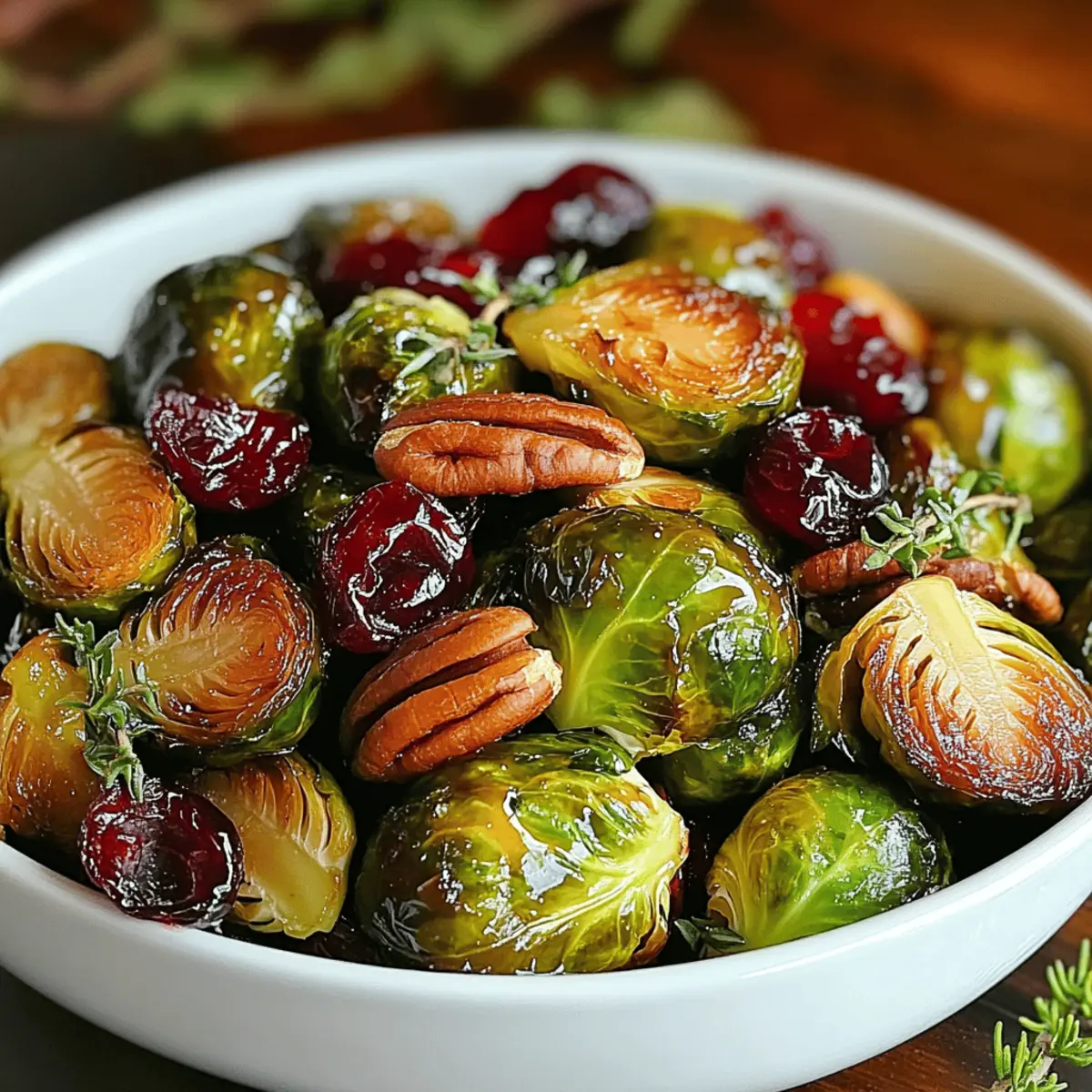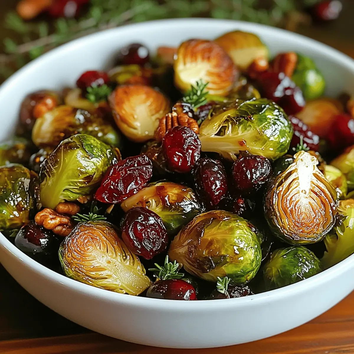 As I whisked together the fragrant orange juice and rich maple syrup, a cascade of memories rushed back—holiday feasts filled with laughter, joy, and the irresistible aroma wafting from the kitchen. This Orange Maple Glazed Brussels Sprouts with Cranberries recipe captures that festive spirit, serving as a vibrant complement to any Thanksgiving gathering or holiday table. The sweet, tangy glaze envelops the caramelized sprouts while the chewy cranberries add the perfect pop of flavor. Not only are these sprouts a delightful crowd-pleaser, but they’re also incredibly easy to whip up, making them a stress-free addition to your meal prep. Ready to elevate your side dish game and impress your guests? Let’s dive into this deliciously simple recipe! Why Are These Brussels Sprouts So Special? Festive Flavors: This recipe combines savory Brussels sprouts with a vibrant orange maple glaze, making it the perfect centerpiece for your Thanksgiving table. Quick & Easy: With just a handful of ingredients and straightforward steps, you can whip up this impressive side dish in under 30 minutes. Crowd-Pleasing Appeal: Whether you’re catering to vegetarians, gluten-free friends, or anyone who loves delicious food, these sprouts are universally loved—just like my Orange Chicken Savory! Unique Texture: Imagine crispy, caramelized sprouts beautifully glazed and contrasted with chewy cranberries, creating a delightful eating experience. Versatile Pairing: These sprouts shine alongside any main course, from roasted turkey to hearty vegetarian dishes, ensuring every plate is balanced and colorful. Elevate your festivities and impress your loved ones with this standout side dish! Orange Maple Glazed Brussels Sprouts Ingredients For the Brussels Sprouts • Brussels Sprouts – 1½ pounds, trimmed and halved for even cooking and enhanced caramelization. • Olive Oil – 3 tablespoons, essential for roasting to add richness and flavor. • Salt and Pepper – To taste, crucial for seasoning and enhancing the natural flavors of the sprouts. For the Glaze • Maple Syrup – 3 tablespoons, provides the natural sweetness that defines the Orange Maple Glazed Brussels Sprouts with Cranberries. • Orange Juice – 2 tablespoons, freshly squeezed to add brightness and acidity to the glaze. • Orange Zest – 1 teaspoon, for a concentrated citrus flavor; be sure to avoid the white pith for the best taste. • Dijon Mustard – 1 teaspoon, offers tanginess to balance out the sweetness of the glaze. • Butter – 1 tablespoon, melted to enrich the glaze consistency; substitute with plant-based butter for a vegan version. • Garlic – 1 clove, minced for a subtle savory note in the glaze. For the Topping • Dried Cranberries – ½ cup, adding tartness and chewiness; consider substituting with dried cherries or raisins if desired. • Toasted Pecans or Walnuts – ¼ cup, optional for crunch and richness; toasting them enhances their flavor significantly. Step‑by‑Step Instructions for Orange Maple Glazed Brussels Sprouts with Cranberries Step 1: Roast the Brussels Sprouts Preheat your oven to 400°F (200°C). In a large mixing bowl, toss the halved Brussels sprouts with olive oil, salt, and pepper until well-coated. Spread them out in a single layer on a baking sheet, cut side down, and roast for 20-25 minutes. Flip halfway through; they should become golden brown and crispy on the outside while remaining tender inside. Step 2: Make the Orange Maple Glaze While the Brussels sprouts are roasting, prepare your glaze. In a small saucepan over low heat, combine maple syrup, orange juice, orange zest, Dijon mustard, melted butter, and minced garlic. Whisk the mixture together until well blended, then let it simmer for 2-3 minutes. The glaze is ready when it has thickened slightly and becomes fragrant, enhancing the festive spirit of your Orange Maple Glazed Brussels Sprouts with Cranberries. Step 3: Combine and Garnish Once the Brussels sprouts are roasted to perfection, transfer them to a serving dish. Drizzle the warm orange maple glaze generously over the sprouts, ensuring they are coated evenly. Gently toss to combine, allowing the glaze to embrace each sprout. Finally, sprinkle the dried cranberries on top, and if you choose to add a little crunch, finish with toasted pecans or walnuts for extra texture. Serve warm and enjoy the delightful blend of flavors! Orange Maple Glazed Brussels Sprouts Variations Feel free to play around with the flavors and ingredients in this delightful dish! Maple Alternative: Substitute maple syrup with honey for a different sweet note and depth in flavor. Think of sipping honey on a warm toast; it adds a lovely floral sweetness that complements the citrus. Savory Boost: Add crispy bacon or pancetta for a savory depth that perfectly balances the sweetness of the glaze. Picture the satisfying crunch of bacon amplifying every bite, creating an indulgent treat that no one can resist! Dried Fruit Switch: Use other dried fruits such as pomegranate arils or apricots for a twist in texture and flavor. The burst of juiciness from pomegranates will add a surprising pop—like confetti on your holiday plate! Nut-Free Crunch: Substitute the toasted pecans or walnuts with sunflower seeds for a nut-free option without sacrificing crunch. Imagine the delightful texture, plus these seeds offer a subtle, nutty flavor that enhances the dish just beautifully. Herbal Infusion: Incorporate fresh herbs like rosemary or thyme into the glaze for an aromatic touch. Herbs add an earthiness that complements the zesty notes, making each mouthful even more fragrant and enjoyable. Spice it Up: Add a pinch of red pepper flakes for an extra kick of heat, bringing a thrilling contrast to the sweet glaze. A dash of spice can awaken your taste buds, turning this festive side dish into a vibrant flavor explosion. Vegetable Mix-Up: Toss in other roasted vegetables like carrots or sweet potatoes for added color 