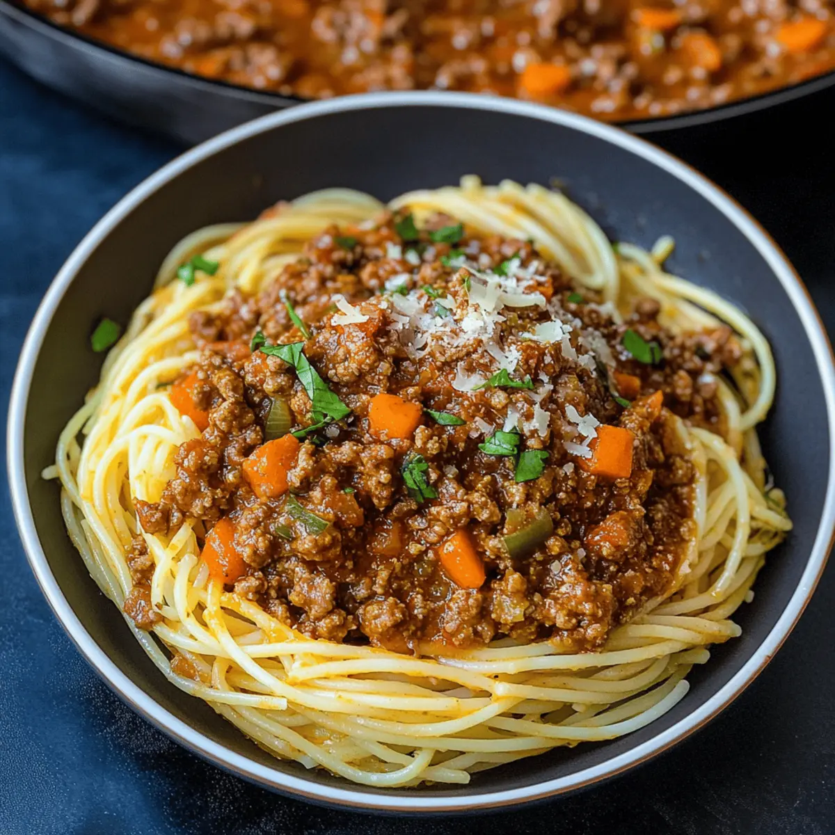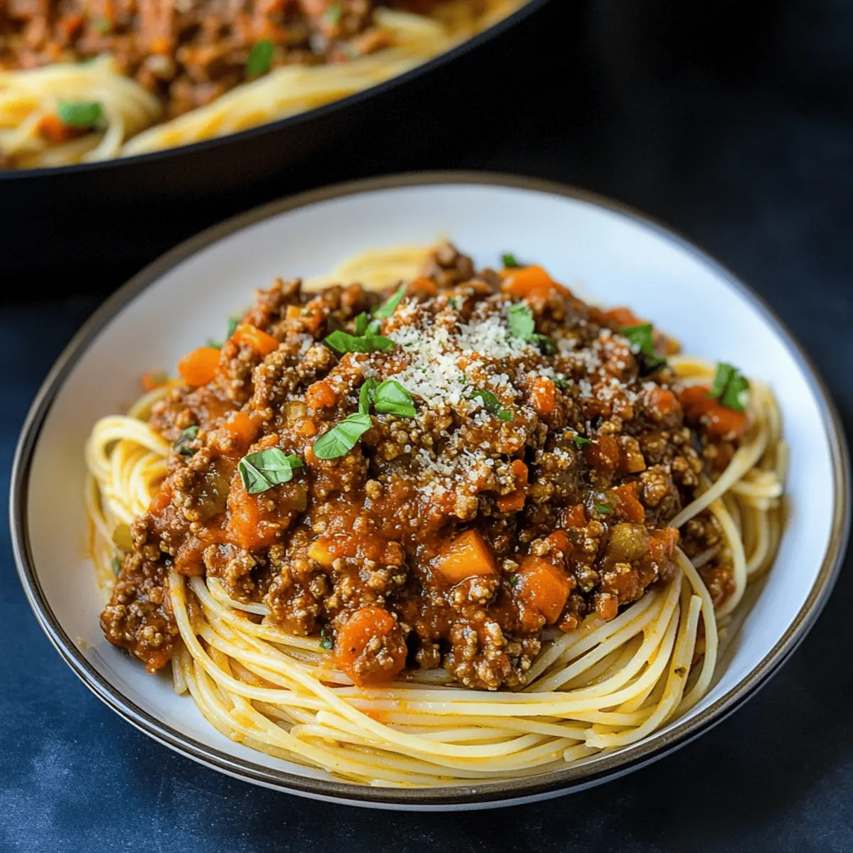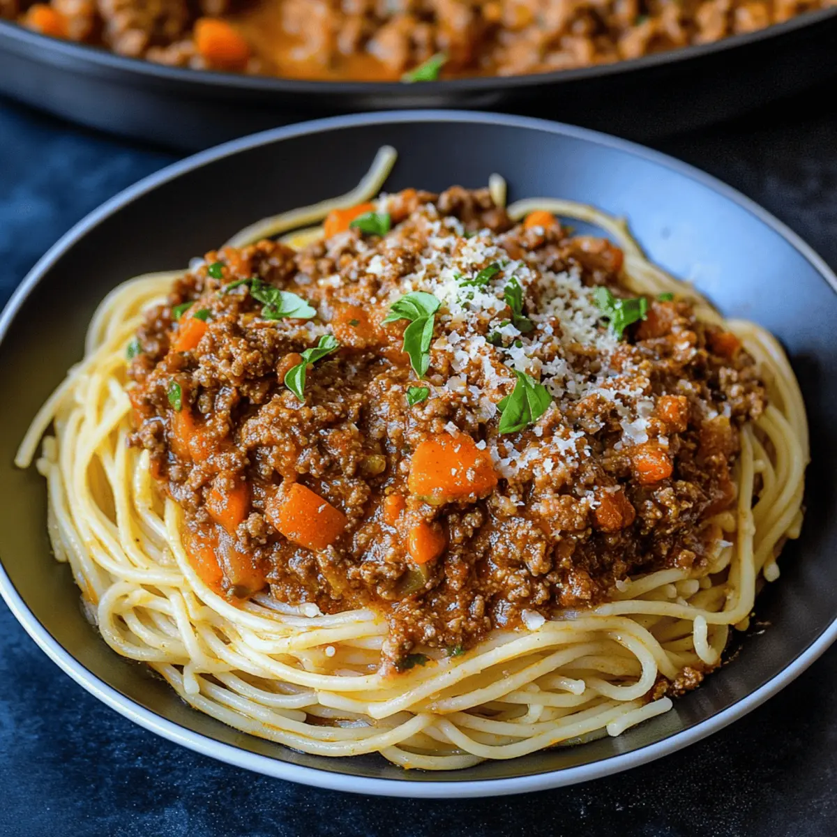 The savory aroma of simmering garlic and rich tomato sauce transports me to my favorite Italian kitchen every time I make this Easy One-Pan Pasta Bolognese. As a comfort food staple, this recipe combines hearty ground beef with fresh vegetables in a way that’s comforting yet quick enough for a busy weeknight dinner. Not only is it a satisfying one-pot meal that cuts down on cleanup, but it also makes for excellent leftovers—allowing you to savor the flavors for days. Whether you’re cooking for family or stealing a moment for yourself, this Pasta Bolognese is sure to warm your heart and plate. So, are you ready to bring a taste of Italy to your home? Why is Pasta Bolognese a must-try? Comforting yet Quick: This Easy One-Pan Pasta Bolognese perfectly balances the rich flavors of traditional Italian cooking with easy prep for busy nights. Versatile Ingredients: Customize with ground beef, turkey, or chicken, making it friendly for any dietary preference. Meal Prep Friendly: Freezing leftovers allows for delightful, hearty meals throughout the week. Looking for more meal prep ideas? Check out our delicious Butter Shrimp Pasta that’s just as satisfying! Minimal Cleanup: Who doesn’t love a one-pan dish? Less fuss means more time to enjoy every delicious bite. Flavorful and Satisfying: Each spoonful delivers a symphony of flavors, with the tender pasta perfectly cloaked in a rich, savory sauce. Pasta Bolognese Ingredients For the Sauce • Lean Ground Beef – Provides heartiness and protein; substitute with ground chicken or turkey for a lighter version. • Medium Onion – Adds sweetness and depth of flavor; use yellow or white onions for best results. • Celery Sticks – Contributes crunch and enhances flavor; fresh is best, ensuring vibrant taste. • Medium Carrot – Adds natural sweetness and color; shred for quicker cooking or swap with bell pepper in a pinch. • Garlic Cloves – Infuses aromatic richness; always opt for fresh garlic for the best flavor impact. • Marinara Sauce – Forms the flavorful base of the dish; choose low-sodium varieties for healthier alternatives. • Salt – Enhances overall taste; adjust to your preference, using sea salt for a cleaner touch. • Ground Black Pepper – Adds a hint of heat; freshly ground delivers superior flavor. For the Topping • Grated Parmesan – Introduces a salty, nutty finish; switch to pecorino for a bolder flavor or omit for a dairy-free option. Step‑by‑Step Instructions for Easy One-Pan Pasta Bolognese Step 1: Cook the Beef In a large, preheated deep skillet over medium-high heat, add lean ground beef. Break it apart with a spatula, browning it for about 5-7 minutes until no longer pink. As it cooks, you’ll notice a rich aroma filling the kitchen, signaling that the beef is ready for the next step. Step 2: Sauté Vegetables Add the chopped medium onion, shredded carrot, and diced celery to the skillet with the browned beef. Cook these vegetables for 5-7 minutes, stirring occasionally, until they soften and the onion turns translucent, enhancing the blend of flavors in your Pasta Bolognese. Step 3: Combine Sauce Ingredients Once the vegetables are tender, stir in the marinara sauce and freshly pressed garlic cloves. Season the mixture with salt and ground black pepper to elevate the taste. This ensures a flavorful sauce that envelops the pasta beautifully, bringing together all the elements of this hearty dish. Step 4: Simmer for Flavor Reduce the heat to medium-low and let the sauce simmer uncovered for about 15 minutes. This allows the flavors to meld together beautifully. Stir occasionally and watch the sauce thicken slightly, creating that inviting, rich texture that makes Pasta Bolognese so comforting. Step 5: Finish & Serve Remove the skillet from heat and stir in grated Parmesan cheese until melted and incorporated. This adds a delightful creaminess to the sauce. Serve your finished Pasta Bolognese over your choice of pasta, such as fettuccine or angel hair, ensuring each strand is beautifully coated in the hearty sauce. What to Serve with Easy One-Pan Pasta Bolognese There’s something magical about pairing the comforting richness of a pasta dish with the perfect sides to create a memorable meal experience. Garlic Bread: The crispy, buttery garlic bread soaks up the savory sauce, making every bite an indulgent treat. Plus, it adds delightful crunch to your meal. Caesar Salad: A crisp Caesar salad with tangy dressing balances the heaviness of the Pasta Bolognese, offering a refreshing contrast that complements every forkful. Roasted Vegetables: Flavorful roasted seasonal veggies bring a pop of color and healthy goodness to your plate while enhancing the meal’s overall depth. Italian Wine: A glass of Chianti or Primitivo pairs beautifully, with its acidity cutting through the richness of the sauce and enhancing the flavors on your palate. Focaccia Bread: Soft, herb-infused Focaccia adds a lovely texture and opportunity to soak up every last bit of that hearty sauce. Chocolate Mousse: For dessert, a light chocolate mousse provides a sweet finish that contrasts wonderfully with the savory meal, leaving a delightful taste on your palate. Make Ahead Options Pasta Bolognese is perfect for meal prep enthusiasts! You can prepare the entire sauce up to 3 days in advance, allowing those rich flavors to develop beautifully. Simply follow the first four steps of the recipe, let the sauce cool, and then store it in an airtight container in the refrigerator. For longer storage, it can be frozen for up to a month. To prevent separation when reheating, add a splash of water or additional marinara sauce while warming it on the stove. When ready to serve, just heat the sauce and toss it with fresh, cooked pasta for a quick, hearty meal that’s as delicious as if it were cooked fresh! Helpful Tricks for Pasta Bolognese Quality Ingredients: Use the best quality marinara sauce and ground meat available. This will ma