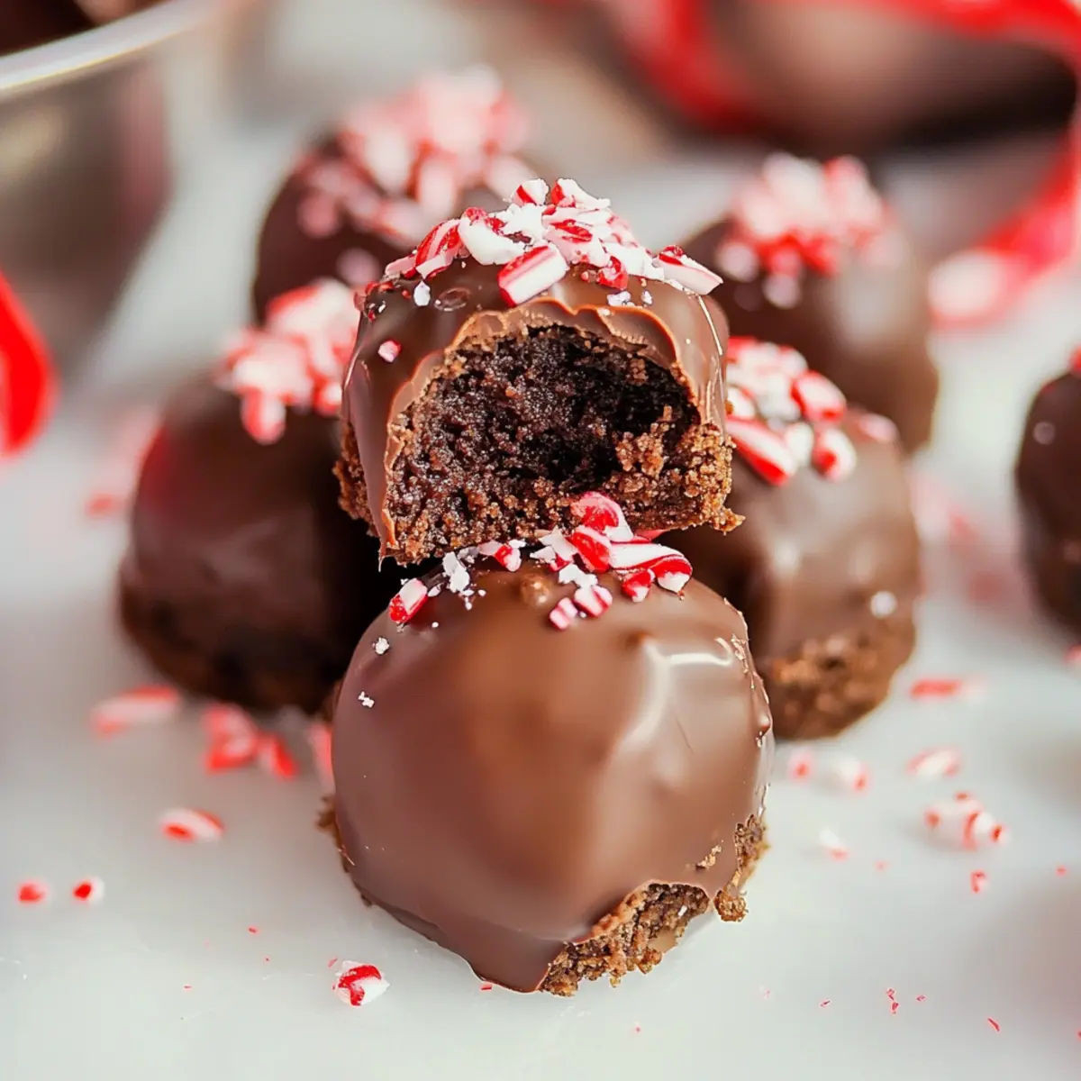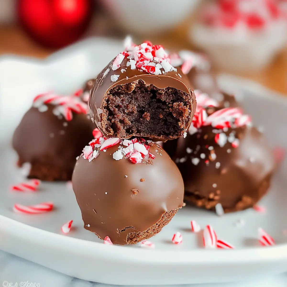 Indulge in Peppermint Brownie Truffles, a festive treat combining rich brownie and refreshing peppermint flavors.
