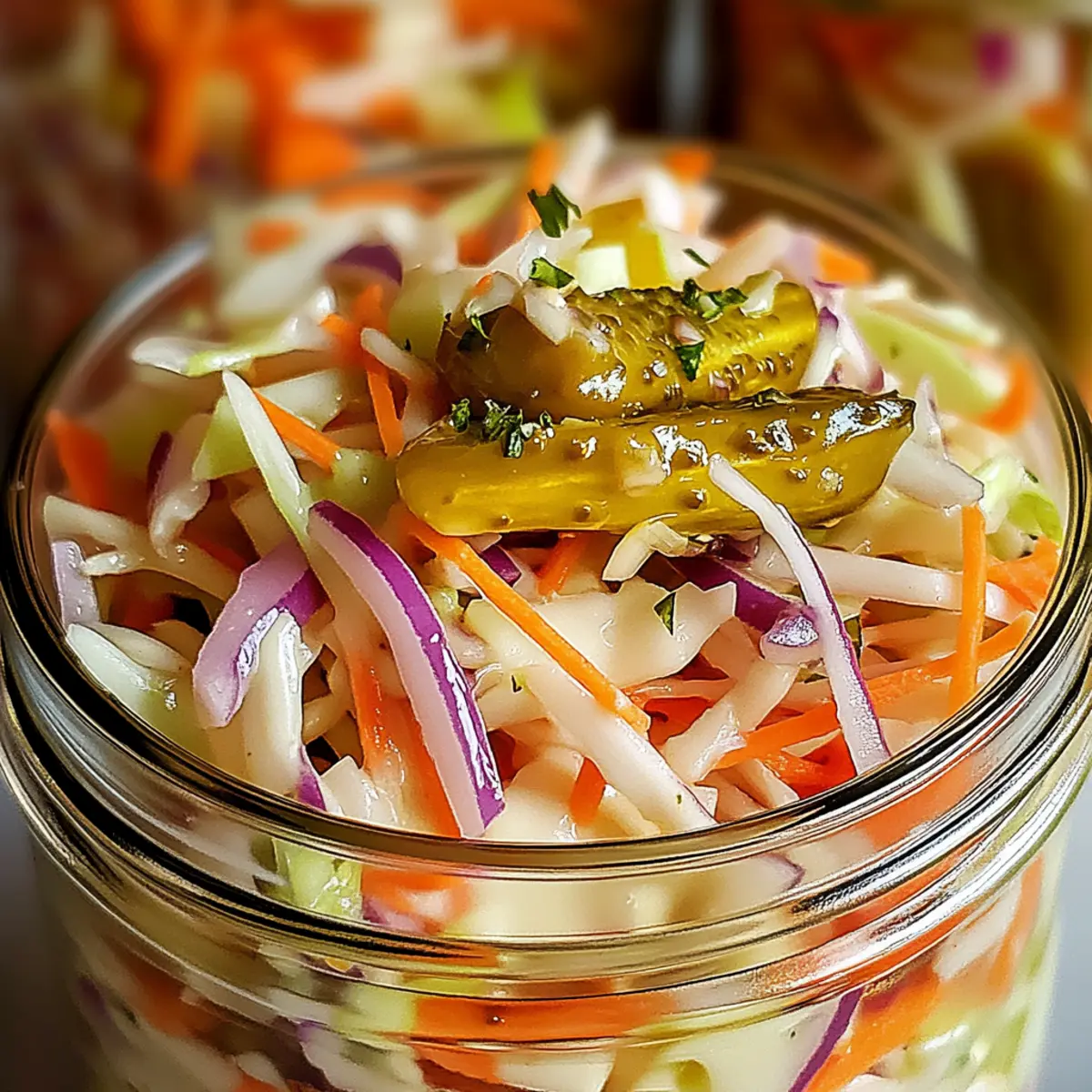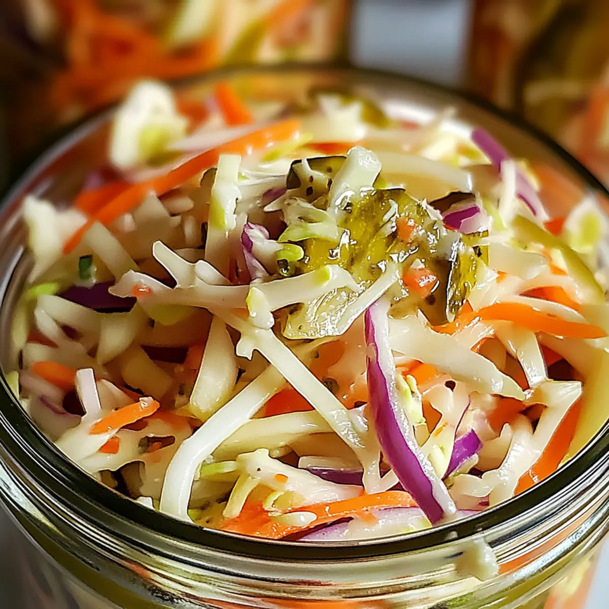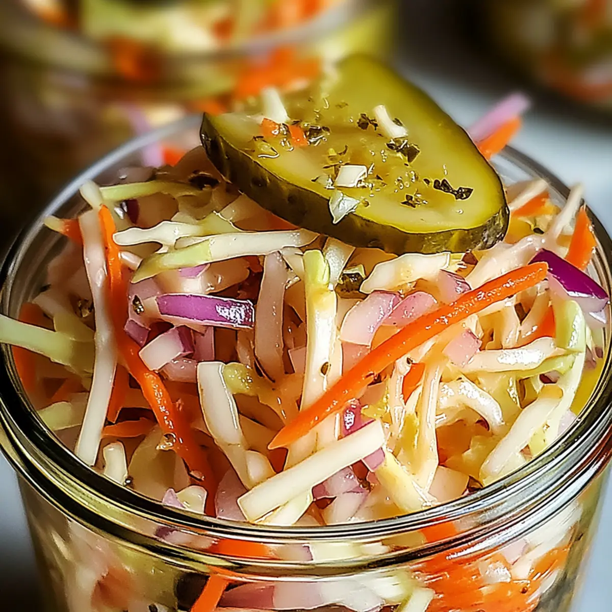 As summer sun hits, I often find myself longing for dishes that not only cool, but excite the palate. Enter my Sweet & Spicy Pickle Slaw! This vibrant creation is not just a quick recipe to whip up; it’s a crunchy delight that perfectly enhances any barbecue or family gathering. With customizable ingredients, this slaw shatters the fast food monotony and transforms your meals into something special. Plus, its unique balance of sweetness and heat makes it a refreshing side that even picky eaters will devour. Curious about how just a few simple ingredients can elevate your summer dishes? Let’s dive into this irresistible slaw! Why Is This Slaw a Must-Try? Delightful Crunch: Every bite of this Sweet & Spicy Pickle Slaw brings an explosion of texture, combining fresh vegetables that snap and crunch. Versatile Pairing: This slaw is more than a side—it’s a perfect compliment to grilled meats, fried chicken, or even as a filling in sandwiches. Quick & Easy: With just a few preparation steps, this recipe is a time-saver, making meal prep a breeze while still impressing your guests. Customizable Flavors: Change things up! Adapt the spice level or mix in some herbs to create your personal favorite. Crowd-Pleaser: It’s great for summer gatherings, ensuring that even the pickiest eaters enjoy a crunchy, flavorful side. You’ll love how it brightens up your plate! For serving ideas and the best ways to use leftovers, check out our storage tips. Pickle Slaw Ingredients • Ready to create a crunchy sensation with your pickle slaw? For the Slaw Green Cabbage – Use about four cups of shredded cabbage for that perfect crunch; look for firm heads without bruises. Carrots – One cup of grated carrots adds sweetness and a pop of color; fresh carrots will make a noticeable difference. Dill Pickles – Half a cup of chopped dill pickles gives the slaw its tangy kick; consider using bread-and-butter pickles for extra sweetness. Red Onion – Use a quarter cup of thinly sliced red onion for zest; soaking it in cold water can mellow its sharpness. For the Dressing Mayonnaise – Half a cup creates a creamy base; you can substitute with Greek yogurt for a lighter, tangy flavor. Sriracha Sauce – Two tablespoons add heat; feel free to adjust this if you prefer a milder or spicier profile. Honey – One tablespoon adds just the right amount of sweetness; opting for local honey can enhance the flavor complexity. Apple Cider Vinegar – One tablespoon provides tanginess and brightness; choose unfiltered for added health benefits. Create your pickle slaw masterpiece and transform your summer meals into something extraordinary! Step‑by‑Step Instructions for Sweet & Spicy Pickle Slaw Step 1: Prep Vegetables Begin by shredding about four cups of green cabbage and grating one cup of fresh carrots. In a large mixing bowl, combine the shredded cabbage with the grated carrots, half a cup of chopped dill pickles, and a quarter cup of thinly sliced red onion. Mix the ingredients thoroughly, ensuring an even distribution of colors and textures that set the stage for your vibrant pickle slaw. Step 2: Make Dressing In a separate bowl, whisk together half a cup of mayonnaise, two tablespoons of Sriracha sauce, one tablespoon of honey, and one tablespoon of apple cider vinegar. Stir until the mixture is smooth and well-combined, tasting as you go to adjust seasonings according to your preference for heat and sweetness. This creamy dressing will be the perfect complement to your pickle slaw. Step 3: Combine Ingredients Carefully pour the prepared dressing over the vegetable mixture in the large bowl. Use a spatula or large spoon to toss everything together gently until all the veggies are evenly coated with the luscious dressing. You should be able to see a beautiful sheen on the colorful slaw, promising a delightful taste with every bite of this Sweet & Spicy Pickle Slaw. Step 4: Chill Cover the bowl tightly with plastic wrap or transfer the slaw to an airtight container. Refrigerate for at least one hour, allowing the slaw to chill and the flavors to meld beautifully. As it cools, the crunchy vegetables will absorb the dressing, enhancing their taste and making the pickle slaw even more enjoyable when served. Step 5: Serve Once chilled, give the Sweet & Spicy Pickle Slaw a quick toss to redistribute the dressing and flavors that may have settled. Plate generously and, if desired, drizzle with a bit of extra dressing for a beautiful presentation. This refreshing slaw is now ready to accompany your favorite grilled meats or be enjoyed on its own as a delightful summer dish. Make Ahead Options These Sweet & Spicy Pickle Slaw are perfect for meal prep, making your busy weeknights so much easier! You can prep the vegetables (shredded cabbage, grated carrots, chopped pickles, and sliced onions) up to 24 hours in advance by storing them in an airtight container in the refrigerator to maintain their crunch. Additionally, you can also prepare the dressing and combine it with the veggies just before serving, allowing the flavors to meld without losing freshness. When ready to enjoy, simply toss the chilled slaw again, plate it generously, and revel in a delightful, vibrant side dish that’s just as delicious as when it was freshly made! What to Serve with Sweet & Spicy Pickle Slaw The vibrant, crunchy sweetness of this slaw adds a delightful kick to summer meals and gatherings. BBQ Pulled Pork: The tangy slaw cuts through the richness, creating a beautiful balance of flavors on your plate. Grilled Chicken: Pairing the slaw with grilled chicken adds a refreshing and colorful element to your dinner that’s impossible to resist. Fried Fish Tacos: Use the slaw as a topping, its crunch compliments the flaky fish while adding a sweet and spicy zing. Burgers: Elevate your classic burger with a scoop of this slaw for added texture and a burst of flavor that enhances the whole experience. Corn on the Cob: A side of buttery corn 