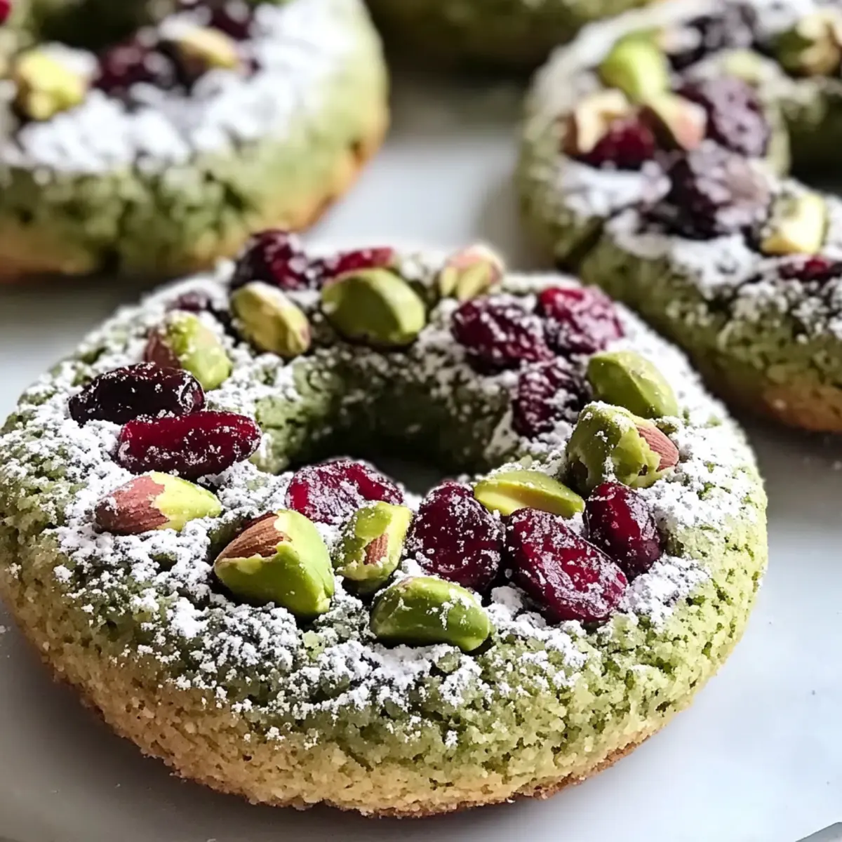 Delight in the festive flavors of Pistachio Cranberry Wreath Cookies, a perfect blend of nutty and tart that brightens any holiday gathering.