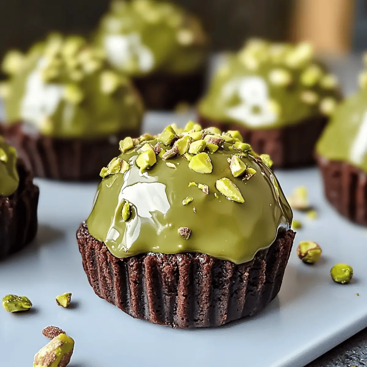 As I rummaged through my pantry one rainy afternoon, my eyes landed on a bag of vibrant green pistachios, and inspiration struck! This led to the creation of my Pistachio Ferrero Rocher Brownies, a nutty, fudgy dessert that combines luscious chocolate with the enchanting crunch of pistachio. These brownies are incredibly easy to whip up, making them perfect for satisfying late-night cravings or impressing guests with minimal effort. Each bite delivers a truffle-like essence that feels indulgent without the fuss of elaborate baking. Plus, they’re a delightful twist on traditional brownies that will make any nut lover’s heart sing! Are you ready to elevate your dessert game with this exceptional recipe? Why Are These Brownies So Irresistible? Decadent flavors abound in these Pistachio Ferrero Rocher Brownies, where rich chocolate and nutty pistachios come together for an unforgettable treat. Effortless to make, you’ll be amazed at how quickly these brownies come together, perfect for any occasion. Gourmet Appeal will impress friends and family, making any gathering feel special. Unique Texture from fudgy centers and crunchy toppings elevates your dessert experience. Versatile Alternatives encourage you to customize, from adding hazelnuts to drizzling with ganache. Don’t forget to pair with a scoop of ice cream for the ultimate indulgence! For more scrumptious ideas, check out our Caramel Swirl Brownies for a luxurious treat! Pistachio Ferrero Rocher Brownies Ingredients For the Brownies Pistachio Nuts – a nutty flavor and crunchy texture that elevate these brownies; swap with almonds for a different twist. Chocolate – offers rich sweetness; dark chocolate deepens the chocolate flavor while milk chocolate is sweeter. Butter – adds moisture and richness; coconut oil makes a great dairy-free alternative. Sugar – sweetens the brownies; consider coconut sugar or a sugar-free substitute for a healthier option. Eggs – act as a binder; flax eggs (1 tbsp flaxseed meal + 2.5 tbsp water per egg) work well for a vegan choice. Flour – provides structure; almond flour is perfect for a gluten-free version, while whole wheat flour adds health benefits. Cocoa Powder – enhances the chocolate flavor profile; use unsweetened or carob powder for a caffeine-free alternative. For the Topping Pistachio Cream – adds a silky finish; homemade or store-bought works equally well for convenience. Crushed Pistachios – add a delightful crunch and lovely presentation; freshly crushed is ideal for vibrant color. Step‑by‑Step Instructions for Pistachio Ferrero Rocher Brownies Step 1: Preheat Your Oven Begin by preheating your oven to 350°F (175°C). While your oven warms, prepare an 8×8-inch baking dish by greasing it with butter or lining it with parchment paper for easy removal later. This initial step ensures your Pistachio Ferrero Rocher Brownies bake evenly and come out perfectly moist. Step 2: Melt Chocolate and Butter In a heatproof bowl, combine your chopped chocolate and butter. Place the bowl over a saucepan of gently simmering water—make sure the bottom of the bowl doesn’t touch the water. Stir continuously until the mixture is smooth and silky, about 5-7 minutes. This creates the rich base for your brownies, so take care not to overheat. Step 3: Whisk Eggs and Sugar In a separate mixing bowl, use a whisk or electric mixer to beat the eggs and sugar together until the mixture is pale, fluffy, and slightly thickened, approximately 3-5 minutes. This step incorporates air into the batter, giving your Pistachio Ferrero Rocher Brownies a light texture while balancing the rich chocolate. Step 4: Combine Chocolate and Egg Mixtures Once the chocolate mixture has cooled slightly, slowly pour it into the egg and sugar mixture while stirring continuously. This prevents the eggs from scrambling. Gently fold the mixtures together until well combined, ensuring you create a rich chocolate base without overmixing, which can result in dense brownies. Step 5: Add Dry Ingredients and Nuts Sift in the flour, cocoa powder, and a pinch of salt into the combined mixture. Carefully fold these dry ingredients in until just combined. Then, add in the chopped pistachio nuts, folding them into the batter gently. This ensures a lovely nutty crunch throughout your Pistachio Ferrero Rocher Brownies, contributing to their delightful texture. Step 6: Pour and Spread the Batter Transfer the brownie batter into your prepared baking dish, using a spatula to spread it evenly. Ensure the top is smooth and level, which will help the brownies bake evenly. Now, you’re ready to place them in the preheated oven, bringing to life this delicious dessert that will soon fill your kitchen with delightful aromas. Step 7: Bake to Perfection Bake your brownies for approximately 25-30 minutes, or until a toothpick inserted into the center comes out with a few moist crumbs. Keep an eye on them—overbaking can lead to dry brownies! Once done, remove them from the oven and let them cool in the pan for 10-15 minutes before transferring them to a wire rack. Step 8: Cool and Top with Pistachio Cream After your Pistachio Ferrero Rocher Brownies have cooled completely, slice them into squares. To finish, spread a layer of silky pistachio cream on top of each brownie and sprinkle with crushed pistachios for that gourmet touch. This step not only adds flavor but also enhances the visual appeal, making your brownies truly irresistible. Expert Tips for Pistachio Ferrero Rocher Brownies Melted Chocolate Care: Ensure the chocolate and butter mixture cool slightly before adding it to the eggs. This prevents the eggs from cooking and keeps your brownies soft. Mixing Matters: Avoid overmixing the batter after adding flour and pistachios. Gently fold ingredients to maintain a fudgy texture in your Pistachio Ferrero Rocher Brownies. Quality Ingredients: Always choose high-quality chocolate and fresh pistachios. They are key to elevating the fla