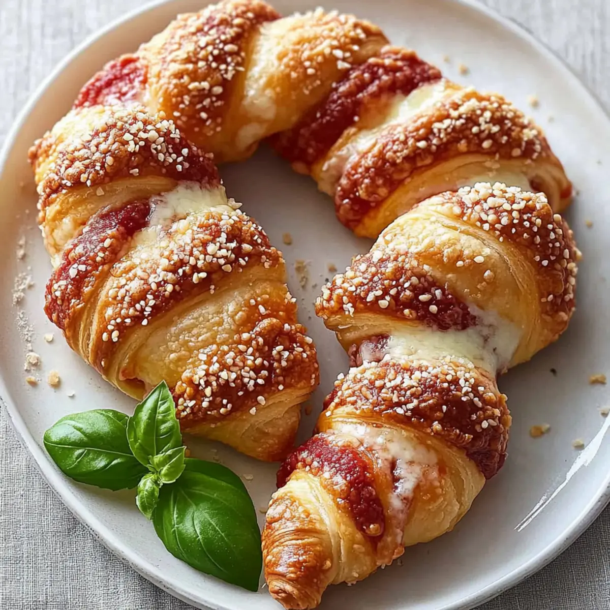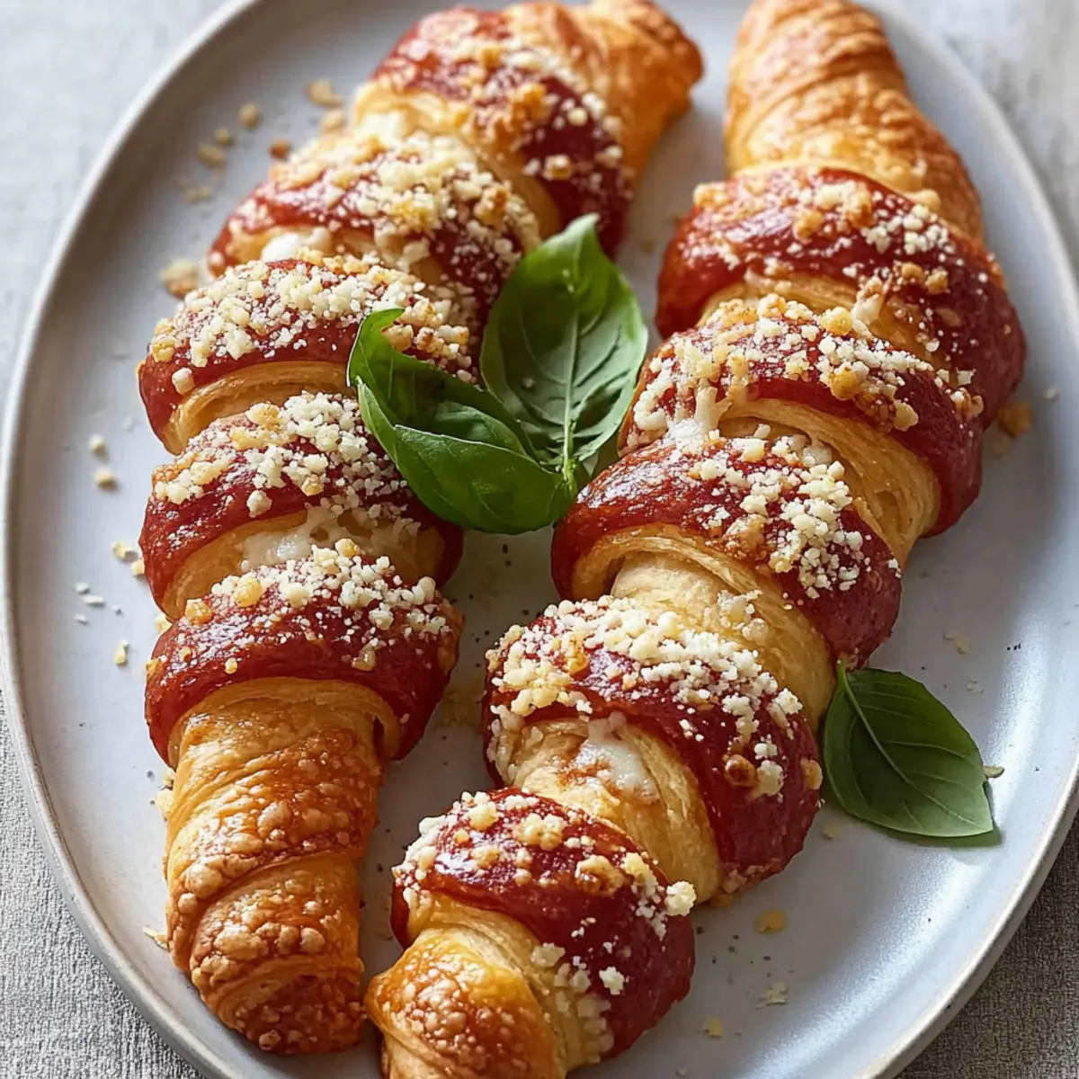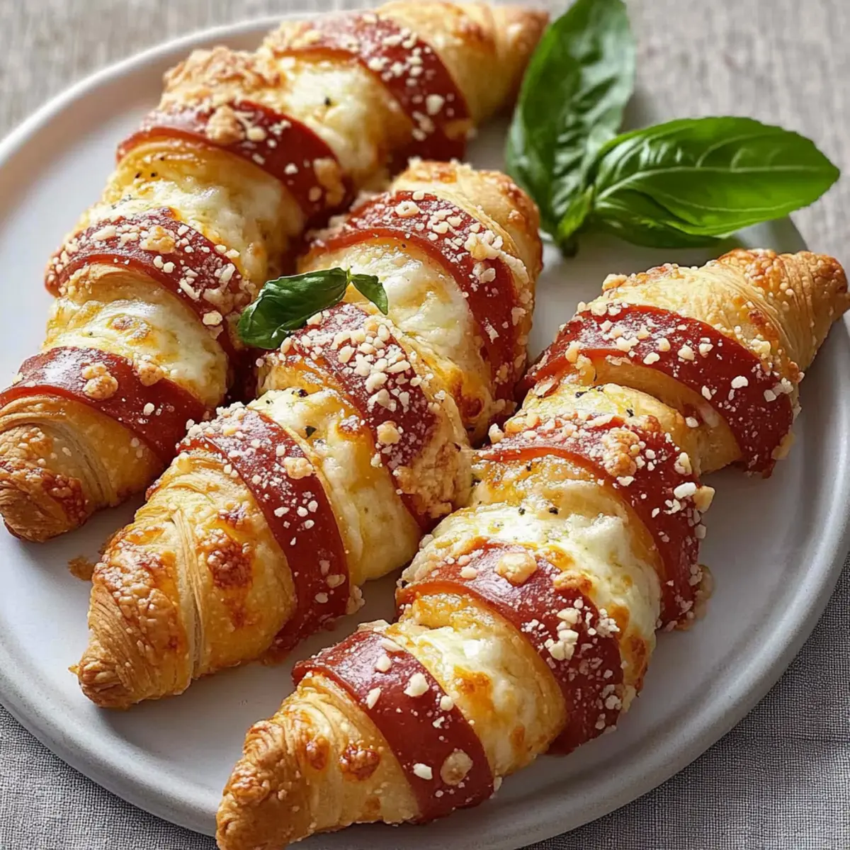 The kitchen buzzes with excitement as I pull out a tray of freshly baked delights, each one adorning the whimsical shape of a candy cane. These Cheesy Pizza Candy Cane Crescents have become my secret weapon for easy appetizers that steal the spotlight at any holiday gathering. With their gooey mozzarella filling and crunchy exterior, they’re not just a feast for the stomach but for the eyes as well—perfectly snap-worthy! Plus, they come together in a snap, making them an ideal choice for those of us racing against the clock. Whether you prefer them classic with pepperoni or want to customize a vegetarian version bursting with flavor, these crescent rolls are sure to bring everyone together. Ready to make your next appetizer the ultimate crowd-pleaser? Let’s dive into this festive treat! Why will you love Pizza Candy Cane Crescent? Cuteness Factor: The iconic candy cane shape adds a playful twist, making these crescents a hit for holiday parties. Quick and Easy: Crafted in just 30 minutes, these tasty treats are perfect for those busy days! Flavor Galore: Enjoy the gooey mozzarella and savory pepperoni, or switch it up—try olives or sautéed veggies for a unique take. Dipping Delight: Pair them with your favorite sauces like garlic butter or even ranch for extra flavor! Check out these Pepperoni Pizza Roll ideas for more great dips. Crowd-Pleaser: Their attractive look and burst of flavor will have everyone reaching for more! Pizza Candy Cane Crescent Ingredients Get ready to whip up this delightful treat with simplicity and flavor in mind! For the Dough Refrigerated Rolled Crescent Dough – Perfectly forms the playful candy cane shape while providing a flaky texture. Sesame Seeds – Adds a delightful crunch on top for extra texture; feel free to swap for poppy seeds. For the Filling Prepared Pizza Sauce – Infuses that rich, familiar flavor; but you can customize with ranch dressing for dipping! Shredded Mozzarella Cheese – Offers that essential gooeyness; substitute with dairy-free mozzarella if needed. Pepperoni Slices – Introduces a savory bite; switch out for sautéed veggies or cooked sausage to suit dietary preferences. For Garnish Fresh Basil Leaves – Brightens up each crescent with a fragrant pop; fresh oregano can work well as an alternative. These Pizza Candy Cane Crescents are sure to become a holiday staple, bringing joy to your table and smiles to your guests! Step‑by‑Step Instructions for Pizza Candy Cane Crescent Step 1: Prep Dough Preheat your oven to 400°F (204°C) while you prepare the dough for your Pizza Candy Cane Crescents. Unroll the refrigerated crescent dough onto a lightly floured surface, and separate it along the perforated lines. Carefully halve each triangle lengthwise to create a total of 16 triangles. This will give you the perfect base for your festive creations. Step 2: Assemble Overlap two of the triangles slightly at the base, pressing gently to seal them together for extra stability. Spread a layer of pizza sauce over the thicker part of the dough. Generously sprinkle shredded mozzarella cheese on top, followed by a few pepperoni slices. Take the pointed ends of the dough, fold them over the filling, and curve the top end to create the iconic candy cane shape. Step 3: Bake Place the shaped Pizza Candy Cane Crescents on a parchment-lined baking sheet for easy transfer and cleaning. Before baking, sprinkle sesame seeds over the tops for added crunch. Slide the baking sheet into your preheated oven and bake for about 8-10 minutes, or until the crescents are golden brown and the cheese is melting. The delightful aroma will fill your kitchen! Step 4: Serve Once baked, remove the luminous Pizza Candy Cane Crescents from the oven and allow them to cool for a minute. Tuck in fresh basil leaves into the curve of each candy cane for a burst of flavor and color. Slice the crescents if desired and set them out warm with extra pizza sauce for dipping, inviting everyone to indulge in this fun, festive treat! What to Serve with Pizza Candy Cane Crescent These delightful crescent rolls create a playful centerpiece for any festive gathering, inviting your guests to indulge in a fun-filled culinary experience. Crispy Green Salad: Tossed with a tangy vinaigrette, this salad offers a refreshing crunch that perfectly balances the savory crescents. Garlic Butter Dipping Sauce: Creamy and rich, this sauce enhances the flavors of the crescents, providing a mouthwatering option for each bite. Vegetable Platter: A colorful array of fresh veggies adds a crisp texture that’s perfect alongside the gooey-filled crescents, making for a wholesome snack. Caprese Skewers: With fresh mozzarella, basil, and tomatoes, these skewers bring a burst of flavor that complements the cheesy crescents beautifully. Pizza-inspired Pasta Salad: Combining pasta with similar fillings like pepperoni and cheese gives a delightful nod to the pizza theme while keeping it light. Hot Chocolate or Mulled Wine: Warm, spiced drinks can cozy up your gathering, enhancing the holiday vibe and pairing wonderfully with these festive snacks. Fruit Platter: Offering a selection of fresh fruit provides a sweet contrast to the savory crescents, refreshing the palate in between bites. Pizza Candy Cane Crescent Variations Feel free to let your creativity shine by customizing the flavors and textures of these delightful crescents! Vegetarian Delight: Replace pepperoni with roasted red peppers, sautéed mushrooms, or a lovely spinach mix for a fresh twist. Dairy-Free Option: Swap out the mozzarella for a dairy-free mozzarella cheese to cater to lactose sensitivities while keeping the gooey goodness. Flavor Boost: Add a sprinkle of Italian seasoning, garlic powder, or crushed red pepper to your pizza sauce before spreading it for an explosion of flavor. Sweet Heat: Incorporate some jalapeño slices with the filling for a spicy kick to contrast the cheesy richness! Alternate Sauces: Experiment with di
