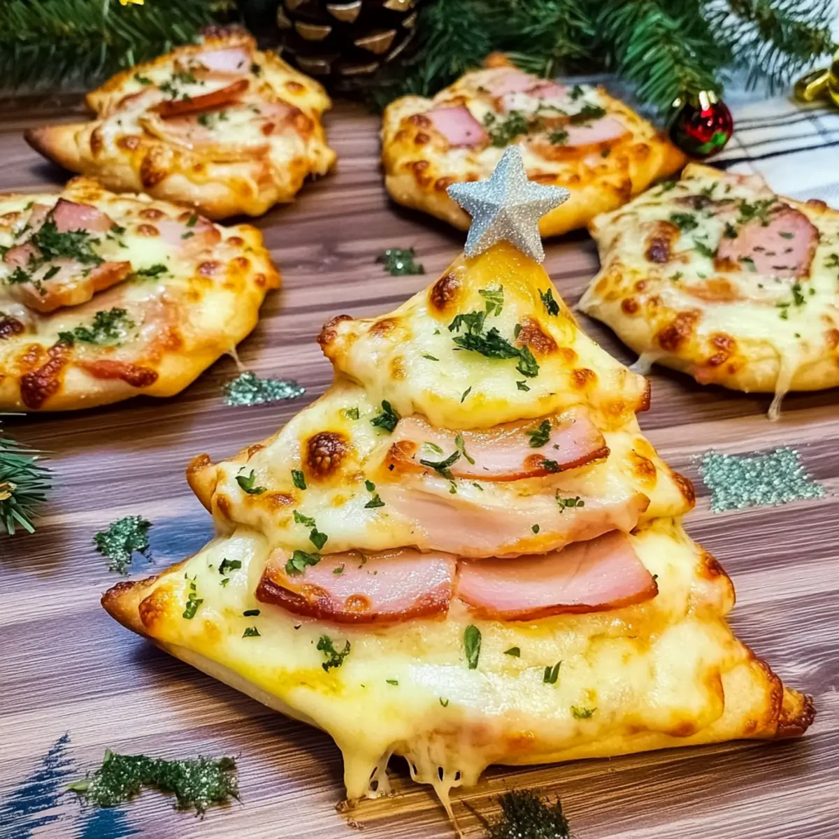 Last holiday season, I found myself surrounded by smiling faces and laughter, all eagerly gathered around the kitchen island. That’s when I served my Pizza Weihnachtsbaum mit Käse und Schinken, an eye-catching Christmas tree concoction that transformed our typical snacktime into a festive celebration. This delightful dish is not just stunning; it’s chock-full of melted cheese, savory ham, and crusty pizza dough, making it a surefire hit at any gathering. Plus, it’s incredibly easy to whip up, letting you spend more time enjoying the company of friends and family instead of slaving away in the kitchen. Whether you’re hosting a holiday party or cozying up for a family movie night, this scrumptious finger food will definitely bring cheer to your table. Curious about how to make this show-stopping treat? Let’s dive into the festive fun! Want a Festive Showstopper this Christmas? Delightful Presentation: The Pizza Weihnachtsbaum mit Käse und Schinken is not just food; it’s a centerpiece! Shaped like a Christmas tree, it instantly elevates your holiday gatherings. Crowd-Pleasing Flavor: With gooey cheese and savory ham, each bite is a burst of festive flavor that everyone will love. Easy Preparation: You can whip this up in no time, using pre-made pizza dough for convenience. Versatile Options: Swap ham for veggies or mix different cheeses to cater to any palate. Perfect for Sharing: Serve it warm alongside your favorite dips or salads, making it an ideal party snack that encourages communal enjoyment. Don’t miss out—try adding variations like those in Pepperoni Pizza Roll Ups for even more festive fun! Pizza Weihnachtsbaum mit Käse und Schinken Ingredients For the Pizza Base • XXL Pizzateig (Pizza Dough) – This dough acts as the delightful foundation; use pre-made for speed, or roll out your own for a personal touch. For the Savory Filling • Kräftiger Käse (Strong Cheese) – A rich flavor enhancer that melts to perfection; cheddar or mozzarella work well as substitutes if desired. • Schinken (Ham) – Adds a savory punch; feel free to swap with turkey or a vegetarian alternative like mushrooms for a different twist. • Crème fraîche mit Gartenkräutern (Herb Cream Fraiche) – This smooth spread brings moisture and herbaceous flavor; Greek yogurt is a healthy alternative. For the Finishing Touches • Kräuterbutter (Herb Butter) – Drizzle this melt-in-your-mouth blend for a glossy finish and enhanced taste; olive oil infused with herbs is a great substitute. • Käse am Stück (Cheese Block for Stars) – Used to cut star shapes for decoration; any good melting cheese will add charm to your festive creation. • Lange Holzspieße (Long Skewers) – Essential for constructing your delightful Christmas tree; ensure they’re long enough to support your masterpiece. This Pizza Weihnachtsbaum mit Käse und Schinken not only looks stunning but also delivers on taste, making it the perfect dish for your holiday festivities! Step‑by‑Step Instructions for Pizza Weihnachtsbaum mit Käse und Schinken Step 1: Preheat Your Oven Begin by preheating your oven to 180°C (356°F). This ensures that your Pizza Weihnachtsbaum mit Käse und Schinken bakes evenly and achieves that beautifully golden crust. Prepare your baking sheet by lining it with parchment paper for easy cleanup and to prevent sticking once the pizza tree is done baking. Step 2: Roll Out the Dough On a lightly floured surface, roll out your XXL Pizzateig until it’s about 0.5 cm thick. Spread half of the surface generously with the herb cream fraiche, allowing it to reach the edges for maximum flavor. Make sure the dough is even, as this will create a consistent texture throughout your festive Pizza Weihnachtsbaum. Step 3: Add the Fillings Next, layer your kräftiger Käse and schinken evenly over the herb cream fraiche. Be generous with the cheese to ensure that it melts beautifully, creating an irresistible gooey center. Feel free to mix and match different cheeses if desired, as this will add depth to the overall flavor of your Christmas tree pizza. Step 4: Fold the Dough Fold the unspread half of the dough over the filled half, creating a pocket of cheesy goodness. Gently press the edges to seal, ensuring no filling escapes during baking. This step is crucial for maintaining the tree shape you want for your Pizza Weihnachtsbaum, so take your time to make sure it’s sealed well. Step 5: Cut the Strips Using a pizza cutter, slice the dough into 8 equal-width strips, making sure to cut through both layers. This will create the branches of your pizza tree. Keep the cuts straight and even for a uniform appearance, as it enhances not only the look but the baking process of your Pizza Weihnachtsbaum. Step 6: Shape the Tree Twist each strip tightly to form branches, then stack them on top of each other to resemble a Christmas tree. Secure the stacked strips with a long wooden skewer, leaving about 2 cm free at the top for your cheese star. This step brings your Pizza Weihnachtsbaum mit Käse und Schinken to life, creating that iconic festive shape. Step 7: Bake the Tree Place your shaped pizza tree onto the prepared baking sheet and slide it into the preheated oven. Bake for 15 to 22 minutes or until the dough is golden brown and the cheese is bubbling. Keep an eye on it to avoid over-browning, as your goal is a crisp exterior with a warm, melty interior. Step 8: Brush with Herb Butter Once baked, melt the remaining Kräuterbutter in a small saucepan. Carefully brush this flavorful mixture over the hot pizza tree to add richness and a shiny finish. This step enhances both the aroma and the flavor, making your Pizza Weihnachtsbaum even more irresistible to your guests. Step 9: Add the Decorative Cheese Stars Finally, cut star shapes from your cheese block and place them atop the skewer to complete your dazzling Pizza Weihnachtsbaum with Käse. The stars not only add a festive touch but also boost the chee