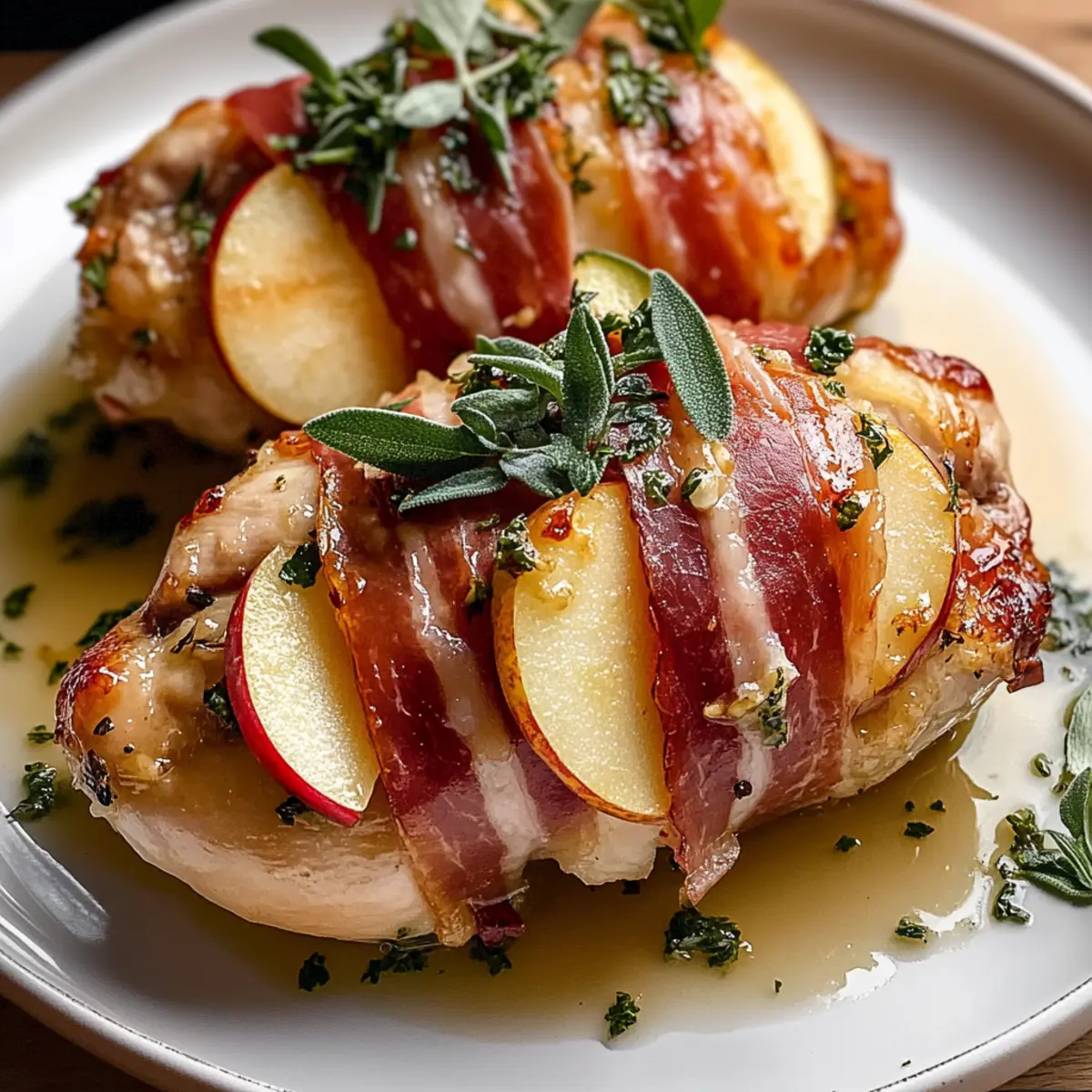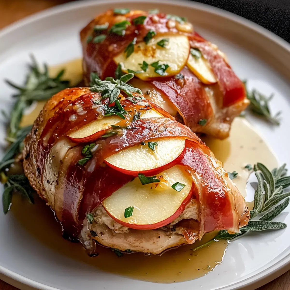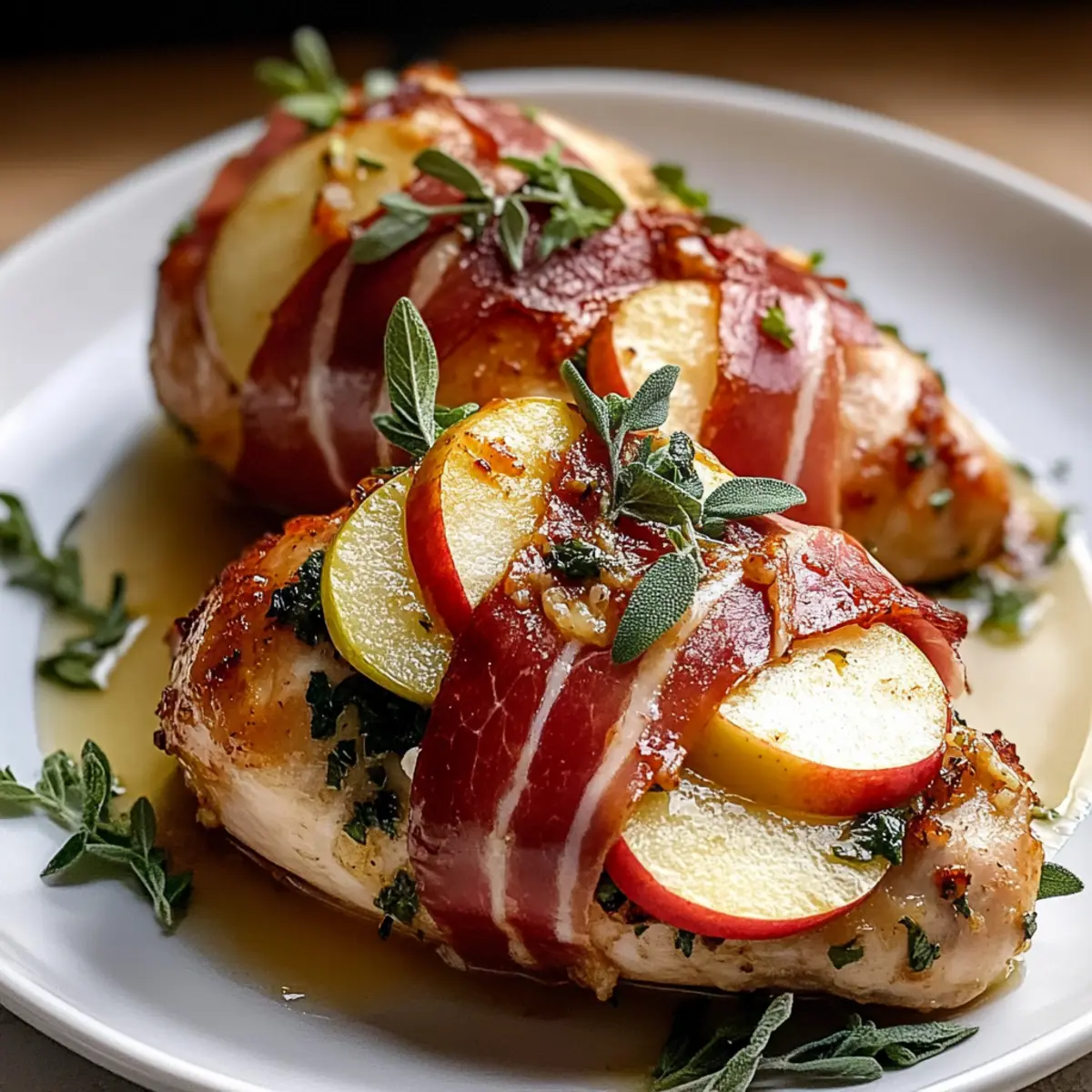 As I stood at my kitchen counter last week, the sweet aroma of sautéing apples mingling with savory prosciutto transported me to a cozy autumn evening, where comfort food reigns supreme. That’s how I stumbled upon this delightful Prosciutto Apple and Sage Butter Chicken with Cider Pan Sauce recipe—a stunning dinner that can transform any night into something special. This dish not only captures the essence of fall with its warm flavors, but it’s also a breeze to whip up in under an hour, perfect for both busy weeknights and entertaining friends. The marrying of juicy chicken, crisp apples, and aromatic sage creates a comforting sensation that invites you to savor every bite. Ready to impress your loved ones with this crowd-pleaser that feels both indulgent and effortless? Let’s dive into the rich, savory goodness! What makes this chicken dish irresistible? Simplicity reigns supreme: This Prosciutto Apple and Sage Butter Chicken with Cider Pan Sauce comes together in under an hour with minimal ingredients, making it an ideal choice for those busy nights. Rich flavors emerge as the savory prosciutto and sweet apples harmonize perfectly in each bite. Versatile serving options abound—from pairing with roasted vegetables to enjoying alongside a fresh salad. Perfect for gatherings, this dish impresses guests without consuming your entire evening. Get ready to delight your family and friends with a cozy meal that tastes gourmet yet feels like home! Prosciutto Apple and Sage Butter Chicken Ingredients • Elevate your autumn dinner with these flavorful ingredients! For the Chicken Boneless, skinless chicken breasts – Lean meat that absorbs the savory sauce beautifully. Prosciutto – Offers a delicious salty note that complements the sweetness of the apples. Small apples (e.g., Granny Smith) – Provides a crisp, tart flavor, enhancing the dish’s overall profile. Fresh sage leaves – Adds an aromatic, earthy touch that brings warmth to the chicken. For the Sauce Unsalted butter – Enriches the chicken and sauce; can substitute with margarine for a dairy-free version. Olive oil – Ideal for achieving a perfect sear on the chicken, preventing burning. Apple cider – Forms the base of the sauce, adding fruity depth to the flavor profile of the Prosciutto Apple and Sage Butter Chicken with Cider Pan Sauce. Dijon mustard – Imparts a zesty note that balances the dish’s richness. Apple cider vinegar – Brightens the sauce, enhancing its overall tanginess. Chopped fresh parsley – Offers a splash of color and a fresh herbaceous finish for garnish. Step‑by‑Step Instructions for Prosciutto Apple and Sage Butter Chicken with Cider Pan Sauce Step 1: Preheat the Oven Begin by preheating your oven to 375°F (190°C) to ensure it’s hot and ready for roasting. This step is crucial for achieving evenly cooked, succulent chicken in your Prosciutto Apple and Sage Butter Chicken with Cider Pan Sauce. While the oven warms, gather your other ingredients to streamline the cooking process. Step 2: Prepare the Chicken Butterfly the boneless chicken breasts by slicing them horizontally, creating a pocket for the delicious filling. Be careful not to cut all the way through; the goal is to have a thick pocket. Once butterflied, season the inside generously with salt and pepper. This initial seasoning lays a flavorful foundation for your dish. Step 3: Fill the Chicken Layer the inside of the chicken breast with slices of prosciutto, followed by thinly sliced apples and fresh sage leaves. These ingredients will impart rich, savory flavors while keeping the chicken moist. Once filled, carefully close the chicken, tucking the filling inside to ensure nothing escapes while cooking. Step 4: Sear the Chicken In a large skillet, heat a tablespoon of olive oil and one tablespoon of unsalted butter over medium heat. Add the stuffed chicken breasts and sear each side for about 3-4 minutes. Look for a golden-brown crust to form as you cook, which enhances the overall flavor of the Prosciutto Apple and Sage Butter Chicken. Step 5: Roast in the Oven Transfer the skillet directly to the preheated oven and roast for 15-20 minutes, or until the internal temperature of the chicken reaches 165°F (75°C). This step ensures the chicken is fully cooked while allowing the flavors to meld beautifully. Keep an eye on the time and use a meat thermometer for accuracy. Step 6: Tent the Chicken Once done, remove the skillet from the oven and tent the chicken loosely with foil to keep it warm while you prepare the sauce. This resting period also helps the chicken retain its juices, making each bite juicy and flavorful in your Prosciutto Apple and Sage Butter Chicken with Cider Pan Sauce. Step 7: Make the Cider Pan Sauce Place the skillet back on the stove over medium heat and pour in the apple cider, scraping up any browned bits from the bottom with a wooden spoon. These bits are packed with flavor. Next, mix in Dijon mustard and apple cider vinegar, whisking thoroughly until well combined into a lovely sauce. Step 8: Simmer the Sauce Allow the sauce to simmer for about 5 minutes, which will help reduce and thicken it slightly. As it bubbles, taste and adjust the seasoning if needed. This rich, tangy sauce will perfectly complement the sweetness of the apples and the savory notes of the chicken. Step 9: Warm the Chicken Nestle the seared chicken back into the flavorful cider sauce, allowing it to warm through for another couple of minutes. This final step infuses the chicken with even more flavor from the sauce, ensuring every bite is decadent and delicious. Step 10: Serve and Garnish Serve the Prosciutto Apple and Sage Butter Chicken with Cider Pan Sauce on a platter, spooning the sauce generously over the top. For a pop of color and freshness, garnish with chopped fresh parsley. This not only enhances the presentation but adds a herbaceous note to the dish. Prosciutto Apple and Sage Butter Chicken Variations Feel free 