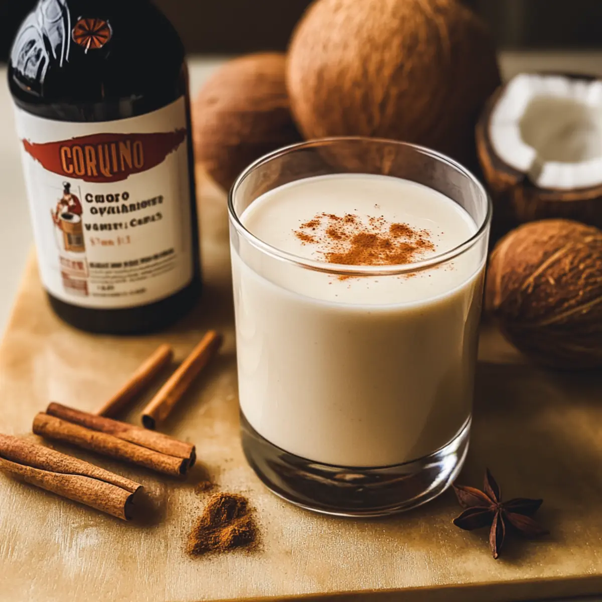 As I sipped on a chilled glass of Coquito at a recent holiday gathering, the creamy blend of coconut and warm spices whisked me away to the sun-kissed shores of Puerto Rico. This beloved Puerto Rican authentic drink is a tradition that celebrates not just the festive season, but also the joyous moments spent with loved ones. With its easy, no-bake preparation, Coquito brings warmth to any gathering while being a delightful treat for coconut lovers. You can even explore various flavors, from a rich chocolate twist to a refreshing no-alcohol version. What’s your favorite way to enjoy this festive beverage? Why is Coquito the ultimate festive drink? Creamy Delight: Coquito is a luscious, coconut-infused beverage that feels like a holiday hug in a glass. Simplicity at its finest: With a quick no-bake recipe, you can create this festive drink in no time. Versatile Variations: Enjoy classic flavors or try unique twists like Chocolate or Coffee Coquito to surprise your guests. Perfect for Sharing: This crowd-favorite appeals to everyone, from cocktail enthusiasts to those seeking a non-alcoholic refresher. Plus, it’s the ideal drink to pair with your favorite festive dishes or alongside a bowl of Mexican Sopa Fideo for a delightful holiday feast! Puerto Rican Authentic Coquito Ingredients For the Coquito Base • Coconut Milk – Provides a creamy foundation; opt for full-fat for a richer texture. • Cream of Coconut – Adds sweetness and body; can be swapped with more sweetened condensed milk if needed. • Sweetened Condensed Milk – Ensures that delightful sweetness; choose low-sugar varieties to reduce sweetness levels. • Evaporated Milk – Enhances creaminess; full-fat oat milk is a great alternative if you want a lighter option. For Flavor and Depth • White or Gold Rum – Infuses warmth and depth; choose high-quality Puerto Rican rum for the best flavor. • Vanilla Extract – Contributes a lovely aroma that rounds out the drink’s flavors. • Salt – A tiny pinch expertly enhances sweetness and balances flavors. For the Spices • Whole Spices (Cinnamon, Cloves) – Infused into the mixture for added depth; strain them out after steeping. • Nutmeg – Provides a finishing touch; use sparingly to ensure it complements rather than overpowers the drink. With all these delightful Puerto Rican authentic ingredients at your fingertips, you’re just moments away from crafting your own homemade Coquito. Enjoy every delicious sip! Step‑by‑Step Instructions for Puerto Rican Authentic Coquito Step 1: Heat the Ingredients In a medium pot, combine coconut milk, cream of coconut, and sweetened condensed milk. Add whole spices like cinnamon and cloves, then heat over medium-low until warm, not boiling—about 5–7 minutes. Stir occasionally to invite all the extraordinary aromas as the mixture warms and mingles. Step 2: Infuse the Flavors Once warm, remove the pot from the heat and cover it. Allow the mixture to steep for 15–20 minutes, letting the spices impart their rich flavors to the coconut blend. The infusion process is crucial for achieving that authentic Coquito taste that makes this drink truly special. Step 3: Strain the Mixture After the infusion time, strain your warm coconut mixture through a fine mesh sieve into a large bowl or pitcher. This step removes the spices, giving you a velvety smooth base for your Puerto Rican Authentic Coquito. Discard the whole spices and enjoy the fragrant aroma of your coconut blend. Step 4: Blend for Creaminess In a blender, add the infused coconut mixture along with evaporated milk, vanilla extract, and a pinch of salt. Blend on high for about 20–30 seconds until smooth and creamy. This step is vital for incorporating all the ingredients to elevate the texture of your Coquito. Step 5: Incorporate the Rum Add white or gold rum to the blender, starting with 1 cup. Blend briefly to combine and taste for your desired strength. Feel free to adjust the amount of rum based on your preference, remembering that the flavors will mellow after chilling, making this Puerto Rican Authentic drink even more delightful. Step 6: Add Nutmeg and Blend Again Sprinkle in fresh grated nutmeg, then blend for an additional 5 seconds to incorporate this aromatic spice thoroughly. This final touch adds a warm complexity to the Coquito, enriching its flavor profile and enhancing your sipping experience. Step 7: Chill and Store Transfer your Coquito to glass bottles or containers, sealing them tightly. Chill in the refrigerator for at least 4 hours, but overnight is preferred for a deeper flavor. This step allows the ingredients to meld beautifully, creating a luscious texture that you and your guests will love. Step 8: Serve with Style Before serving, give the bottles a good shake to recombine any settled ingredients. Pour your Puerto Rican Authentic Coquito into small glasses, about 2–4 oz each, and garnish with a sprinkle of nutmeg or cinnamon. Share this festive beverage with family and friends, savoring each delightful sip. How to Store and Freeze Coquito Fridge: Store your Coquito in airtight glass containers and refrigerate immediately for optimal freshness; enjoy within 5–7 days for the best taste experience. Freezer: Coquito can be frozen in airtight containers for up to 3 months. Be sure to leave some space for expansion as it freezes to prevent breaking the container. Thawing: To enjoy frozen Coquito, transfer it to the fridge and let it thaw overnight. Shake well before serving to ensure a smooth consistency. Serving After Storage: After chilling or thawing, give your Coquito a good shake before serving to recombine any ingredients that may have settled. Puerto Rican Authentic Coquito Variations Feel free to explore these delightful variations and make this festive drink truly your own! Almond Coquito: Add a splash of almond extract and finely ground almonds for a nutty twist. This option brings a deep layer of flavor that complements the c