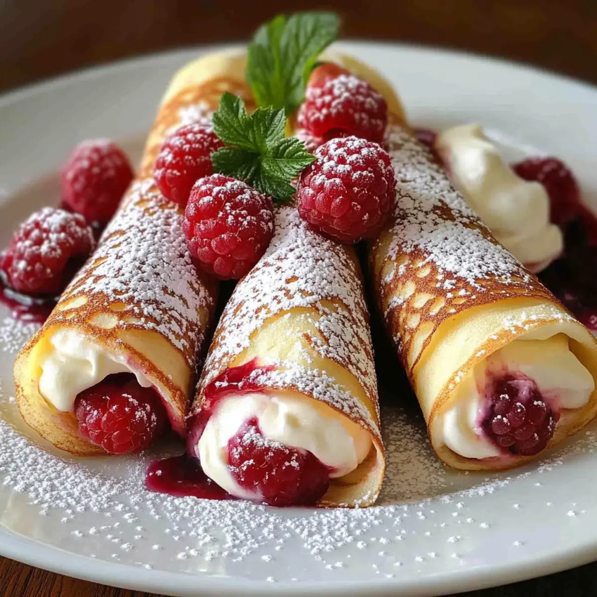 As I stood in the kitchen, the enticing aroma of fresh raspberries mixed with the dreamy scent of vanilla wafted through the air, instantly transporting me to a quaint French café. This is the magical moment I experienced when I first made Raspberry Vanilla Cream Crepes. They are not just delicious; they are a beautiful way to elevate any brunch or dessert table. With their delicate layers and rich, creamy filling, these crepes are surprisingly easy to prepare, making them perfect for home chefs eager to impress without the fuss. Ideal for special occasions or a sweet indulgence after a long day, you’ll love how quickly they come together. Ready to create a delightful dessert that’s sure to wow your friends and family? Let’s dive in! Why Are These Crepes So Irresistible? Delightful Presentation: These Raspberry Vanilla Cream Crepes transform your brunch table into a stunning centerpiece that looks as good as it tastes. Easy to Make: With straightforward steps, this recipe lets you whip up a gourmet treat without complicated techniques. Flavor Explosion: The combination of tart raspberries and rich vanilla cream creates a mouthwatering contrast that’s simply addictive. Versatile Filler: Not a fan of raspberries? Swap in your favorite fruits like strawberries or blueberries for a delicious twist! Quick to Prepare: Perfect for busy mornings or spontaneous gatherings, you can enjoy a delightful dessert in under an hour. Crowd-Pleaser: Impress your guests with a dessert that offers a taste of France without needing any special skills—ideal for brunches or after-dinner treats! Raspberry Vanilla Cream Crepes Ingredients For the Crepes All-Purpose Flour – Provides structure to the crepes; for a gluten-free option, try using gluten-free flour. Large Eggs – Essential for binding and texture; do not substitute as eggs are key to this recipe. Milk – Adds moisture and tenderness; dairy alternatives like almond or oat milk work well for a lactose-free version. Melted Butter – Enhances flavor and pliability of the crepes; for a dairy-free substitute, consider using coconut oil. For the Vanilla Cream Filling Heavy Cream – Creates a rich, smooth filling; Greek yogurt can be used for a lighter alternative. Mascarpone or Cream Cheese – Provides a creamy structure to the filling; whipped cream cheese also makes a great substitute. Vanilla Extract – Infuses flavor into the cream; try using fresh vanilla bean or vanilla powder for an extra flavor boost. Powdered Sugar (optional) – Sweetens the cream filling; omit for a less sweet experience. For the Toppings Fresh Raspberries – Add tartness and natural sweetness; other berries like strawberries or blueberries can replace them. Powdered Sugar for Dusting – Offers a sweet finishing touch; you can skip this for a less sugary presentation. Optional Flavor Boosters (Lemon Zest, Raspberry Liqueur) – Enhance overall flavor; omit if you prefer a simpler taste. These Raspberry Vanilla Cream Crepes promise to be a hit at any gathering, so gather your ingredients and enjoy the process of creating this delightful treat! Step‑by‑Step Instructions for Raspberry Vanilla Cream Crepes Step 1: Prep the Batter In a large mixing bowl, whisk together 1 cup of all-purpose flour, 2 large eggs, 2 cups of milk, and 2 tablespoons of melted butter until smooth. Ensure no lumps remain, and then let the batter rest for at least 30 minutes at room temperature; this crucial rest improves the texture of your Raspberry Vanilla Cream Crepes, making them light and delicate. Step 2: Cook the Crepes Heat a non-stick crepe pan or skillet over medium heat and lightly grease it with butter. Pour about 1/4 cup of the batter into the pan, tilting to evenly coat the bottom. Cook for 1-2 minutes until the edges start to lift and the surface looks set and lightly golden, then flip the crepe and cook for another 30-60 seconds. Stack the cooked crepes on a plate, covering them with a towel to keep warm. Step 3: Make the Vanilla Cream Filling In a mixing bowl, combine 1 cup of heavy cream, 1 cup of mascarpone (or cream cheese), 1 teaspoon of vanilla extract, and optional powdered sugar to taste. Using a hand mixer, whip the mixture until soft peaks form, being careful not to overwhip. This creamy filling will elevate each bite of your Raspberry Vanilla Cream Crepes, creating a rich and indulgent dessert. Step 4: Assemble the Crepes Take one cooked crepe and place it on a clean plate. Spoon or pipe a generous dollop of the vanilla cream filling onto one half of the crepe, topping it with a handful of fresh raspberries. Fold the crepe in half and then in half again to create a triangle, or roll it up for a neat presentation. Repeat the process with the remaining crepes. Step 5: Finishing Touches To serve your delightful Raspberry Vanilla Cream Crepes, dust them lightly with powdered sugar and, if desired, drizzle with raspberry coulis for extra flavor. Garnish with fresh mint leaves for a pop of color. Enjoy immediately to savor the freshness of the raspberries and the creaminess of the filling! What to Serve with Raspberry Vanilla Cream Crepes The perfect meal isn’t complete without delightful companions that enhance flavors and create a memorable dining experience. Fresh Fruit Salad: A mix of seasonal berries adds a refreshing burst of flavor that complements the sweet crepes beautifully while balancing their richness. Whipped Cream: Light and airy, a dollop of whipped cream enhances the overall sweetness and pairs wonderfully with the creamy filling. Coffee or Espresso: The deep, robust flavors of coffee contrast beautifully with the lightness of the crepes, making it an ideal drink for brunch. Chocolate Sauce: Drizzling a rich chocolate sauce over the crepes adds an indulgent touch that chocolate lovers can’t resist. Mimosa: This classic brunch cocktail, with its bright citrus notes, provides a sparkling counterpoint to the sweetness of the crepes. Mint Chutney: F