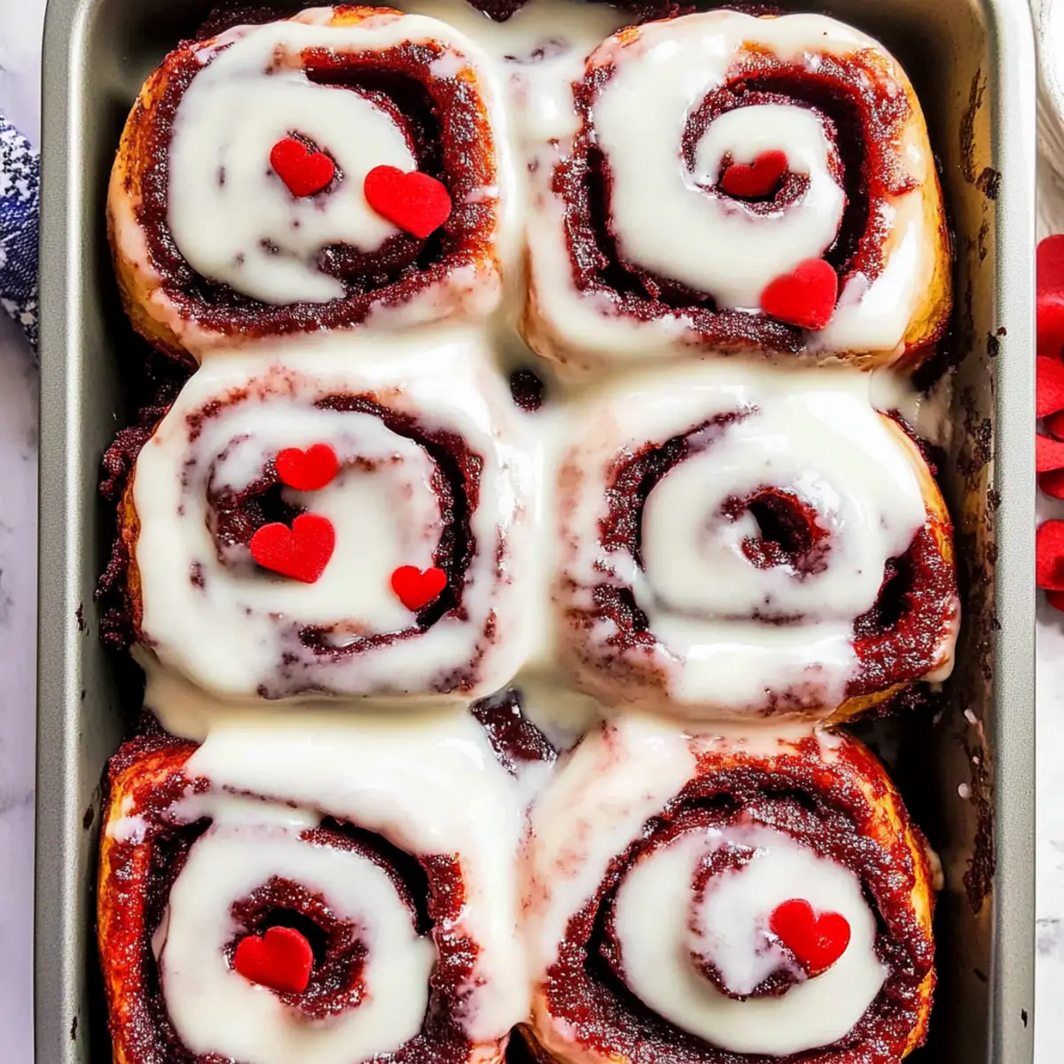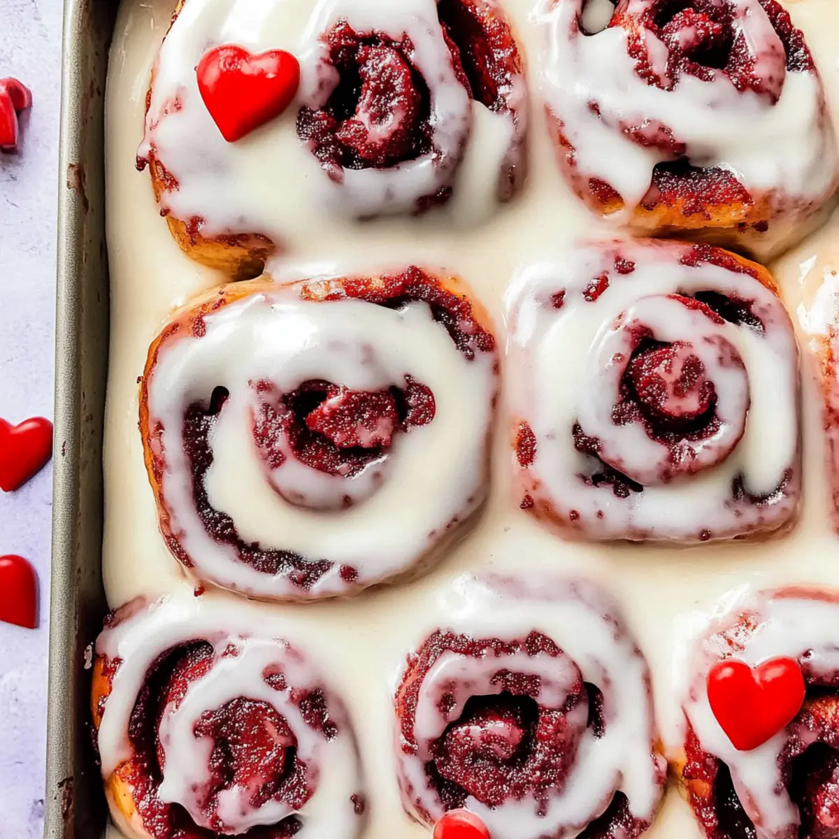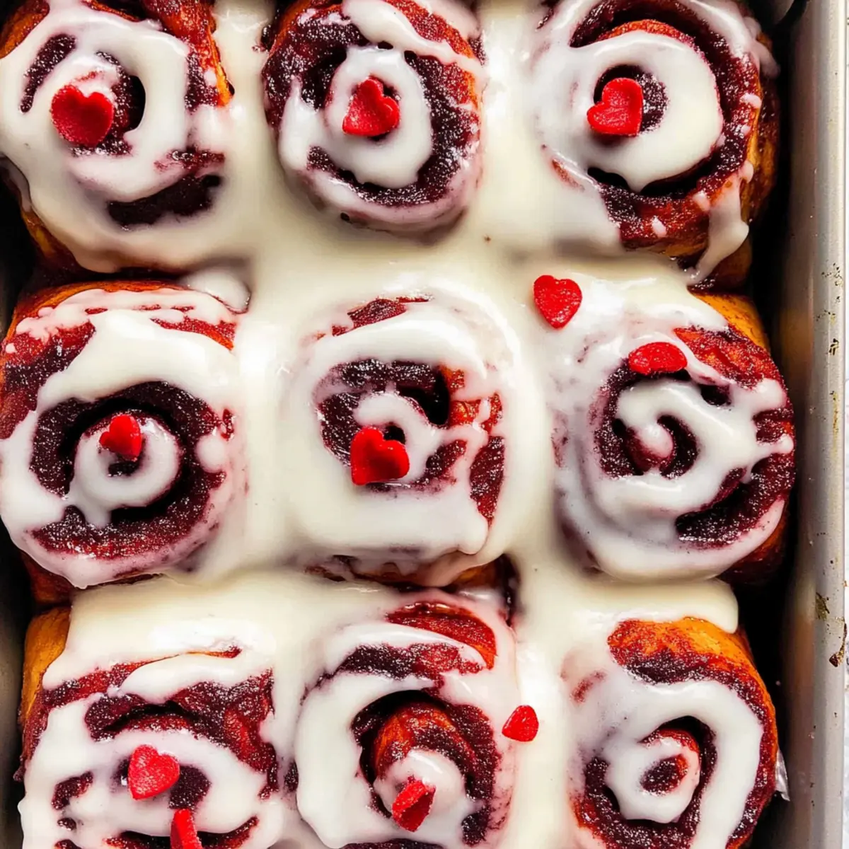 As the gentle aroma of freshly baked goods wafts through the air, I can’t help but smile at the thought of these stunning Red Velvet Cinnamon Rolls. With their warm, inviting color and rich chocolate flavor, each soft roll envelops your senses, turning an ordinary breakfast into a festive celebration. Perfect for special occasions like Valentine’s Day or a cozy Christmas morning, this recipe combines a touch of whimsy with comfort food flair. And the best part? They’re quick to prepare, making them a crowd-pleaser for any gathering. Ready to bring a festive twist to your mornings? Let’s dive into the delightful world of these Red Velvet Cinnamon Rolls! Why Should You Bake These Rolls? Festive Flare: These Red Velvet Cinnamon Rolls are an eye-catching delight, perfect for celebrations like Valentine’s Day or Christmas. Decadent Flavor: Indulge in the rich combination of chocolate and cinnamon, enhanced by a creamy frosting that elevates every bite. Easy to Make: Simple steps guarantee success, whether you’re a novice in the kitchen or a seasoned baker. Crowd-Pleasing: Ideal for sharing, they’re sure to impress guests and family alike. Perfect for Meal Prep: Make ahead and simply reheat, perfect for busy mornings when you crave something special. Transform your breakfast with these delightful rolls, and if you love a unique twist, consider trying our Soft Crescent Rolls for another delicious option! Red Velvet Cinnamon Rolls Ingredients • Get ready to bake something special! For the Dough Milk – Activates yeast, aiding in dough rise; use warmed milk at about 110°F for best results. Active dry yeast – A key leavening agent; ensure it’s fresh for optimal activation. Large eggs – Provides structure and richness; use room temperature eggs for better mixing. Red gel food dye – Enhances the color of the dough; substitute with another brand if preferred. All-purpose flour – The main structure-building ingredient; spoon and level for accuracy, or weigh to prevent dryness. Unsweetened cocoa powder – Adds chocolate flavor; can be replaced with Dutch-processed cocoa for a different taste. Salt – Balances sweetness while strengthening gluten; essential for flavor. White granulated sugar – Sweetens the dough; can substitute with granulated cane sugar. Unsalted butter – Adds richness and flavor; make sure it’s at room temperature for easy incorporation. For the Filling Brown sugar – Offers sweetness and moisture; light or dark can be used interchangeably. Ground cinnamon – Provides warm spice to the filling; do not substitute as it alters the flavor profile. Heavy cream – Adds moisture during baking, creating gooey rolls; you can use milk if necessary. For the Cream Cheese Icing Cream cheese – Forms the base of the icing and gives a rich, tangy flavor; make sure it’s at room temperature for smooth mixing. Powdered sugar – Sweetens and thickens the icing; sift for a smooth consistency. Vanilla extract – Enhances overall flavor; opt for pure extract for the best results. Milk (for icing) – Adjusts the consistency; any milk type can be used. Prepare to whisk your family and friends away with the scrumptious taste of these Red Velvet Cinnamon Rolls! Step‑by‑Step Instructions for Red Velvet Cinnamon Rolls Step 1: Prepare the Dough Start by warming 1 cup of milk to about 110°F in a small saucepan. Once warmed, dissolve 2 teaspoons of active dry yeast into the milk, whisk gently, and let it sit for 10 minutes. You’ll know it’s ready when it becomes frothy and bubbly. This step is essential for creating fluffy Red Velvet Cinnamon Rolls. Step 2: Mix Dry Ingredients In a large mixing bowl, combine 3 ½ cups of all-purpose flour, 2 tablespoons of unsweetened cocoa powder, ½ cup of white granulated sugar, and 1 teaspoon of salt. Use a whisk to blend these dry ingredients thoroughly. Next, incorporate ½ cup of room temperature unsalted butter by mixing until the mixture resembles small pea-sized crumbs. Step 3: Combine Wet and Dry Add 2 large eggs, the frothy yeast mixture, and 1 tablespoon of red gel food dye to the dry ingredients. Mix everything together until a soft dough forms. Transfer the dough to a lightly floured surface and knead for about 5 minutes until it’s smooth and elastic. This kneading helps develop the gluten, ensuring your Red Velvet Cinnamon Rolls are fluffy. Step 4: First Rise Place your kneaded dough in a greased bowl, cover it with a clean kitchen towel, and let it rise in a warm spot for about 1 hour. It should double in size, becoming puffy and airy. This rise is crucial for the texture of your rolls, so be patient! Step 5: Prepare Filling While the dough rises, prepare the filling. In a mixing bowl, combine ½ cup of softened unsalted butter, ⅓ cup of brown sugar, and 1 tablespoon of ground cinnamon. Use a spatula to mix until the ingredients form a smooth paste. This aromatic filling is what makes your Red Velvet Cinnamon Rolls irresistibly delicious. Step 6: Roll Out Dough Once your dough has risen, punch it down gently to release the air. Transfer it to a floured surface and roll it out into a rectangle, about ¼ inch thick. Carefully spread the filling mixture evenly across the entire surface, making sure to reach the edges for maximum flavor. Step 7: Shape Rolls Starting from the short end of the rectangle, tightly roll the dough into a log shape. Once rolled, use a sharp knife to slice the log into 12 equal pieces. Placing the rolls in a greased baking pan should create a lovely display and allow them to rise beautifully. Step 8: Second Rise Cover the rolls in the baking pan with a kitchen towel again and let them rise for an additional 20 minutes. This shorter rise is enough to puff them up slightly and get them ready for baking. You’ll notice they’ll become fluffy and soft. Step 9: Bake Preheat your oven to 375°F while the rolls are rising. Once ready, pour ½ cup of heavy cream evenly around the rolls in th