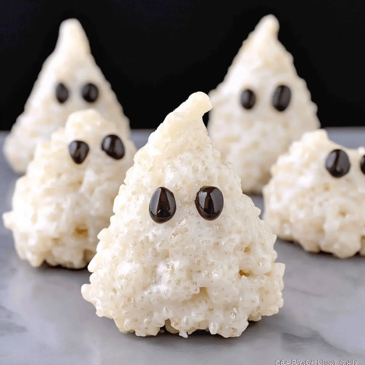 As the autumn leaves begin to fall and the air gets a crisp chill, I can’t help but feel the excitement of Halloween creeping in. This time of year is all about fun, fright, and, of course, fabulous treats! Enter my Halloween Rice Krispie Treat Ghosts—these adorable little delights are not just a sweet nod to the spooky season; they’re also a cinch to whip up with only five ingredients and a prep time of just 30 minutes! Perfect for both kids and adults, this gluten-free recipe satisfies those sweet cravings while adding a playful touch to your Halloween festivities. Plus, they make great party favors or whimsical decor for any gathering. Curious how to create these charming ghosts? Let’s dive in! Why Make Rice Krispie Treat Ghosts? Simplicity is key! With just five ingredients, you can create these festive treats in under 30 minutes, making them a perfect choice for last-minute Halloween gatherings. Kid-Friendly and fun, these adorable ghosts are sure to delight children and adults alike. Versatile options allow for creative decorations and flavor variations. Want something different? Try mixing in cocoa powder for a chocolate twist or swap cereals for a fruity flavor! Plus, they’re gluten-free, so everyone can enjoy them. Perfect for wrapping as party favors or simply serving on a spooky platter, these Rice Krispie Treat Ghosts will steal the show this Halloween! Rice Krispie Treat Ghosts Ingredients Get ready to create these spooky delights with just five simple ingredients! For the Ghosts Dark Cocoa Candy Melts – Adds a delicious flavor and serves as the eyes of our ghosts; chocolate chips work as a fine substitute. Rice Krispies Cereal – Provides the essential crunch and structure for the treats; no substitutions are necessary for this classic base. Salted Butter – Ensures a rich flavor; be sure to stick with salted for the best taste balance. Mini Marshmallows – Crucial for binding everything together with sweetness; for a vegan twist, feel free to use vegan marshmallows instead. White Candy Melts (or White Chocolate Chips) – Offers that signature ghostly color and helps maintain the treat’s shape; yogurt-covered raisins can be used as a healthier decorative option. Get ready to impress your guests with these adorable, gluten-free Rice Krispie Treat Ghosts! Step‑by‑Step Instructions for Halloween Rice Krispie Treat Ghosts Step 1: Prepare Chocolate Eyes Begin by melting the dark cocoa candy melts in a microwave-safe bowl. Heat them in 30-second bursts, stirring after each cycle, until completely smooth—this should take about 1–2 minutes. Once melted, use a piping bag or a zip-top bag with a small corner snipped to pipe small teardrop shapes onto parchment paper. Place the sheet in the freezer for 10 minutes until the chocolate hardens. Step 2: Cereal Mixture In a large skillet or saucepan, melt 4 tablespoons of salted butter over low heat. Add the mini marshmallows and white chocolate chips, stirring gently until about 75% melted—this should take 3–4 minutes. Once nearly melted, increase your stirring speed to fully combine the mixture into a gooey, cohesive blend. The marshmallows should be soft and fluffy, and the texture should be sticky yet smooth. Step 3: Combine with Cereal Remove the skillet from heat and pour the melted marshmallow mixture over 6 cups of Rice Krispies cereal placed in a greased mixing bowl. Using a spatula, carefully fold the cereal into the marshmallow mixture until every Rice Krispie is evenly coated. This process typically takes about 2 minutes. The mixture should feel sticky and well-combined but not too warm to handle. Step 4: Shape the Ghosts Allow the Rice Krispie mixture to cool for about 5 minutes, as this will make it easier to shape. Once cool enough to handle, divide the mixture into 12 equal portions. Roll each portion into a ball and then gently shape it into a cone to form the ghost’s body. The ghosts should be slightly larger at the bottom and tapering towards the top. Step 5: Decorate the Ghosts With the ghost bodies formed, take your chocolate eyes from the freezer. Firmly press two chocolate teardrops onto each ghost’s face. If necessary, use a dab of melted candy to secure the eyes, ensuring they stay in place. This detailing will be crucial for bringing these spooky Rice Krispie Treat Ghosts to life! Step 6: Set Lastly, let your adorable ghosts sit at room temperature for about 60 minutes to set. This will allow the mixture to firm up, so they hold their shape beautifully. After they have cooled and set, they are ready to be served. Enjoy or package them as delightful Halloween treats for family and friends! Expert Tips for Rice Krispie Treat Ghosts Stay Low and Slow: Use low heat while melting to prevent the marshmallows from caramelizing. This keeps your Rice Krispie Treat Ghosts chewy and delicious. Cool Before Shaping: Allow the marshmallow mixture to cool slightly before handling. This helps maintain the shape of the ghosts while you roll and taper them. Pipe for Precision: For neat decoration, pipe the chocolate eyes separately rather than placing them directly onto the ghosts. This adds charm and ensures a playful look! Mix Well: Stir the cereal quickly after adding it to the marshmallow mixture to coat each Rice Krispie evenly. Uneven coating can lead to inconsistency in texture. Set Properly: Let the treats set at room temperature for about an hour. This is crucial for firming up, ensuring they hold shape and are easy to handle for serving or packing. What to Serve with Halloween Rice Krispie Treat Ghosts These delightful treats are not just fun to make; they also open the door for a spooktacular Halloween spread that engages all the senses! Pumpkin Spice Hot Chocolate: This warm drink infuses cozy spices that complement the sweet marshmallow ghosts while keeping everyone toasty during chilly Halloween nights. Spooky Fruit Skewers: Fresh fruit, like banana ghosts and grape “eyeballs,” ad