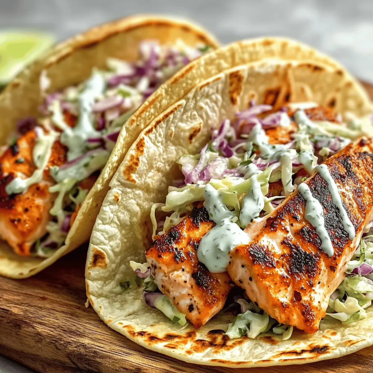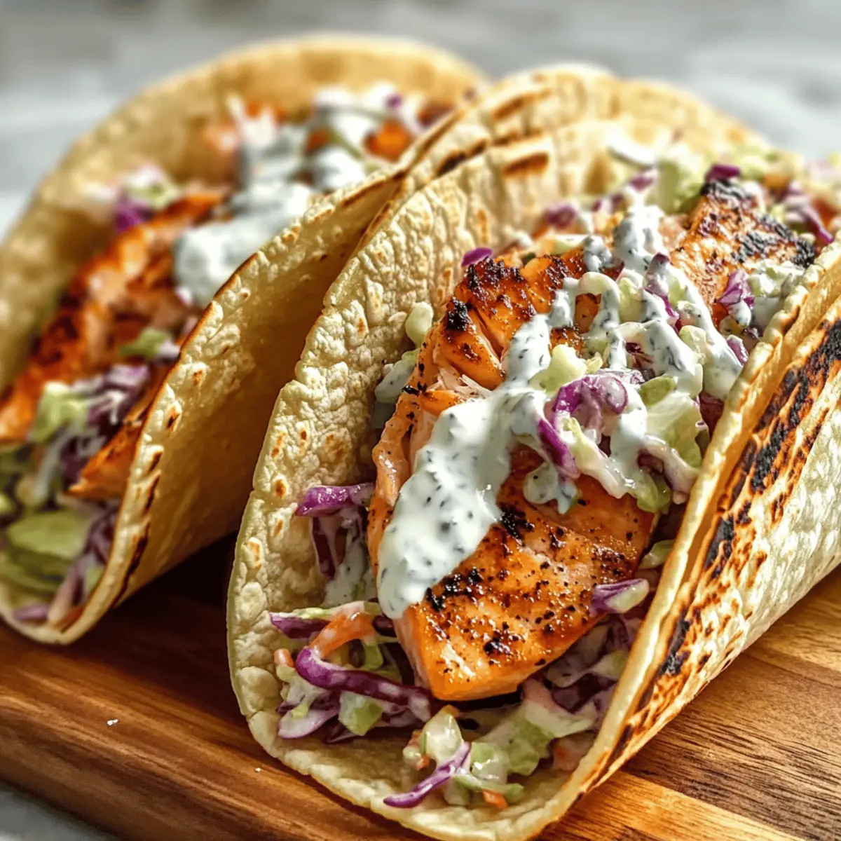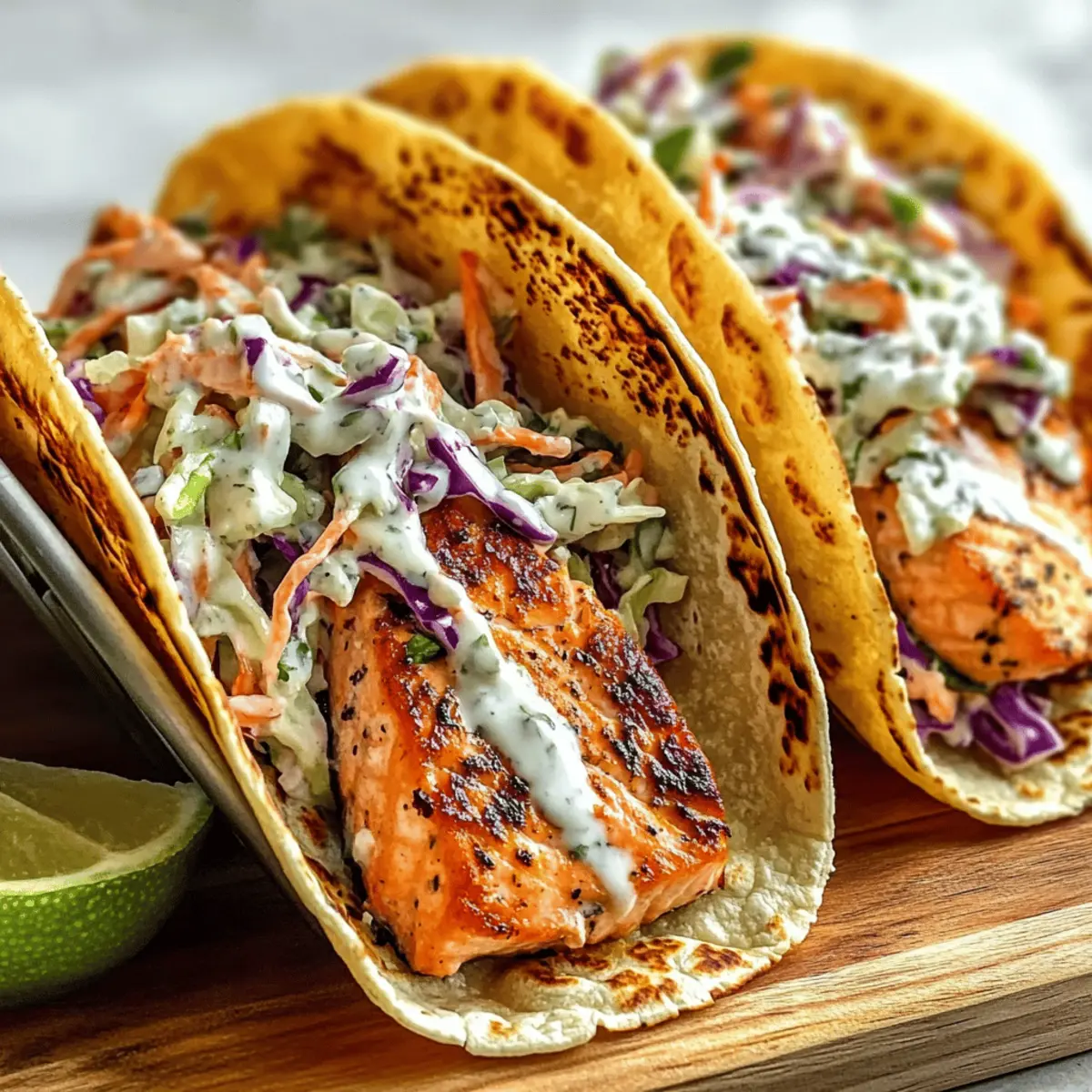 “Picture this: it’s a busy weeknight, and you want something deliciously satisfying but quick to prepare before the kids crowd around the table. Enter these Air Fryer Salmon Tacos with Slaw, a delightful blend of flaky salmon and crunchy vegetables wrapped in warm corn tortillas. This recipe gets dinner on the table in under 30 minutes, perfect for those hectic evenings. The best part? Each person can customize their taco just the way they like it, accommodating everyone’s tastes and making mealtime a joyful experience. Whether you’re a seasoned home chef or just looking to elevate your weeknight dinners, these tacos are a must-try. Ready to make your family’s new favorite meal?” Why are these tacos a weeknight winner? Quick and Easy: Ready in under 30 minutes, these tacos are perfect for those busy weeknights when you want something delicious without the hassle. Customizable Flavor: Each family member can add their favorite toppings, making every taco a personal delight. Swap in ingredients like Chicken Enchiladas Sour or One Pan Parmesan for different flavor adventures! Healthy Ingredients: Featuring flaky salmon and crunchy slaw, these tacos are not only tasty but packed with nutrients. Crowd-Pleasing Appeal: With satisfying flavors and textures, these tacos are sure to impress everyone around the dinner table. Versatile Options: Want to keep it low-carb? Try lettuce wraps instead of tortillas! Salmon Tacos with Slaw Ingredients For the Salmon Salmon Fillets – The star of the show, offering rich, flaky flavor; opt for skinless for ease. Olive Oil – Keeps the salmon moist while helping spices stick; avocado oil works too for a unique taste. Chili Powder – Adds a delightful kick; swap with taco seasoning for a different flavor profile. Garlic Powder – Boosts overall flavor effortlessly; fresh garlic is a great alternative, just adjust the quantity. Smoked Paprika – Infuses a lovely smoky note; regular paprika can suffice but will vary the flavor. Salt – Essential for seasoning; adjust per taste or try sea salt for a delightful texture. For the Slaw Shredded Cabbage – Forms the crunchy base for your slaw; pre-packaged slaw mix makes for an easy convenience. Fresh Cilantro – Adds a burst of freshness; omit if not a fan, and parsley can step in nicely. Plain Greek Yogurt – Acts as a creamy dressing; substitute with sour cream or a vegan option for a dairy-free variant. Lime Juice – Brightens the entire dish; fresh lime juice is best, but bottled is handy in a pinch. For Assembly Corn Tortillas – Perfect for wrapping around all your delicious fillings; swap for flour tortillas if you prefer, but the flavor will change. These delectable salmon tacos with slaw promise a quick and satisfying dinner experience for you and your loved ones! Step‑by‑Step Instructions for Air Fryer Salmon Tacos with Crunchy Slaw Step 1: Preheat the Air Fryer Begin by preheating your air fryer to 400°F (200°C) for about 5 minutes, ensuring it’s hot enough for crisp cooking. While the air fryer heats, pat the skinless salmon fillets dry with paper towels to remove excess moisture, which helps the seasoning stick better. Step 2: Prepare the Seasoning In a small bowl, combine olive oil, chili powder, garlic powder, smoked paprika, and salt. Mix until you have a smooth paste. Brush this flavorful mixture generously over both sides of the salmon fillets, ensuring they’re well-coated for maximum flavor in your salmon tacos with slaw. Step 3: Cook the Salmon Place the seasoned salmon fillets in the air fryer basket, ensuring they aren’t crowded. Cook for 8-10 minutes, flipping halfway through, until the salmon is flaky and cooked through—the internal temperature should reach 145°F (63°C). Once done, remove them carefully and let them rest briefly to lock in those delicious flavors. Step 4: Make the Slaw While the salmon cooks, it’s time to prepare your crunchy slaw. In a medium bowl, toss together the shredded cabbage, chopped cilantro, Greek yogurt, and fresh lime juice. Mix until well-combined; the creamy dressing will help balance the richness of the salmon in your tacos. Step 5: Warm the Tortillas Take your corn tortillas and warm them before assembling. You can heat them in a skillet over medium heat for about 30 seconds per side or pop them in the microwave for about 15-20 seconds until they are soft and pliable, perfect for wrapping around your tasty taco fillings. Step 6: Assemble the Tacos With the salmon cooled slightly, use a fork to flake it into large pieces. Take a warmed tortilla and fill it with the flaky salmon, adding a generous scoop of the vibrant slaw on top. Repeat this process for each taco, ensuring everyone gets a delicious bite, ready to serve immediately for the best experience. Expert Tips for Salmon Tacos with Slaw Dry the Salmon: Pat the salmon fillets dry before seasoning; this ensures the spices adhere better for maximum flavor in your salmon tacos with slaw. Avoid Overcrowding: Space out the salmon fillets in the air fryer for even cooking; overcrowding can lead to unevenly cooked fish. Adjust Garlic Levels: If using fresh garlic, sauté it briefly before mixing into the slaw to mellow its strong flavor and enhance sweetness. Taco Assembly Timing: Assemble your tacos just before serving. This keeps the tortillas from getting soggy and maintains that perfect crunch. Customization is Key: Encourage family members to personalize their tacos with additional toppings like avocado, diced tomatoes, or even mango for a sweet twist! Salmon Tacos with Slaw Variations Feel free to add your personal touch to these delicious tacos for an even more vibrant dining experience! Dairy-Free: Substitute Greek yogurt with a dairy-free yogurt or avocado for a creamy texture without dairy. This keeps all the flavors intact. Extra Crunch: Add crushed tortilla chips or pumpkin seeds to the slaw for a delightful crunch that elevates each bite. It’s a fun way to a