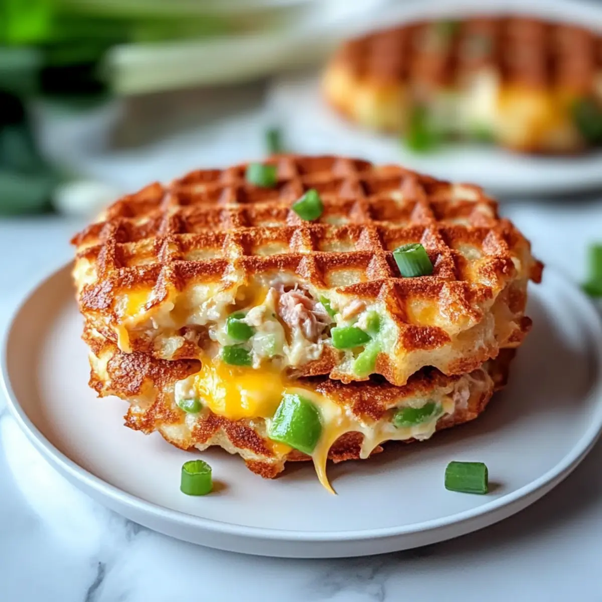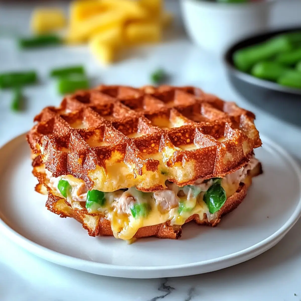 “Crunch. Crunch. Mmm!” was all I could muster between bites of my freshly made Savory Tuna Melt Chaffle. If you’ve ever found yourself tired of traditional sandwiches or reaching for something less satisfying, let me introduce you to this delightful twist on a classic. These crispy chaffles combine creamy tuna salad with melted cheese in a unique, waffle-shaped treat that’s not just low-carb; it’s also gluten-free and incredibly simple to whip up! With quick prep time and a texture that will have everyone coming back for more, these tuna melt chaffles are perfect for a speedy lunch or dinner. Curiosity piqued? Let’s dive into this delicious recipe! Why is this tuna melt chaffle special? Unique Textures: The crispy exterior paired with a tender, cheesy interior makes every bite a delightful experience. Quick & Easy: Perfect for those busy days, this recipe comes together in minutes, giving you a delicious meal without the fuss. Low-Carb Delight: With a focus on low-carb and gluten-free ingredients, you can satisfy your cravings without the guilt. Versatile Options: Feel free to swap in canned chicken or mix in your favorite veggies. Why not add a spicy touch with pepper jack cheese? Crowd-Pleasing Flavor: It’s a guaranteed hit at your dinner table, providing that comforting savory taste everyone loves. For even more delicious variations, check out my Chaffle Egg Cheese and Egg Cheese Toasts. You’ll find plenty of ways to please everyone! Savory Tuna Melt Chaffle Ingredients For the Chaffle Base Egg – A large egg binds everything together and provides the perfect structure. Tuna (solid white albacore or chunk light) – The hearty protein source; choose tuna packed without water or oil to avoid sogginess. Cheese – Shredded cheddar, mozzarella, or your favorite cheese adds richness and helps form the chaffle structure. Salt – Enhances all the flavors; feel free to adjust to suit your taste. Optional Flavor Boosters Chopped herbs (like dill) – Fresh herbs add a pop of flavor and freshness. Garlic powder – Adds a savory kick to elevate your chaffle. These simple yet satisfying Savory Tuna Melt Chaffle ingredients will surely make your meal a delightful experience! Step‑by‑Step Instructions for Savory Tuna Melt Chaffle Step 1: Preheat the Waffle Maker Begin by preheating your mini waffle maker to ensure a crispy finish for your Savory Tuna Melt Chaffle. Allow it to heat up for about 5 minutes, shown by a steady light or temperature indicator. This initial step is crucial in achieving the perfect golden browning and texture that makes each chaffle irresistible. Step 2: Whisk the Egg In a small mixing bowl, crack open a large egg and whisk it thoroughly until the mixture is completely combined. This should take about 1 minute; you want the egg to become a smooth, frothy liquid. The egg will act as a binding agent, giving your tuna melt chaffle its perfect structure, so ensure it’s well mixed. Step 3: Combine the Ingredients Next, add the drained tuna, shredded cheese, and a pinch of salt to the whisked egg. Stir until all ingredients are evenly combined, creating a colorful, cohesive mixture. This process should take around 2 minutes; visual cues include the tuna and cheese evenly distributed throughout the egg, ready to fill your chaffle. Step 4: Enhance with Extra Flavor (Optional) For an extra flavor boost in your Savory Tuna Melt Chaffle, mix in any optional ingredients like chopped herbs or garlic powder. Stir well to ensure these flavors meld into the tuna mixture. This step is entirely personal, so feel free to experiment for your desired taste, allowing about 1 minute for the flavors to combine. Step 5: Prepare the Waffle Maker Before adding the mixture, sprinkle a teaspoon of shredded cheese directly onto the preheated waffle maker’s surface. This helps create a crispy base layer for your chaffle, ensuring a delicious crunch when you bite in. It will take only a moment to prepare, so be ready for the next step! Step 6: Cook the First Chaffle Spoon half of the tuna mixture onto the cheese-coated surface of the waffle maker. Close the lid gently and cook for 4 to 5 minutes, or until the chaffle turns a beautiful golden brown. Keep an eye out for steam reduction, which is a good indicator that your chaffle is cooking perfectly. Step 7: Remove and Repeat Once the first chaffle is cooked, carefully remove it from the waffle maker, using a fork if needed to avoid burning your fingers. Repeat the process with the remaining tuna mixture to create your second chaffle. Cooking the second batch should take about the same time, resulting in yet another crispy delight. Step 8: Cool and Serve After cooking, allow the chaffles to cool for about 1 to 2 minutes. This brief resting period helps them firm up slightly, enhancing the texture. Once cooled, serve your Savory Tuna Melt Chaffles warm, perhaps with a side of fresh salad or your favorite dipping sauce for an extra touch. What to Serve with Savory Tuna Melt Chaffle Create a meal that’s both satisfying and deliciously balanced with complimentary flavors and textures. Mixed Green Salad: A refreshing salad adds a crisp, light contrast to the rich chaffles and enhances overall healthiness. Dill Pickle Spears: The tangy crunch of pickles cuts through the creamy tuna and cheese, making each bite more exciting. They’re a match made in heaven! Light Coleslaw: Creamy coleslaw brings a slight sweetness and crunchy texture, creating a perfect balance to the savory melt. Tomato Salad: Juicy tomatoes drizzled with olive oil and balsamic vinegar bring a vibrant freshness to the dish, brightening the meal beautifully. Sliced Avocado: The creamy richness of avocado complements the cheesy chaffle, providing a lush bite that pairs very well with the dish. Sparkling Water with Lemon: A refreshing drink elevates the meal experience, cleansing your palate between bites with its citrusy zing. Chocolate Mousse: For dessert, indulge 