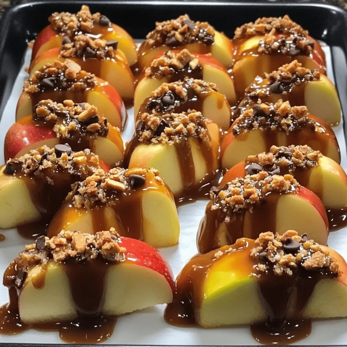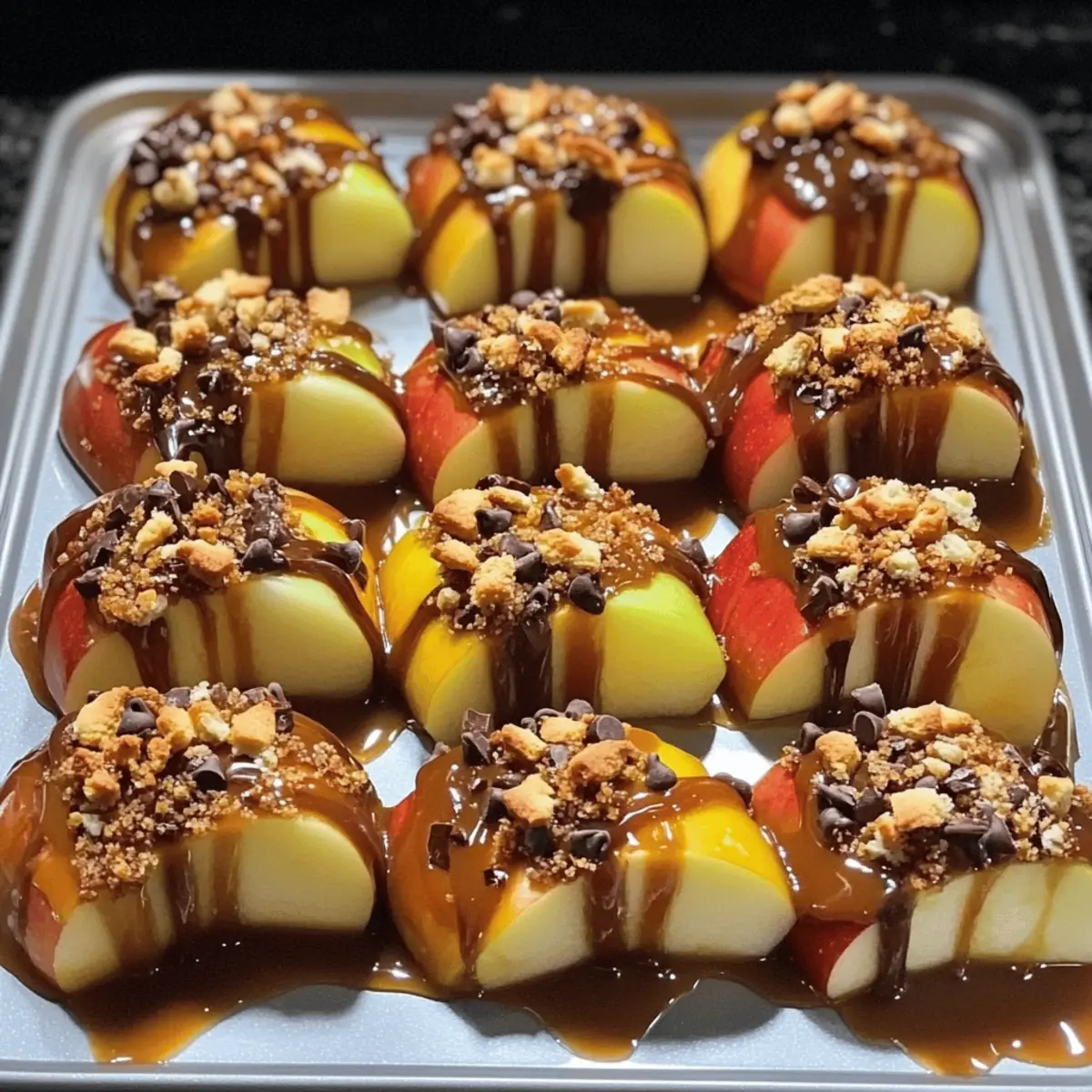 • Layer Wisely: Distribute the graham cracker crumbs, nuts, and chocolate chips evenly across the apples to ensure every bite of your Sheet Pan Caramel Apples is satisfying.