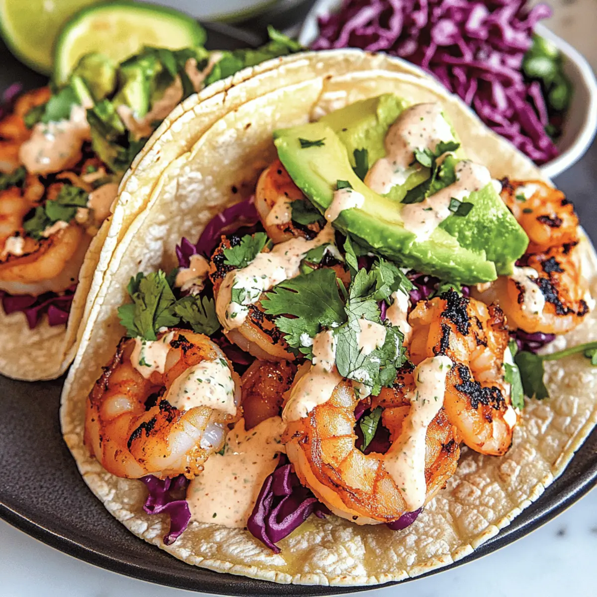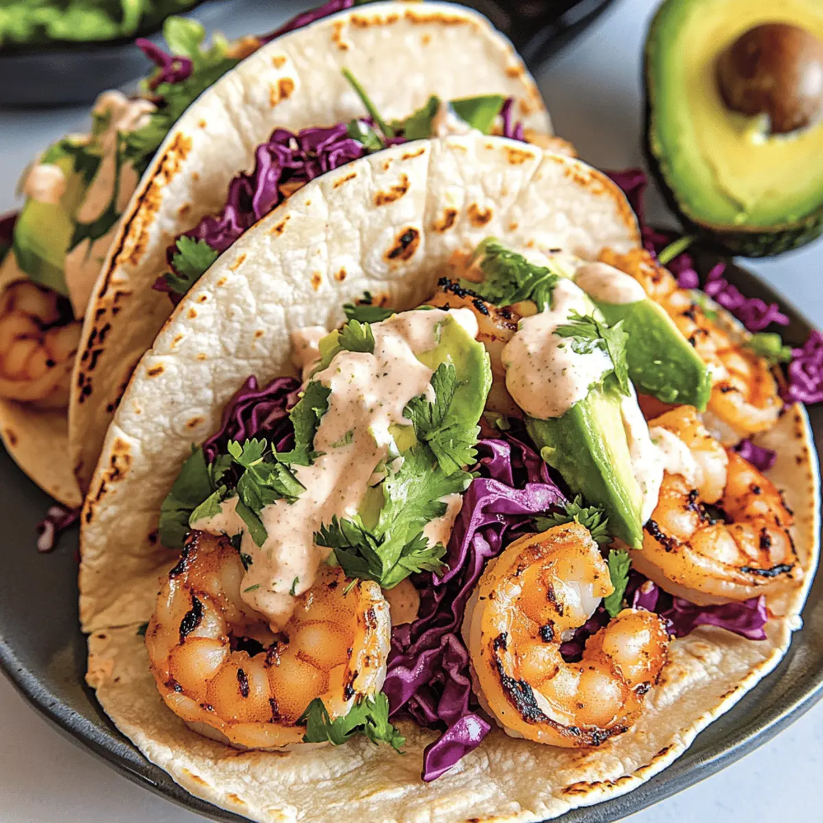“How can something this simple become my absolute go-to for taco night?” I sighed in delight, staring at a plate piled high with Quick and Flavorful Shrimp Tacos. These mouthwatering creations are not just another meal; they embody the essence of homemade goodness. With perfectly pan-seared shrimp tucked into warm tortillas, each bite brings a delightful crunch from the cabbage and a creamy twist thanks to a zesty yogurt-lime sauce. What I love most is that they come together in under 30 minutes, making them an ideal choice for busy weeknights or laid-back get-togethers. Plus, they’re gluten-free, so everyone can dive right in. Are you ready to whip up a batch that’s sure to impress? Why You’ll Crave these Shrimp Tacos? Quick, Easy Preparation: These shrimp tacos can be on your table in under 30 minutes, making them perfect for hectic weeknights or spontaneous gatherings. Flavorful Explosion: A zesty yogurt-lime sauce combined with perfectly seasoned shrimp brings a burst of flavor in every bite. Texture Harmony: Experience the delightful crunch of fresh cabbage and creamy avocado paired with juicy shrimp—all wrapped in warm tortillas. Gluten-Free Delight: Enjoy a gluten-free option that doesn’t compromise on taste, catering to a variety of dietary needs. If you love delicious meals that don’t take hours to prepare, these tacos are a must-try! For more quick recipes, check out Garlic Butter Shrimp and Baked Chicken Tacos. Shrimp Tacos Ingredients • Get ready to create a flavorful feast! For the Sauce Plain Greek Yogurt – Provides creaminess and acts as a great base for the sauce; dairy-free yogurt works too. Fresh Lime Juice – Adds a bright, zesty kick; fresh limes yield the best flavor! Sriracha Sauce – Offers a spicy kick; adjust based on your heat preference! Garlic Powder – Delivers savory depth to the sauce; fresh minced garlic can be used for a different flavor twist. Smoked Paprika – Contributes a smoky richness; regular paprika can substitute if needed. For the Tacos Large Shrimp (peeled and deveined) – The star of the show; wild-caught shrimp are best for flavor. Olive Oil – Used for achieving the perfect sear on the shrimp; can substitute with avocado oil. Corn or Flour Tortillas – Acts as the taco base; opt for gluten-free tortillas to keep this dish gluten-free! Shredded Cabbage – Adds crunch and freshness; choose either red or green cabbage. Avocado – Brings creaminess and healthy fats; ripe avocados are the way to go! Fresh Cilantro – Offers an aromatic garnish; feel free to skip if you’re not a fan! Cotija Cheese – Crumbled atop for a tangy finish; feta is a good substitute or omit for dairy-free. Now you’re all set for a fantastic night of cooking delectable shrimp tacos! Step‑by‑Step Instructions for Shrimp Tacos Step 1: Make the Taco Sauce In a medium bowl, whisk together 1 cup of plain Greek yogurt, 2 tablespoons of fresh lime juice, 1 tablespoon of sriracha sauce, 1 teaspoon of garlic powder, and 1 teaspoon of smoked paprika. Adjust seasoning with salt, and if the sauce is too thick, add a splash of water to reach the desired consistency. Cover and refrigerate while you prepare the shrimp to allow the flavors to meld. Step 2: Prepare the Shrimp Pat 1 pound of large peeled and deveined shrimp dry with paper towels for better searing. In a bowl, season the shrimp with 1 teaspoon of smoked paprika, 1 teaspoon of garlic powder, 1 teaspoon of dried oregano, and a pinch of salt and pepper. Toss to coat the shrimp evenly with the seasonings, ensuring each piece is well-covered before cooking. Step 3: Cook the Shrimp Heat 2 tablespoons of olive oil in a large skillet over medium heat. Once hot, add the seasoned shrimp in a single layer, ensuring they’re not overcrowded. Sauté for approximately 2 minutes on each side, or until the shrimp turn pink and opaque. Remove the skillet from the heat, and cover it to keep the shrimp warm while you prepare the tortillas. Step 4: Warm the Tortillas In a separate dry skillet or microwave, warm your corn or flour tortillas until they are pliable and just lightly toasted, about 30 seconds per tortilla on each side. This enhances their flavor and texture, making them the ideal vessel for your shrimp tacos. Keep the tortillas wrapped in a clean kitchen towel to retain warmth until you’re ready to assemble. Step 5: Assemble Tacos On each warm tortilla, layer a generous helping of shredded cabbage, followed by several slices of creamy avocado, and top with the cooked shrimp. Drizzle the zesty yogurt-lime sauce over the fillings, allowing it to generously coat everything. For an extra burst of flavor and visual appeal, sprinkle fresh cilantro and crumbled Cotija cheese on top before serving your delightful shrimp tacos immediately. How to Store and Freeze Shrimp Tacos Fridge: Store leftover shrimp tacos in an airtight container in the fridge for up to 3 days. Keep components like tortillas, shrimp, and sauce separate to maintain texture. Freezer: It’s best to freeze shrimp separately. Place cooked shrimp in a freezer-safe bag for up to 3 months. Reheat gently in a skillet to avoid overcooking, and assemble tacos fresh. Reheating: Reheat shrimp in a skillet over medium heat for about 5 minutes, stirring occasionally, until heated through. Always keep tortillas warm for optimal texture when serving shrimp tacos. Ingredients Storage: Store sauces and toppings like avocado and cabbage separately in the fridge. Assemble tacos just before serving for the freshest experience. Expert Tips for Shrimp Tacos Perfectly Cooked Shrimp: Cook shrimp for only 2 minutes per side to keep them juicy and prevent a rubbery texture. Pat Dry for Searing: Ensure shrimp are patted dry with paper towels before seasoning to achieve that perfect sear. Warm Tortillas: Always warm your tortillas before assembling; this elevates flavor and ensures they’re pliable for easy folding. Flexible Sauce Texture: Adjust the sau