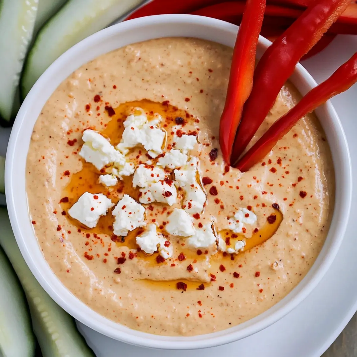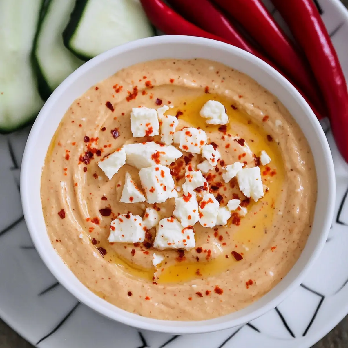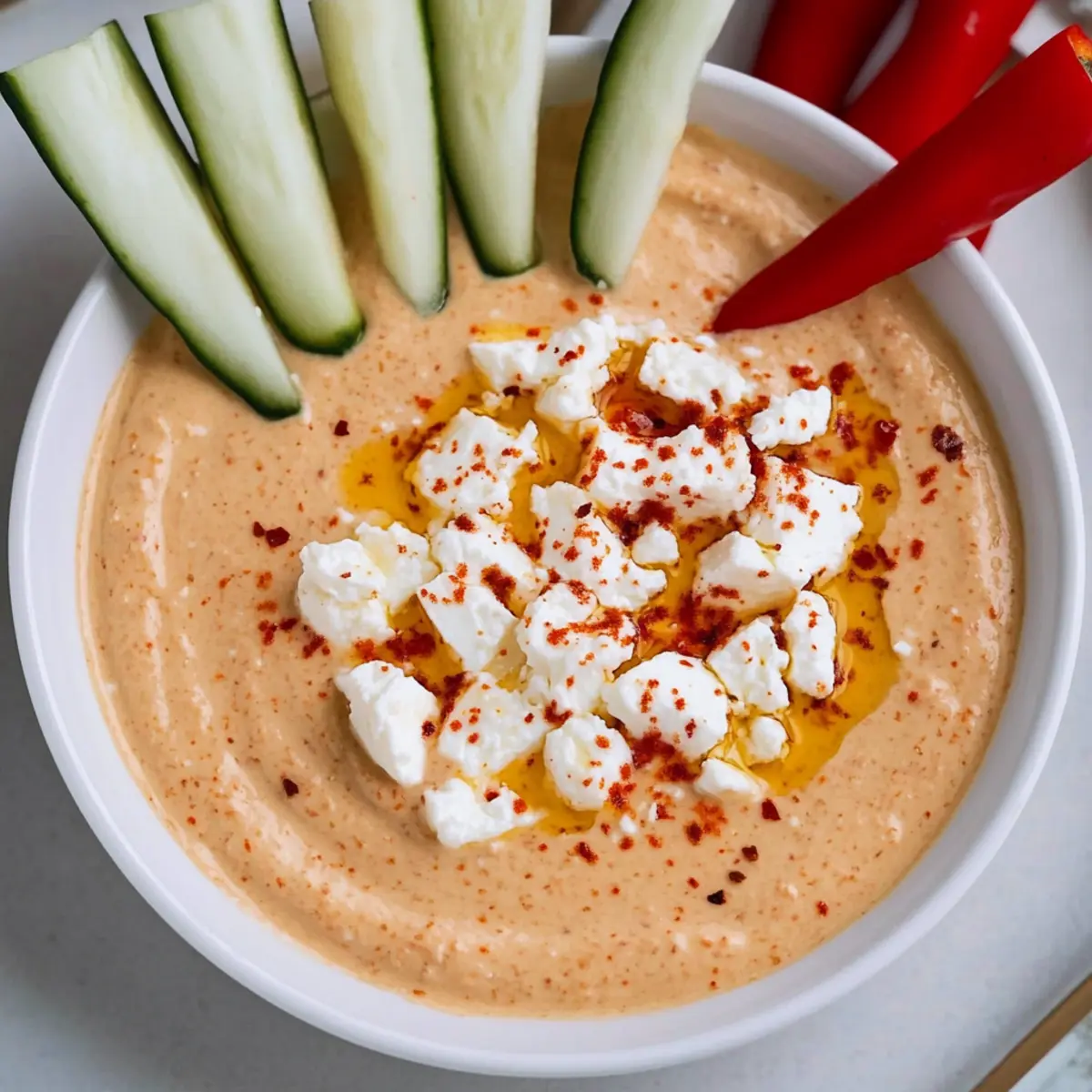 Have you ever tasted a dip so creamy and delicious it leaves you wondering how something so simple can elevate your gatherings? This Creamy Spicy Feta Dip, infused with roasted red peppers, is just that! In a mere 10 minutes, you can create this irresistible appetizer that is not only gluten-free but also vegetarian-friendly. With just five ingredients, it’s quick and easy to whip up and perfect for pairing with fresh veggies or pita bread. The combination of feta cheese and Greek yogurt creates a luscious texture that will have everyone coming back for more. Ready to impress your friends at your next get-together with this delightful dip? Let’s dive into the recipe! Why is this Spicy Feta Dip a Must-Try? Simplicity at its Best: With only five ingredients, this dip is incredibly easy to prepare, making it a go-to for spontaneous gatherings. Unforgettable Flavor: The blend of tangy feta and creamy Greek yogurt paired with roasted red peppers delivers a taste experience that is both rich and satisfying. Versatile Use: Perfect for charcuterie boards, mezze platters, or as a sandwich spread, this dip adapts to any occasion. Quick Preparation: In just 10 minutes, you can have a delicious appetizer ready to serve, saving you precious time without sacrificing flavor. Crowd-Pleasing: Whether you’re hosting a BBQ or a cozy gathering, this dip is guaranteed to be a hit, just like my Spicy Chicken Spaghetti or Honey Flatbread Pizza. Indulging in this creamy creation is a sure way to bring everyone together! Spicy Feta Dip Ingredients • Get ready to create perfection! For the Dip Roasted Red Peppers – Adds mild spice and vibrant color; feel free to use jarred or homemade for convenience. Feta Cheese – Provides a salty, tangy flavor and creamy texture; using block feta ensures easier blending for the smoothest Spicy Feta Dip. Plain Greek Yogurt – Contributes creaminess and tang; opt for whole milk yogurt for a richer taste. Granulated Sugar – Balances flavors and enhances sweetness; omit if you prefer a less sweet dip. Extra Virgin Olive Oil – Ensures a smooth, luscious dip while adding healthy fats and amplifying flavor. For Extra Heat (Optional) Red Pepper Flakes – Sprinkle in for a kick; adjust based on your spice preference to suit every palate. Step‑by‑Step Instructions for Spicy Feta Dip Step 1: Prepare the Ingredients Start by gathering your ingredients: roasted red peppers, feta cheese, Greek yogurt, granulated sugar, and extra virgin olive oil. If using jarred roasted red peppers, drain them well. Cut the feta into chunks for easier blending. Have your food processor ready, as this will make the preparation smooth and quick. Step 2: Blend the Base In your food processor, combine the diced roasted red peppers, chunks of feta cheese, and Greek yogurt along with the granulated sugar. Secure the lid tightly and pulse the mixture for about 10 to 15 seconds. You want to achieve a chunky yet blended texture that still shows flecks of red pepper among the creamy feta. Step 3: Achieve Creaminess With the processor running, slowly drizzle in the extra virgin olive oil. This should take about 20 seconds, allowing the dip to transform into a smooth, luxurious consistency. Keep blending until the Spicy Feta Dip looks creamy and well-combined, scraping down the sides of the bowl as needed to ensure all ingredients are incorporated. Step 4: Add Extra Flavor Once blended to your desired consistency, transfer the dip to a serving bowl. If you like a little extra heat, gently fold in the red pepper flakes at this stage. Use a spatula to ensure the flakes are evenly distributed throughout the creamy mix, bringing vibrant color and added spice to your Spicy Feta Dip. Step 5: Chill to Perfection Cover the bowl with plastic wrap and place the dip in the refrigerator for at least one hour. Chilling allows the flavors to meld beautifully, creating a richer taste experience. When the time is up, the dip will have thickened slightly, enhancing the overall creaminess and flavor profile. Step 6: Serve and Enjoy Once chilled, it’s time to serve your Spicy Feta Dip! Pair it with fresh veggies, pita bread, or crackers for dipping. The creamy texture and spicy notes are sure to delight your guests. This dip works wonderfully for gatherings and is a fantastic choice for any appetizer spread. What to Serve with Creamy Spicy Feta Dip? Imagine a gathering filled with laughter and vibrant flavors, enhanced by delightful pairings that elevate your Spicy Feta Dip experience. Fresh Veggies: Crisp cucumber, bell peppers, and carrot sticks offer a refreshing crunch, balancing the creamy richness of the dip. Pita Bread: Soft, warm pita provides the perfect vessel for the dip, soaking up its savory flavors and adding a soft texture. Olives & Pickles: A medley of olives and tangy pickles brings a burst of brine that cuts through the dip’s creaminess, adding delightful complexity. Crispy Crackers: Choose an assortment like whole grain or herb-infused for added crunch, complementing the dip’s smooth consistency. Grilled Shrimp Skewers: Marinated shrimp serve as a delicious protein pairing—light yet flavorful, they enhance the gathering’s Mediterranean vibe. Sparkling Water or Wine: A glass of chilled sparkling water or white wine cleanses the palate, highlighting the dip’s vibrant flavors while keeping the atmosphere light and cheerful. Spicy Feta Dip Variations & Substitutions Feel free to get creative and customize your Spicy Feta Dip to suit your taste buds and dietary needs! Dairy-Free: Use a dairy-free feta alternative and coconut yogurt for a rich, creamy substitute that keeps all the wonderful flavors. Herb-Infused: Add fresh herbs like dill, basil, or chives to infuse a burst of freshness and aromatic charm to the dip. Ideal for summer gatherings! Smoky Flavor: Incorporate smoked paprika for a delightful smoky undertone that enhances the richness of the feta. It’s incredible alongside pita an