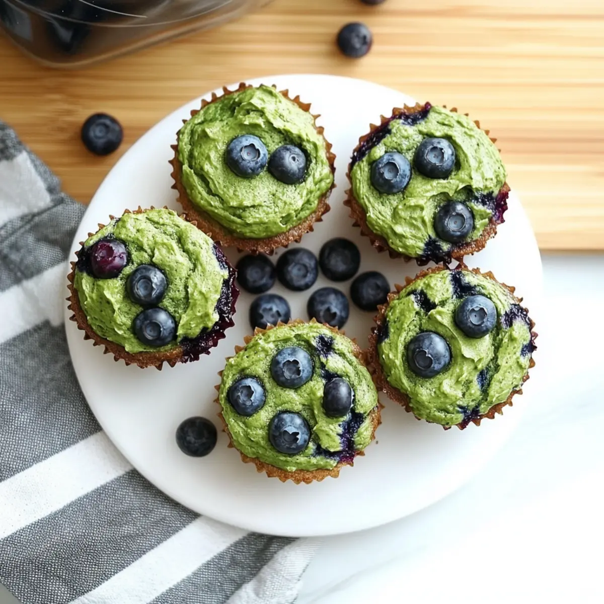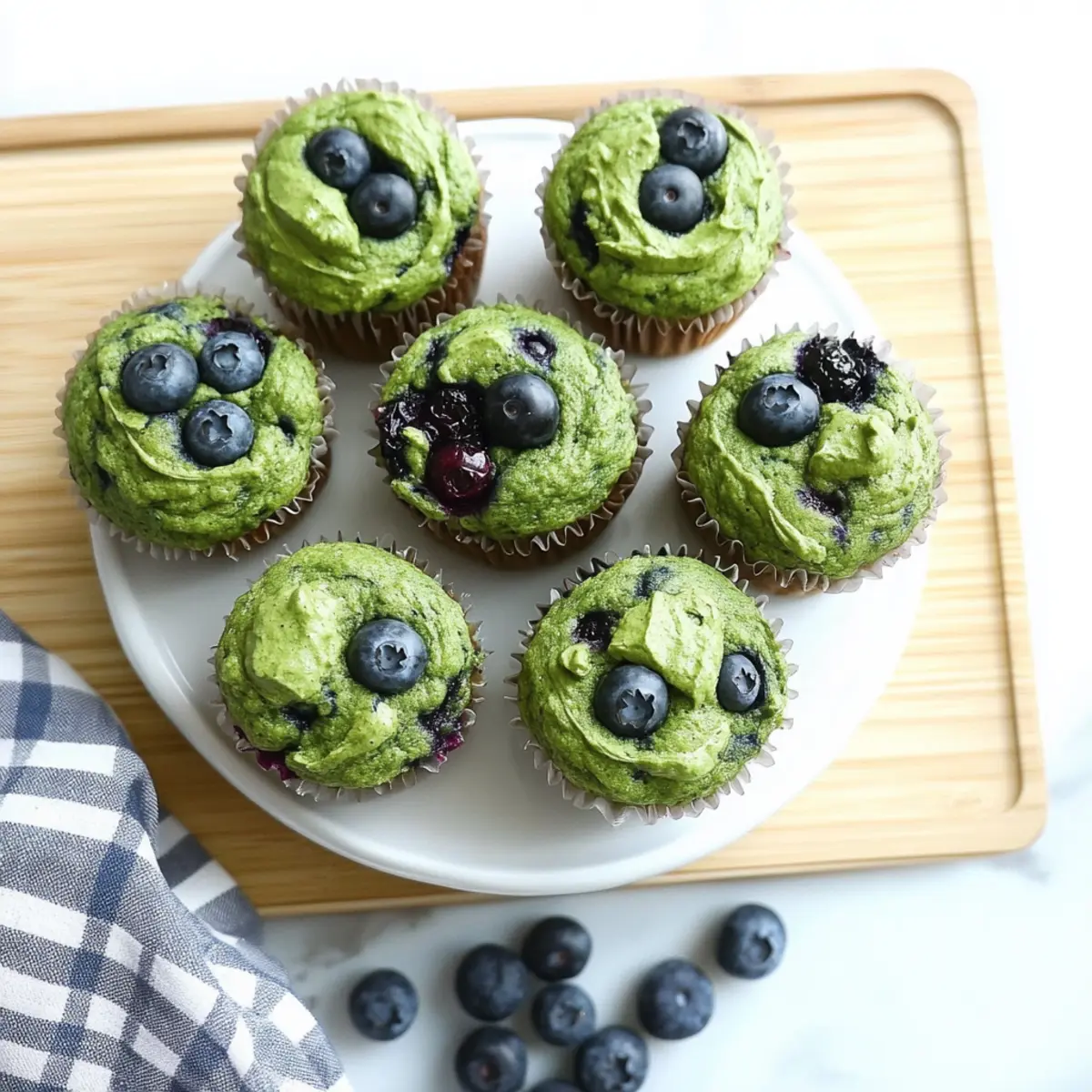 The moment I took a bite of my latest creation, I couldn’t help but smile at the unexpected delight of these Easy Blender Spinach Muffins with Blueberries. Weaving together the vibrant taste of blueberries with the nutritious goodness of spinach, these muffins transform a simple snack into a health-packed powerhouse. What I love most is that they’re gluten-free and diabetic-friendly, making them not just perfect for my family but also a cozy alternative to fast food for anyone seeking a homemade treat. Plus, the blender prep means you can whip them up in no time, making these delightful muffins a fun, hands-on cooking project for kids and adults alike. Curious about how to sneak some green goodness into your day? Let’s dive into the recipe! Why are Spinach Muffins a Must-Try? Nutritious Twist: Packed with spinach and blueberries, these muffins transform traditional baking into a health-conscious delight that everyone will love. Blender Simplicity: No need for complicated mixing; just throw everything into the blender and voilà! A hassle-free recipe that’s perfect for busy schedules. Family-Friendly: Kids will enjoy the fun of helping to blend, and they won’t even notice the veggies hidden inside! Diabetic-Friendly: Tailored with low sugar and gluten-free ingredients, they’re a guilt-free treat you can enjoy anytime. Versatile Snack: Pair with nut butter, yogurt, or enjoy them on their own – these muffins are perfect for breakfast or an afternoon snack! Explore more delicious options like Rosemary Focaccia Muffins and Chaffle Egg Cheese to keep your kitchen adventures vibrant and healthy! Spinach Blender Muffins with Blueberries Ingredients For the Muffin Batter Unsweetened Applesauce – Provides natural sweetness and moisture; can replace with any liquid sweetener if desired. Maple Syrup – Adds mild sweetness; can be omitted for a no-added-sugar version. Large Eggs (2, beaten) – Acts as a binder and adds structure to the muffins. Cooking Oil (½ cup) – Supports moisture; use avocado oil or any neutral oil for best results. Vanilla Extract (2 tsp) – Enhances the overall flavor of the muffins. Almond Flour (2 cups) – Gluten-free base, giving a nutty flavor; substitute with GF blend or oat flour if desired. Rolled Oats (1¼ cups) – Adds bulk and texture; can be ground into oat flour for a finer texture if preferred. Baking Soda (1 tsp) & Baking Powder (½ tsp) – Leavening agents that help the muffins rise beautifully. Baby Spinach (4 oz) – Nutrient booster providing vitamins and antioxidants; ensure it’s fresh to avoid excess moisture. Blueberries (1 cup, fresh or frozen) – Adds sweetness and vibrant color; these are a perfect pairing with spinach. Step‑by‑Step Instructions for Spinach Blender Muffins with Blueberries Step 1: Preheat the Oven Begin by preheating your oven to 350°F (175°C). This ensures your Spinach Blender Muffins with Blueberries bake evenly and rise beautifully. While the oven heats up, grab your muffin tin and lightly grease it or line it with paper cups for easy removal later. Step 2: Blend the Ingredients In a high-powered blender, combine the unsweetened applesauce, maple syrup, beaten eggs, cooking oil, and vanilla extract. Blend everything on high for about 60-90 seconds until you achieve a smooth, green mixture. This creamy base is the heart of your muffins, so ensure there are no chunks of spinach left. Step 3: Add Dry Ingredients Next, add the almond flour, rolled oats, baking soda, and baking powder directly into the blender. Blend on low for another 30 seconds, just until everything is incorporated. The batter should be thick but pourable, showcasing a vibrant green hue that signals all the healthy spinach packed inside. Step 4: Fold in the Blueberries Once your batter is ready, transfer it to a large mixing bowl. Gently fold in half of the blueberries, ensuring they are evenly distributed without breaking them. The blueberries add bursts of sweetness and make your Spinach Blender Muffins with Blueberries even more delightful. Step 5: Fill the Muffin Tins Pour the batter into your prepared muffin tins, filling each cup about ¾ full. This allows room for the muffins to rise without overflowing. If you’d like, use a spoon or an ice cream scoop to make this process easier and neater. Step 6: Top with More Blueberries To create an eye-catching finish, sprinkle the remaining blueberries on top of the muffin batter in each cup. This not only enhances the visual appeal but also gives an extra burst of flavor in every bite of your muffins. Step 7: Bake Until Golden Place the muffin tin in your preheated oven and bake for 25-30 minutes. You’ll know your muffins are ready when they rise and a toothpick inserted into the center comes out clean or with a few moist crumbs. The muffins should be lightly golden on top – a delicious sight to behold! Step 8: Cool and Enjoy Once baked, remove the muffin tin from the oven and allow it to cool for about 5 minutes. Then, gently transfer the muffins to a wire rack to cool completely. Enjoy your Spinach Blender Muffins with Blueberries fresh or store them for a quick grab-and-go snack! Expert Tips for Spinach Blender Muffins Blending Thoroughly: Ensure that the spinach is well-blended, creating a smooth batter for even flavor distribution throughout your muffins. Fresh Spinach Only: Avoid using frozen spinach as it can add excess moisture. Fresh baby spinach is the best choice for optimal texture. Sweetness Adjustments: If you prefer a less sweet muffin, skip the maple syrup and rely solely on unsweetened applesauce for flavor. Oil Choices: Use a neutral cooking oil like avocado or canola to keep the muffin’s taste balanced without overpowering the spinach and blueberries. Mix-In Variations: Feel free to fold in nuts or seeds to enhance nutrition and add texture to your Spinach Blender Muffins with Blueberries. Storing Muffins: Store any leftovers in an airtight container at room tem
