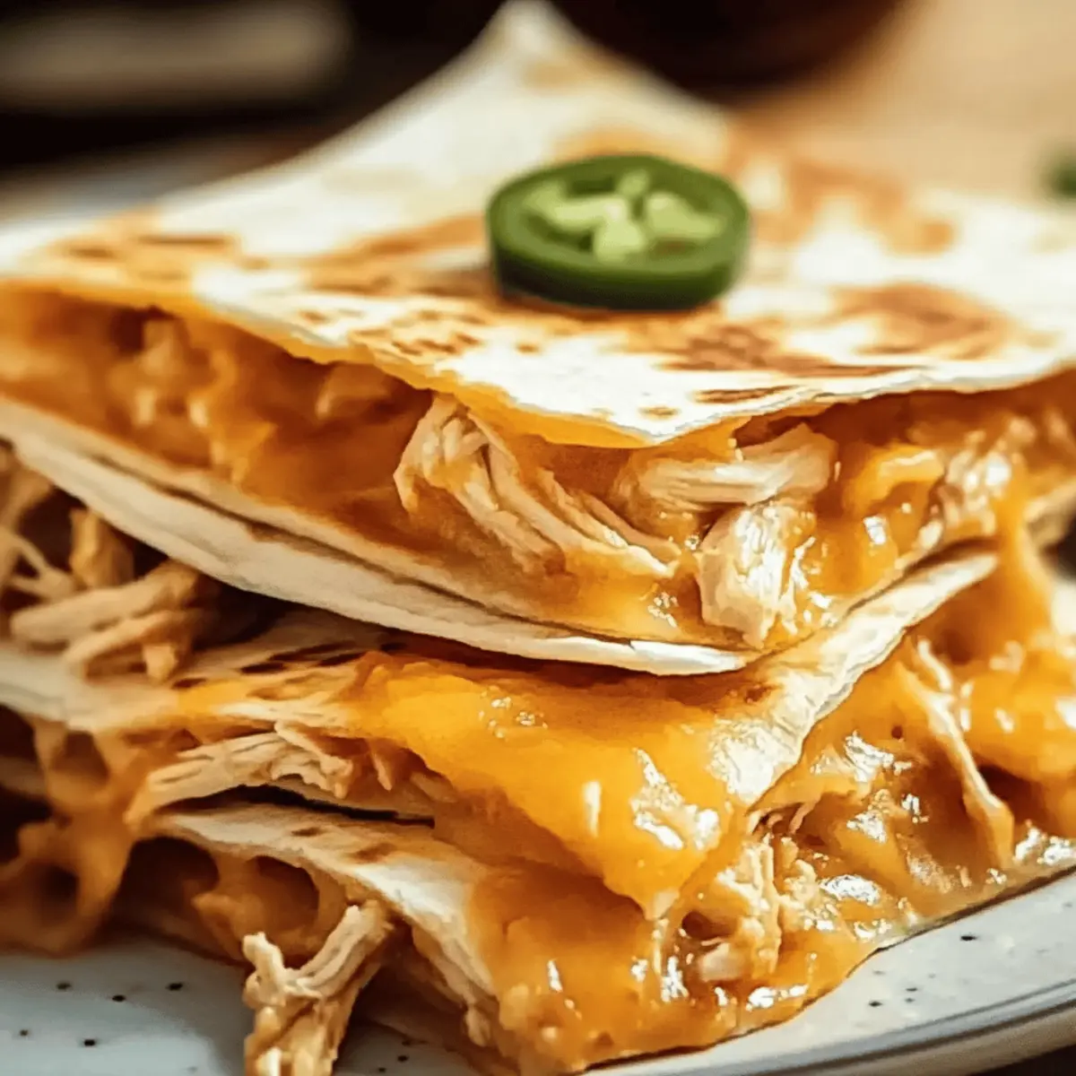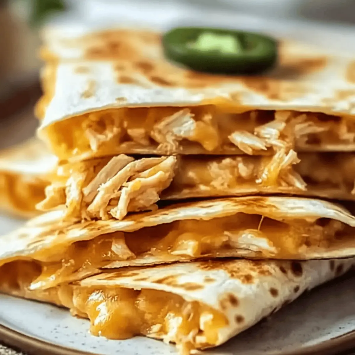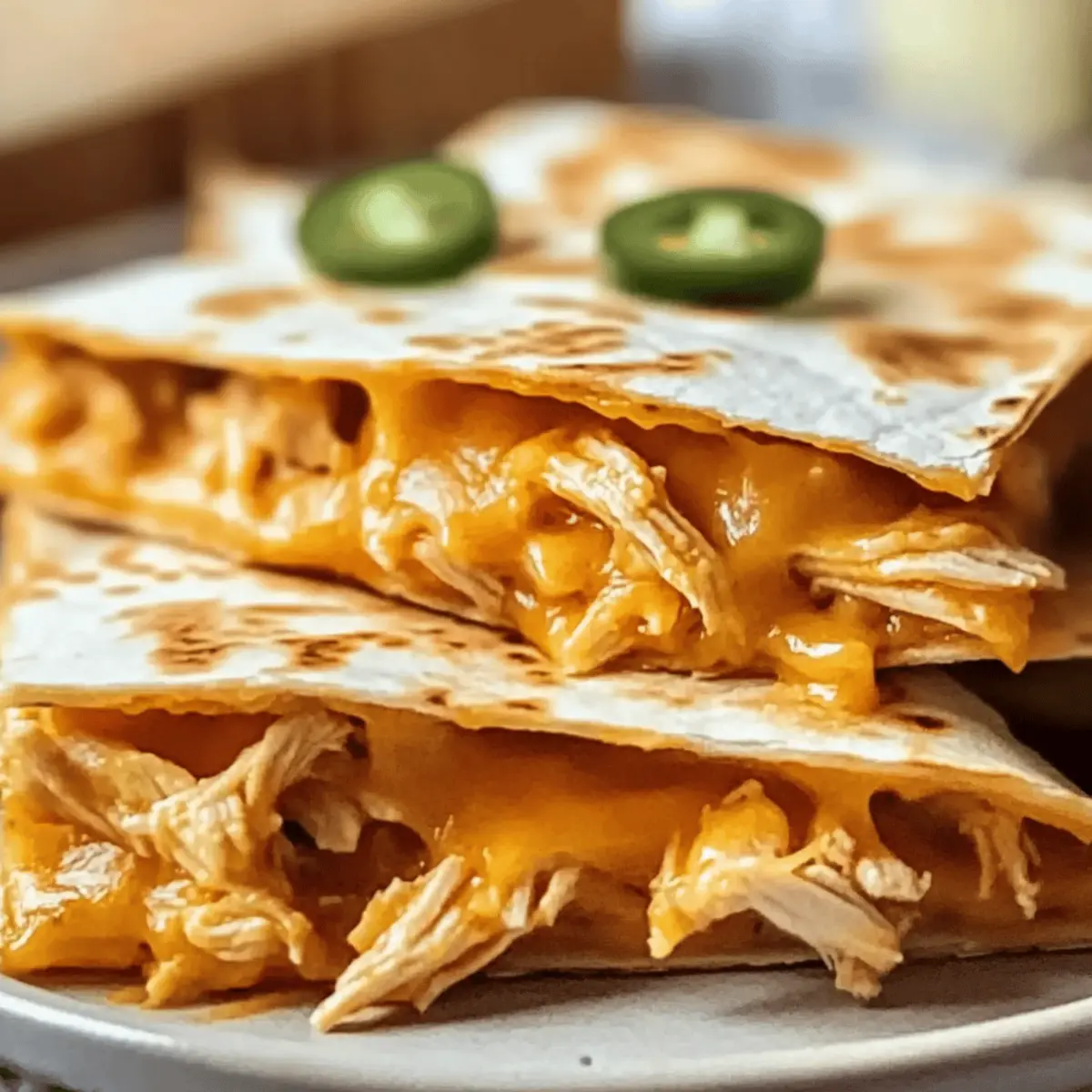 Scrolling through my phone late one night, I stumbled upon the classic Taco Bell Chicken Quesadilla craving that struck me like lightning. Instead of the familiar fast-food drive-thru, I found myself wondering how to whip up a quick and healthier version right at home. This homemade Chicken Quesadilla recipe is not only cheesy and creamy, but it boasts a tangy jalapeño sauce that’ll make you forget all about the takeout box! Ready in just 25 minutes, it’s perfect for those busy evenings when you need a satisfying meal without the fuss. Plus, it’s completely customizable; whether you prefer chicken, shrimp, or a vegetarian twist with beans or veggies, this recipe has you covered. Are you ready to recreate that nostalgic, mouth-watering taste in your very own kitchen? Why is this quesadilla a must-try? Quick and Easy: This Taco Bell Chicken Quesadilla can be whipped up in just 25 minutes, making it a lifesaver on busy nights. Customizable: Swap out the chicken for shrimp, beef, or even delicious grilled veggies to suit your taste buds! Healthier Option: Ditch the fast food with this homemade version that you can tailor to be more nutritious without sacrificing flavor. Flavor Explosion: The zesty jalapeño sauce elevates the creamy cheese and tender chicken, providing a kick that’s simply irresistible. Crowd-Pleaser: Whether it’s a family dinner or a game-night snack, this quesadilla is sure to impress everyone at the table. Want a change from chicken? Try adding some beans for a delightful vegetarian option or check out my Baked Chicken Tacos for more fun ideas! Taco Bell Chicken Quesadilla Ingredients For the Quesadilla • Tortillas – Use flour or gluten-free versions for a satisfying wrap. • Shredded Rotisserie Chicken – Adds protein and saves time; any cooked chicken will do. • Cheese Blend (Monterey Jack, Mozzarella) – Provides that gooey, melty goodness; swap for Gouda or cheddar if preferred. For the Jalapeño Sauce • Mayonnaise – Creates a creamy base for the zesty sauce. • Sour Cream – Adds a tangy kick that complements the richness. • Pickled Jalapeños – Infuse the sauce with a spicy zap; feel free to use fresh jalapeños for extra heat. • Pickled Jalapeño Juice – Enhances the flavor profile and ties the sauce together. • Garlic – Adds aromatic depth to the sauce. • Cumin & Paprika – Infuse warmth and richness into your jalapeño sauce. • Cayenne Pepper – Adjust the spice level to your liking; dare to go bold! • Salt & Pepper – Essential for bringing all flavors to life. This recipe for Taco Bell Chicken Quesadilla is not only a quick delight but an opportunity for a tasty homemade meal that satisfies your cravings! Enjoy crafting a delicious and healthier version in your own kitchen. Step‑by‑Step Instructions for Taco Bell Chicken Quesadilla Step 1: Make the Jalapeño Sauce Begin by preparing the zesty jalapeño sauce. In a mixing bowl, combine mayonnaise, sour cream, pickled jalapeño juice, minced jalapeños, minced garlic, cumin, paprika, cayenne pepper, salt, and pepper. Stir well until all the ingredients are thoroughly blended, creating a creamy sauce. Taste and adjust seasoning if needed; this tangy mixture will provide a delightful kick to your Taco Bell Chicken Quesadilla. Step 2: Prepare the Chicken Next, shred the rotisserie chicken into bite-sized pieces and place it in a large bowl. Pour half of the prepared jalapeño sauce over the chicken, tossing gently until the chicken is evenly coated. This step not only infuses flavor but also adds a creamy texture to the filling. Set aside the remaining sauce for dipping later and ensure your filling is ready for assembly. Step 3: Assemble the Quesadillas Heat a large skillet over medium heat for about 1 minute until warm. Place one tortilla in the skillet and sprinkle a generous layer of cheese on one half. Next, spoon a portion of the chicken mixture over the cheese. Fold the tortilla in half, covering the filling, and cook for 2-3 minutes until the bottom is golden brown and the cheese begins to melt. Maintain a watched eye on the coloring. Step 4: Flip and Finish Cooking Carefully flip the quesadilla using a spatula, allowing the other side to cook and turn golden brown for another 1-2 minutes. Press down gently for even cooking, making sure the cheese melts entirely. Once it reaches a crispy, golden hue and the cheese is gooey, remove from heat. Repeat with the remaining tortillas and filling, adjusting the heat if necessary to prevent burning. Step 5: Serve and Enjoy Slice each quesadilla into wedges with a sharp knife or pizza cutter for easy serving. Arrange on a platter alongside the reserved jalapeño sauce for dipping. Pair with your favorite sides like guacamole or salsa to elevate your meal. With each bite of this homemade Taco Bell Chicken Quesadilla, enjoy the comforting blend of flavors that are sure to impress your family and friends. Make Ahead Options These Taco Bell Chicken Quesadillas are perfect for meal prep lovers! You can prepare the jalapeño sauce and chicken mixture up to 3 days in advance, storing them separately in the refrigerator to maintain freshness. Just combine mayonnaise, sour cream, pickled jalapeño juice, minced jalapeños, garlic, and spices in a bowl for the sauce, and mix shredded chicken with half of the sauce. When you’re ready to feast, simply assemble the quesadillas by layering the melted cheese and chicken filling between tortillas, then cook for a couple of minutes until golden brown. This prep-ahead approach not only saves you time on busy weeknights but ensures each quesadilla is just as delicious as when freshly made! What to Serve with Homemade Taco Bell Chicken Quesadilla Looking to create the perfect meal around your cheesy, zesty quesadilla? Here are some delightful pairings that will elevate your dining experience! Guacamole: Creamy and rich, it brings a refreshing contrast that balances the spiciness of the