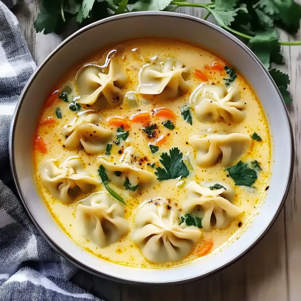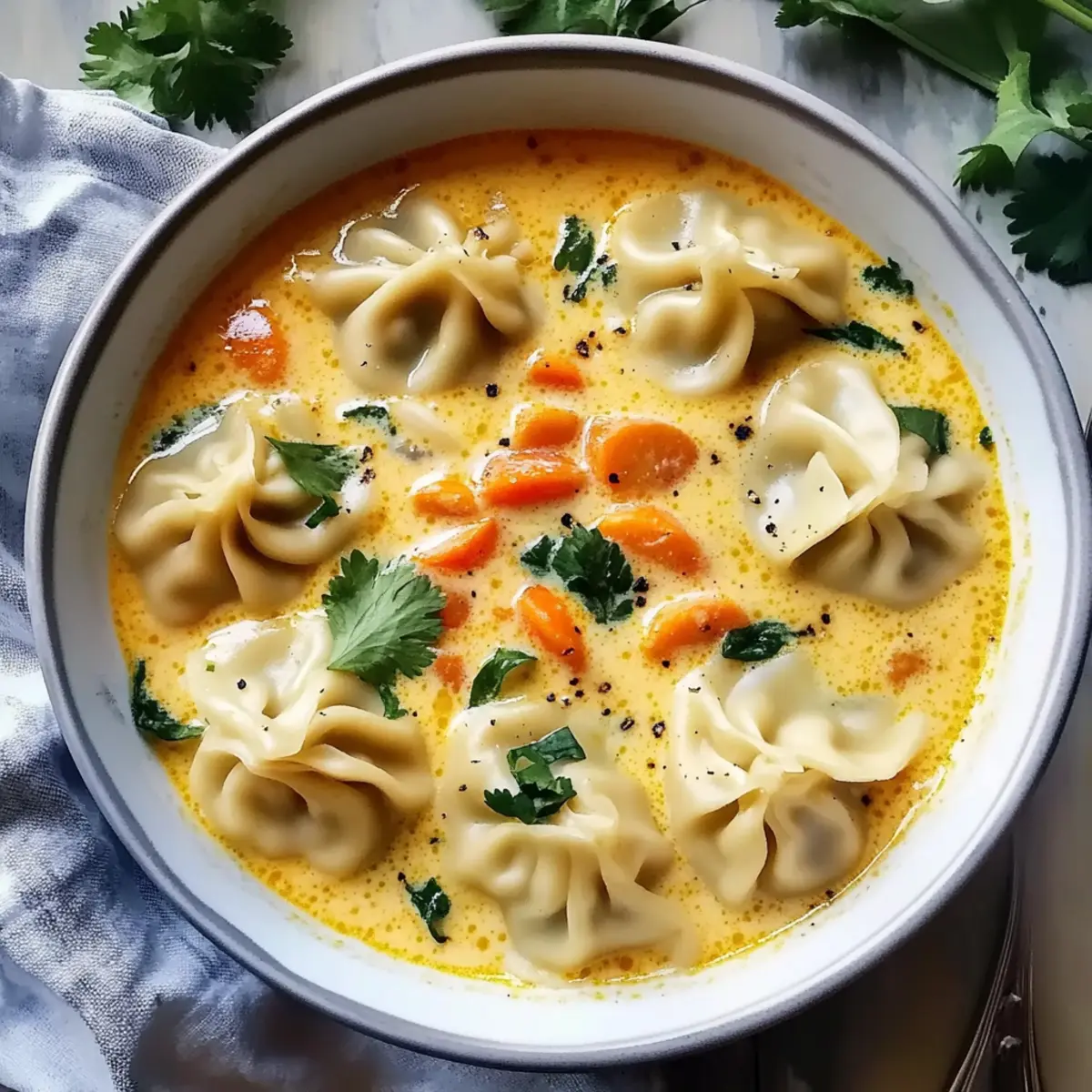 The aroma of spiced coconut fills the kitchen, evoking memories of bustling street markets far away. My Easy Thai Coconut Curry Dumpling Soup is not just a meal; it’s a comforting embrace in a bowl, blending creamy coconut milk with aromatic Thai spices and tender dumplings. This one-pot wonder is a lifesaver for busy weeknights—it comes together in under 30 minutes, giving you more time to unwind. Plus, it’s an incredibly flexible recipe that allows you to swap in whatever dumplings or leftover veggies you have on hand, perfect for reducing waste. Whether you’re cooking for family or simply treating yourself, this soup is sure to have everyone reaching for seconds. Curious about how to create this heartwarming dish at home? Let’s dive in! Why is This Soup Irresistible? Comforting Warmth: Escape the hustle and bustle with a bowl filled with velvety coconut milk and aromatic spices that wrap around you like a favorite sweater. Quick and Convenient: This Thai Coconut Curry Dumpling Soup takes just 30 minutes to whip up, making it perfect for busy evenings. Flexible Ingredients: Use any type of frozen dumplings you have on hand and throw in leftover vegetables for a deliciously adaptable meal. One-Pot Wonder: Simplify your clean-up and enjoy more time with loved ones, as this recipe utilizes just one pot for a flavorful experience without the hassle. Crowd-Pleasing Flavor: With its perfect balance of savory, sweet, and spicy notes, it’s a dish that will have everyone asking for seconds! Whether paired with a side of jasmine rice or enjoyed solo, this soup is a delightful treat that elevates any weeknight dinner. Combine it with my delicious Coconut Cream Pancakes for a sweet finish! Thai Coconut Curry Dumpling Soup Ingredients For the Dumplings • Frozen Dumplings – Choose any variety you love, be it pork, chicken, or vegetarian, for a base that’s hearty and satisfying. For the Soup Base • Coconut Milk – Opt for full-fat for a creamier texture that enhances the richness of the soup. • Vegetable/Chicken Broth – A flavorful base; use homemade for a fresh taste or store-bought for convenience. • Red Thai Curry Paste – Adjust the amount to control the spice level; it’s the key to achieving that bold Thai flavor. • Soy Sauce – Adds umami; swap for tamari if you’re keeping it gluten-free. • Brown Sugar – Helps balance the flavors; feel free to adjust to your taste preference. • Lime Juice – Freshly squeezed brightens up the soup and enhances all the flavors. For the Aromatics • Garlic – Mince finely to provide a savory foundation for the soup. • Ginger – Fresh and grated, it adds warmth and depth that’s essential in Thai recipes. For the Vegetables • Carrots – Thinly sliced for quicker cooking, they bring both sweetness and nutrition. • Baby Spinach/Bok Choy – Toss in at the end for a healthy boost of greens that wilts beautifully. • Scallions and Cilantro – Fresh herbs that garnish your soup, elevating the overall flavor and presentation. For Cooking • Cooking Oil (sesame/vegetable) – Used for sautéing the garlic and ginger to unlock those delicious aromas. With these ingredients, you’ll be on your way to creating a soul-soothing bowl of Thai Coconut Curry Dumpling Soup that’s as delicious as it is comforting! Step‑by‑Step Instructions for Thai Coconut Curry Dumpling Soup Step 1: Sauté Aromatics Heat a tablespoon of cooking oil in a large pot over medium heat. Once the oil shimmers, add the minced garlic and grated ginger; sauté them for about 1 minute until fragrant, stirring constantly to avoid burning. The vibrant aroma will fill your kitchen, setting the stage for a comforting meal. Step 2: Mix Broth Stir in the red Thai curry paste, cooking it for an additional minute to unlock its flavors. Gradually whisk in 4 cups of vegetable or chicken broth along with 1 can of full-fat coconut milk, blending thoroughly until the mixture is smooth and creamy. This rich combo sets the foundation for your Thai Coconut Curry Dumpling Soup. Step 3: Simmer Flavors Add 2 tablespoons of soy sauce, the freshly squeezed juice of one lime, and 1 tablespoon of brown sugar to the pot. Bring the soup to a gentle simmer over medium heat, allowing it to bubble for about 5-7 minutes, which helps meld the flavors beautifully. Watch for small bubbles forming as it simmers. Step 4: Cook Carrots Introduce thinly sliced carrots into the simmering soup. Allow them to cook for 2-3 minutes, stirring occasionally until they soften slightly but still retain some crunch. This step adds texture and sweetness to your Thai Coconut Curry Dumpling Soup, enhancing its hearty nature. Step 5: Add Dumplings Carefully add the frozen dumplings to the pot, ensuring they’re submerged in the broth. Cook according to the package instructions, usually around 6-8 minutes, until they are fully cooked and tender. The dumplings will puff up and become delightful little pillows in your delicious soup. Step 6: Finish with Greens Just before serving, stir in a couple of handfuls of baby spinach or chopped bok choy. Let them wilt for about 1-2 minutes in the hot soup, which will keep them vibrant and fresh. This final touch adds a nutritious element to your Thai Coconut Curry Dumpling Soup. Step 7: Serve Ladle the hot soup into bowls, ensuring each serving has a good mix of dumplings and vegetables. Garnish generously with fresh scallions and cilantro for a burst of color and flavor. Now your comforting Thai Coconut Curry Dumpling Soup is ready to be savored! Thai Coconut Curry Dumpling Soup Variations Feel free to get creative with your Thai Coconut Curry Dumpling Soup and make it your own! Protein Swap: Try using shrimp or shredded chicken in place of dumplings for a heartier option. Both add waves of flavor that will tantalize your taste buds! Veggie Medley: Toss in other vegetables like bell peppers or snap peas for extra color and nutrition. The more colorful your b