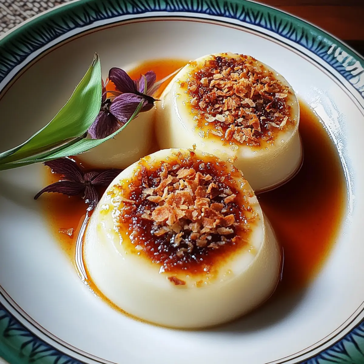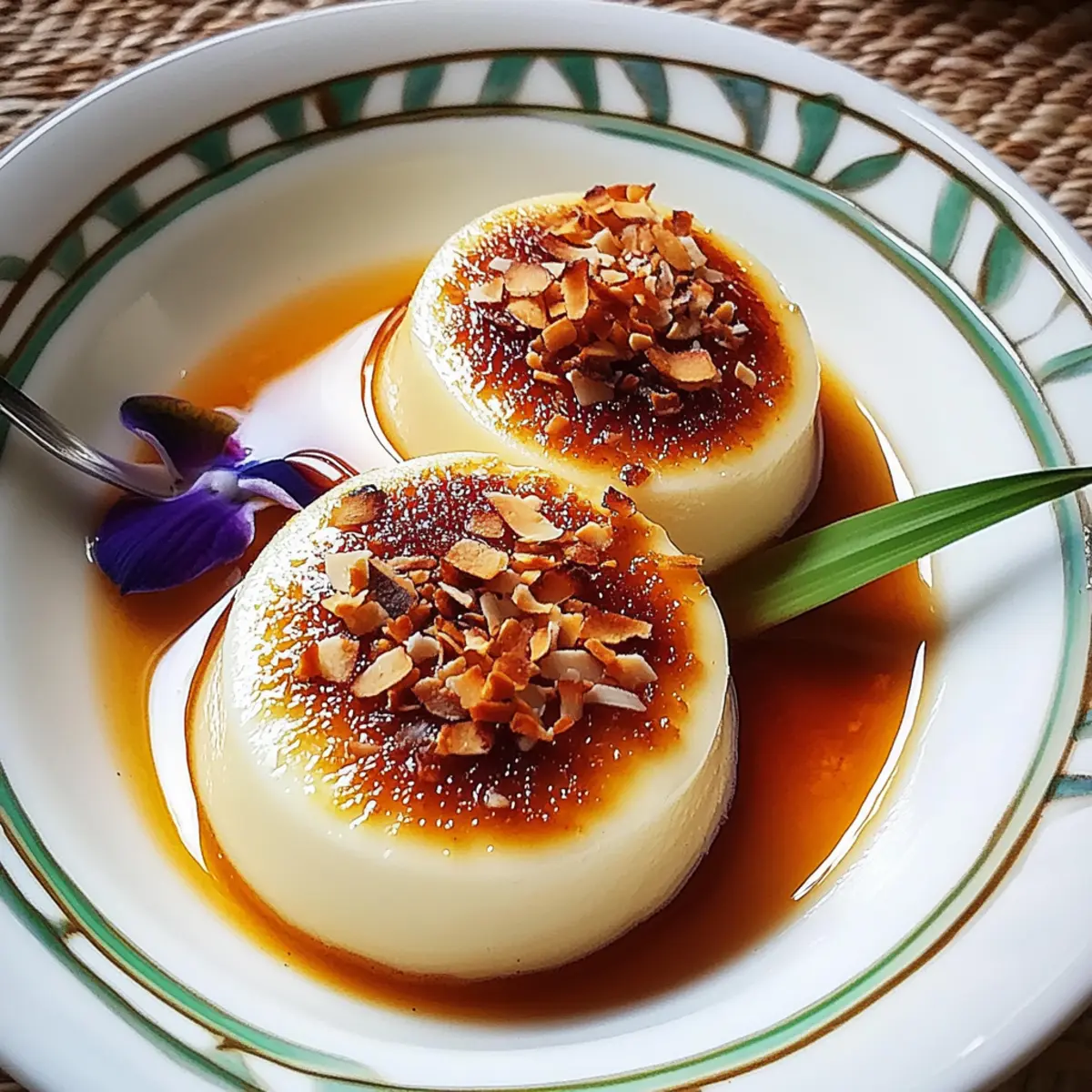 • Lightly Whipped Cream: A dollop of fluffy whipped cream adds a rich yet airy finish. This classic pairing complements the custard without overpowering its delicate coconut flavor.