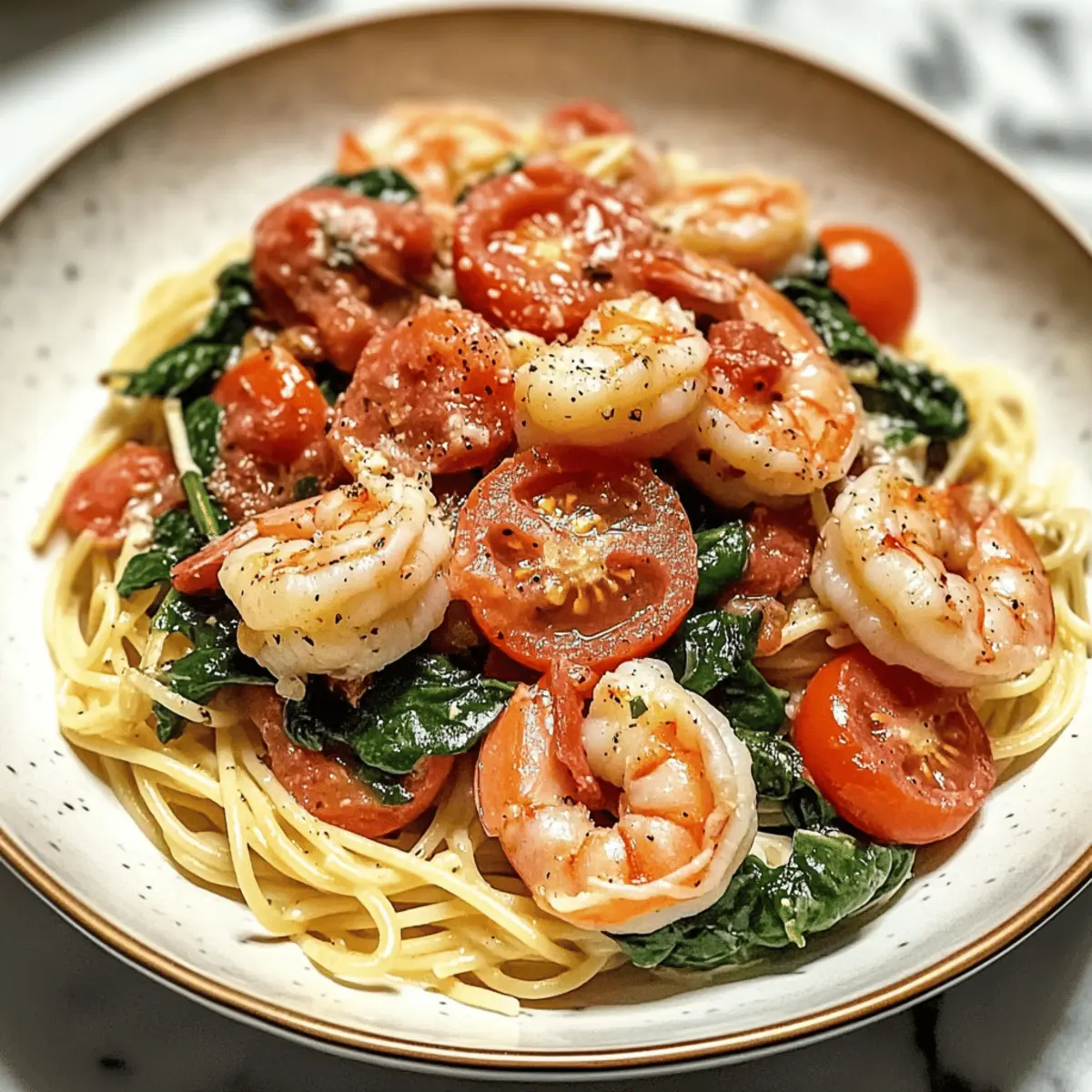 Vibrant Flavors: The combination of juicy shrimp, fresh spinach, and sweet grape tomatoes creates a deliciously light and aromatic sauce that elevates every bite.