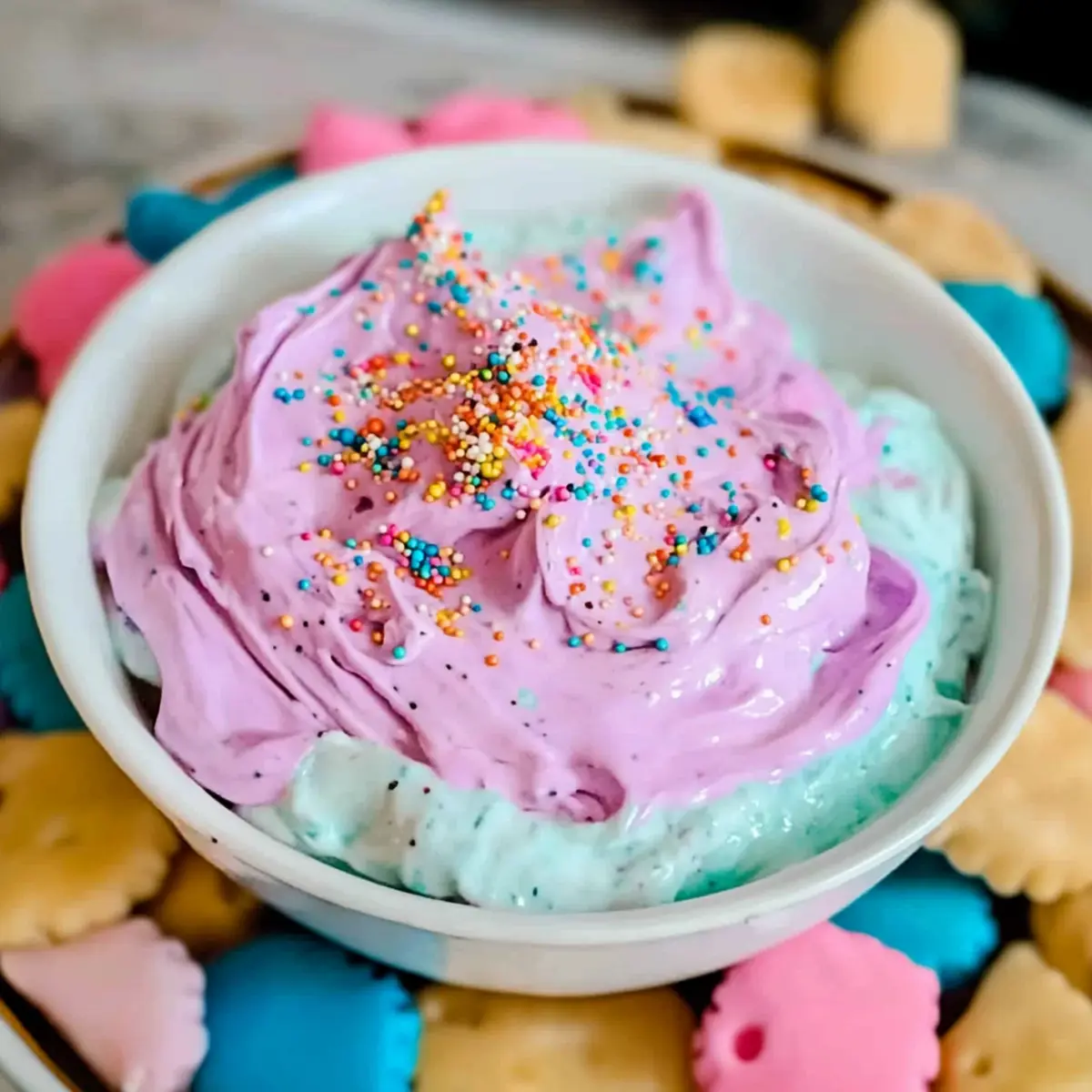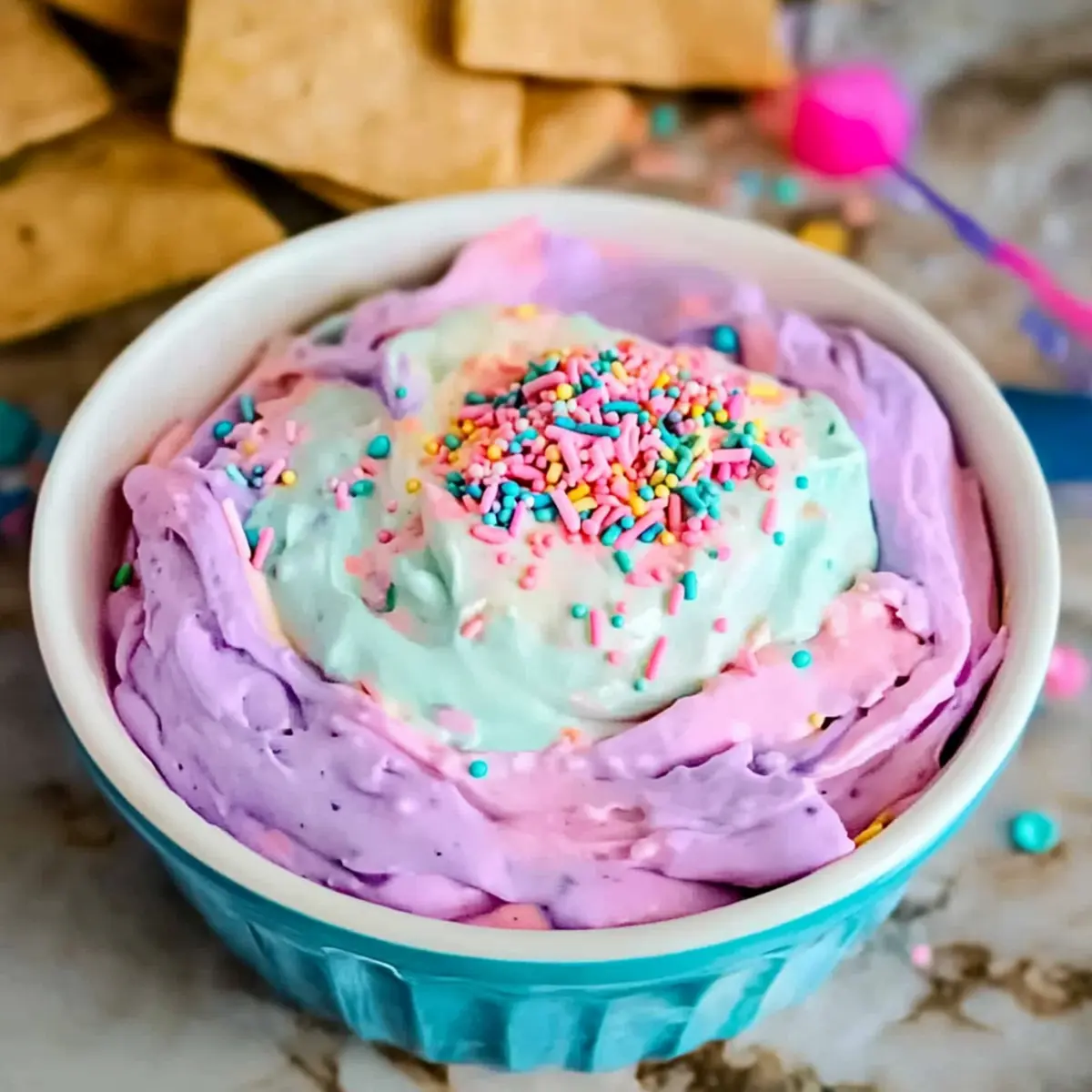 As I sift through pastel-colored sprinkles and exotic toppings, I find myself enchanted by the idea of creating something truly magical in the kitchen. This Colorful Unicorn Dip is my whimsical answer to any gathering, especially kids’ parties where a touch of enchantment is required. With just a few creamy ingredients, this quick and easy recipe transforms into a delightful dip that not only dazzles the eyes but also pleases the palate. It’s a fun twist to the classic dessert experience—perfect for those who wish to swap out fast food for something light and fluffy. Whether you’re welcoming little ones to your table or simply indulging in a sweet treat yourself, this Unicorn Dip is sure to be a crowd-pleaser. Curious how to make your own vibrant masterpiece? Let’s dive in! Why is Unicorn Dip so magical? Whimsical Delight: This colorful dip captures the imagination with its vibrant pastel hues, making it the perfect centerpiece for any festive gathering. Quick & Easy: With just a handful of simple ingredients, you can whip up this fun treat in no time, saving you from the hassle of complicated recipes. Family Friendly: Not only do kids adore its playful colors, but they’ll also enjoy dipping into this sweet indulgence, which can be served with a variety of dippers like fruit or crackers. Versatile Options: Customize the flavors and colors to match your party theme, making it uniquely yours—consider experimenting with flavored extracts for an extra twist! Perfect Presentation: Dressed with edible glitter and sprinkles, this dip brings an irresistible visual appeal, ensuring it’s not only delicious but also Instagram-worthy! Looking for more fun ideas? Check out our festive party treats for additional inspiration! Unicorn Dip Ingredients For the Dip Cream Cheese – adds richness and a creamy base; ensure it’s softened for easy mixing. Heavy Whipping Cream – provides a light and airy texture; use fresh, cold cream for best results. Marshmallow Cream – offers additional sweetness and a fluffy consistency; substitute with whipped topping for lighter options. Sugar – sweetens the dip; can be adjusted from 1 to 3 cups based on your preference—consider reducing for less sweetness. Vanilla Extract – enhances flavor; pure vanilla is recommended for the best taste. For the Colors Gel Food Colors (Pink, Teal, Purple) – adds vibrant colors; gel colors blend better than liquid food coloring. For Dipping Graham Crackers or Wafers – perfect for dipping; can substitute with fruits like strawberries or bananas for a fresh alternative. Colorful Sprinkles – optional topping for added texture and decoration. Edible Glitter – optional for visual appeal; enhances the festive look of your Unicorn Dip. This Unicorn Dip will undoubtedly be a showstopper at your next gathering, offering both delightful flavors and an enchanting presentation! Step‑by‑Step Instructions for Unicorn Dip Step 1: Whip the Cream Begin by pouring 1 cup of cold heavy whipping cream into a medium mixing bowl. Use an electric mixer on medium speed to whip the cream until soft peaks form, which should take about 3-5 minutes. Watch for the cream to double in volume and become light and fluffy, indicating it’s ready to combine with the other ingredients for your vibrant Unicorn Dip. Step 2: Combine the Base Ingredients In a large mixing bowl, add 8 ounces of softened cream cheese, 1 cup of marshmallow cream, 1-3 cups of sugar (adjust to your sweetness preference), and 1 teaspoon of pure vanilla extract. Use a hand mixer to blend these ingredients on medium speed until smooth and creamy, about 2-3 minutes. This rich mixture will serve as the delightful foundation for your Unicorn Dip. Step 3: Color the Mixture Now, divide the creamy mixture evenly into three separate bowls. In each bowl, add a drop of gel food coloring—pink in one, teal in another, and purple in the last. Stir each bowl gently with a spatula until you achieve your desired pastel colors, ensuring that the colors blend well without losing their vibrancy. This step brings the fun and whimsical nature of the Unicorn Dip to life! Step 4: Layer the Colored Mixtures Select a clean serving bowl and begin layering the colorful mixtures. Spoon in dollops of each color alternately, taking care to create distinct layers. After filling your bowl, use a fork to gently swirl the colors together for a marbled effect, but be cautious not to over-mix. This visual presentation is key to the enchanting appearance of your Unicorn Dip. Step 5: Add Finishing Touches To bring an extra touch of magic to your Unicorn Dip, sprinkle colorful sprinkles and edible glitter over the top. These toppings not only enhance the festive look but also add a fun crunchy texture. Feel free to get creative with the amount of sprinkles, making your dip as dazzling as you desire! Step 6: Serve or Chill Your delightful Unicorn Dip is ready to serve! For the best experience, enjoy it right away with graham crackers, wafers, or fresh fruit like strawberries or bananas. Alternatively, if you prefer a firmer texture, refrigerate the dip for about 1 hour before serving. This will allow the flavors to meld beautifully while making it easy to scoop! Storage Tips for Unicorn Dip Fridge: Store any leftover Unicorn Dip covered tightly in an airtight container in the fridge for up to 24 hours. The dip will thicken as it chills, enhancing the flavor. Freezer: For longer storage, freeze the Unicorn Dip in a freezer-safe container for up to 2 months. Allow it to thaw in the fridge overnight before serving. Reheating: If you desire a softer texture, gently stir in a small amount of heavy cream after thawing. Avoid reheating in the microwave, as it can change the dip’s texture. Serving Reminder: Always check the dip for freshness before serving and give it a good mix to restore some creaminess after refrigeration. What to Serve with Unicorn Dip? This delightful treat transforms your gathering