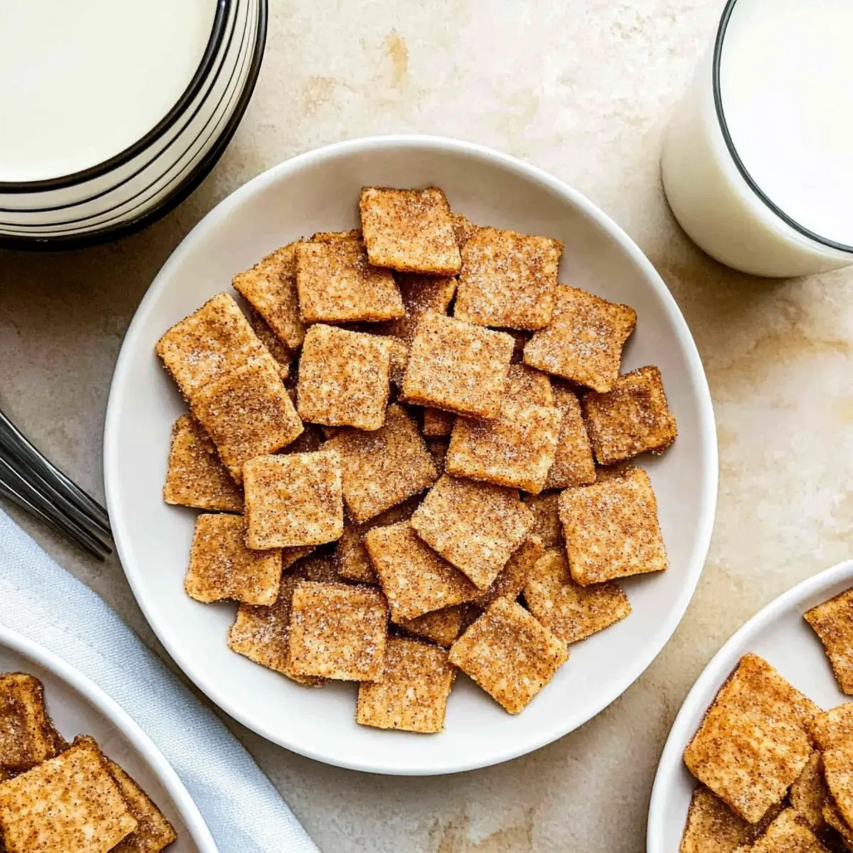 As the aroma of cinnamon fills my kitchen, I can’t help but reminisce about those carefree mornings spent devouring my favorite childhood cereal—Cinnamon Toast Crunch. Today, I’m thrilled to share my Homemade 5-Ingredient Vegan Cinnamon Toast Crunch, a delightful and healthier take on that nostalgic classic. This recipe is not just quick and simple to whip up, but it also satisfies my cravings while keeping it vegan and gluten-free. With just five wholesome ingredients, you can enjoy a crispy, sweet treat that makes breakfast a delight or curls up as a charming afternoon snack. Who knew that achieving those comforting flavors could be so easy? Are you ready to bring some playful crunch back into your mornings?