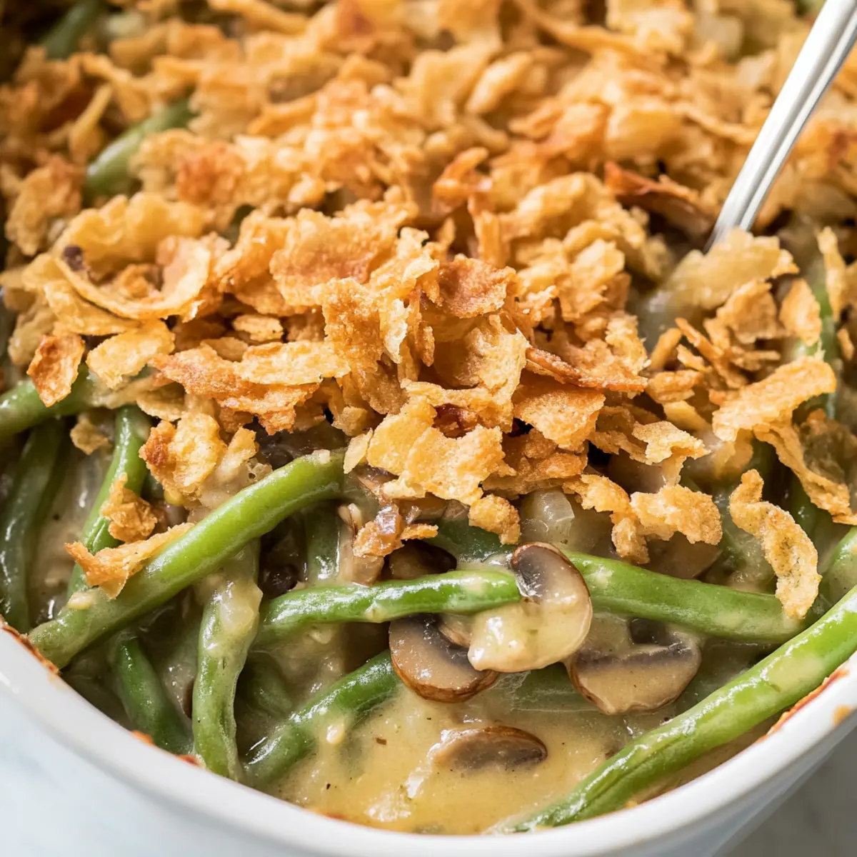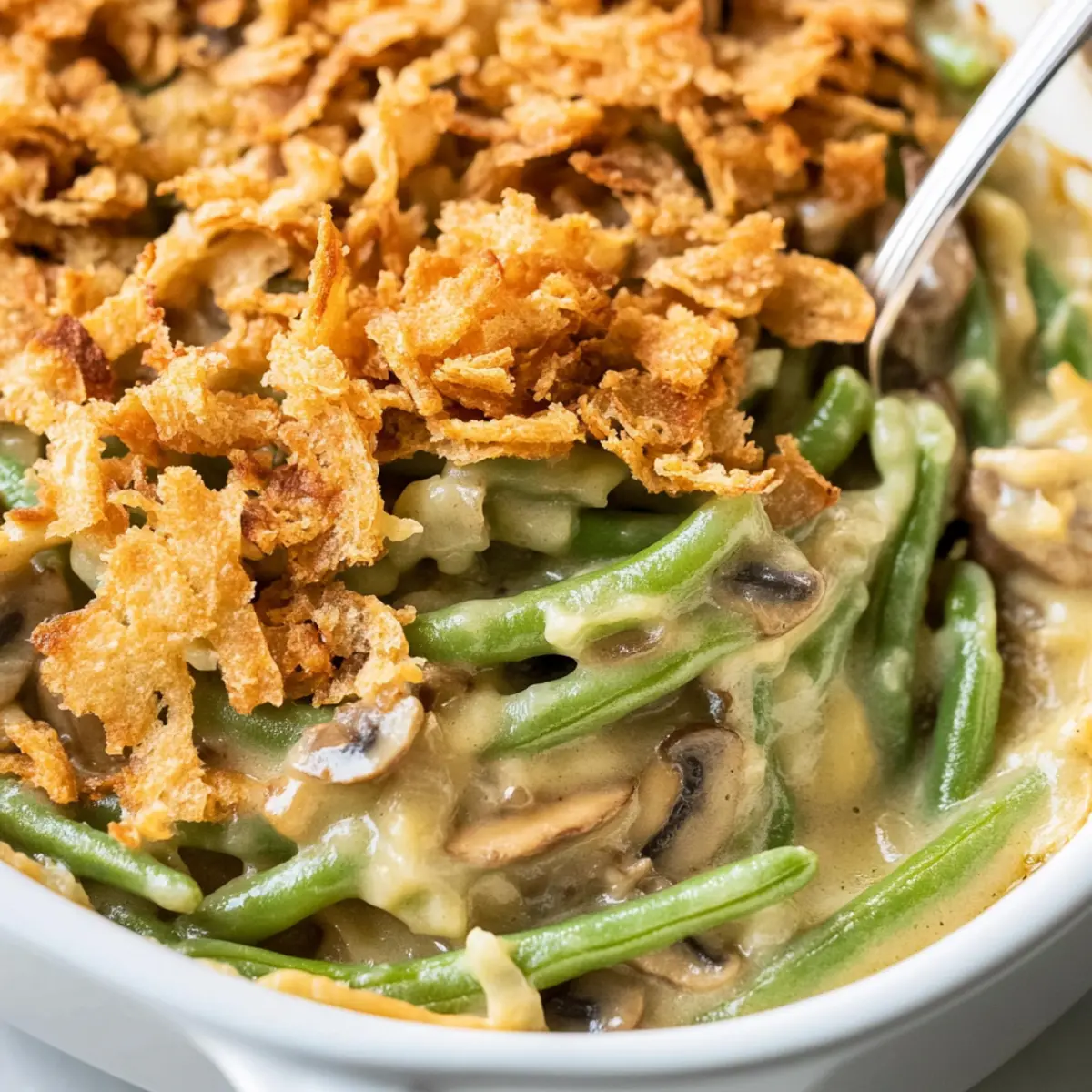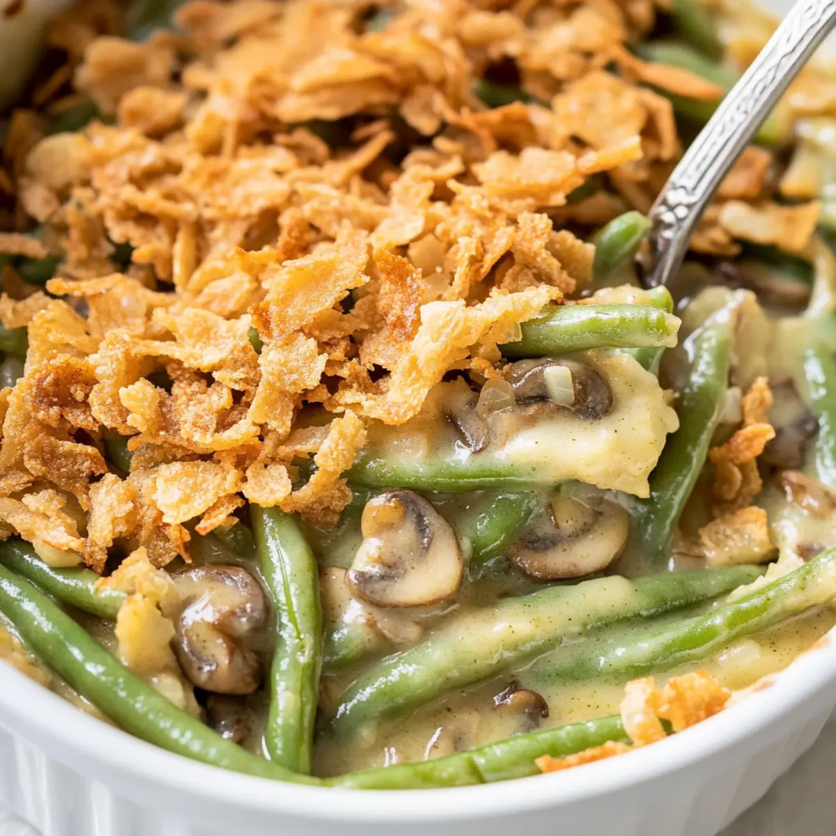 As I placed the steaming Vegan Green Bean Casserole on the table, a wave of nostalgia washed over me, reminding me of countless family gatherings. This dish captures the essence of the holidays, featuring crisp, fresh green beans mingling with a creamy homemade condensed mushroom soup that feels just as indulgent as the traditional version. It’s a crowd-pleaser that not only caters to vegan diets but also reassures gluten-sensitive folks with simple substitutions. The best part? You can prepare this delightful casserole in advance, which frees up time to enjoy the festivities with loved ones. Ready to impress your guests and make mealtime memorable? Let’s dive into this heartwarming recipe! Why is this Vegan Green Bean Casserole irresistible? Creamy Goodness: This casserole offers a rich, velvety texture thanks to our homemade condensed mushroom soup that will have everyone asking for seconds. Tasty Comfort: The combination of fresh green beans and sautéed mushrooms creates a deliciously savory flavor profile that uplifts any holiday meal. Versatile Ingredients: Easily adaptable for gluten-free diets with simple swaps, ensuring every guest can enjoy this delightful dish. Make-Ahead Perfection: Perfect for busy holidays, prep this dish a day in advance and pop it in the oven when it’s time to feast! Crowd-Pleasing Appeal: Even non-vegans will be drawn to this dish, making it a guaranteed hit at your next gathering, alongside other favorites like Eggs Benedict Casserole or Chicken Spaghetti Casserole. Vegan Green Bean Casserole Ingredients For the Casserole • Fresh Green Beans – Rinsed and cut into bite-sized pieces for optimal tenderness. • Olive Oil – A flavorful cooking medium; avocado oil can be substituted for a different taste. • Onion – Aromatic base that deepens flavors; shallots offer a milder touch. • Garlic – Fresh minced garlic enhances the overall flavor, but garlic powder works in a pinch. • Baby Bella Mushrooms – Adds a lovely umami flavor and texture; substitute with cremini or button mushrooms if desired. • Salt & Pepper – Essential for seasoning; adjust according to your taste preferences. • Flour – Thickens the sauce; gluten-free flour can easily be used for dietary needs. • Vegetable Broth – Provides an essential base flavor; homemade broth works well too! • Unsweetened Nut Milk – Creates that creamy texture; almond milk, soy milk, or oat milk are excellent choices. • Vegan Crispy Fried Onions – Adds delightful crunch; feel free to replace with homemade crispy onions for a fresher taste. For Gluten-Free Adaptation • Gluten-Free Flour – Essential for ensuring the sauce thickens, maintaining the integrity of your Vegan Green Bean Casserole. This delightful dish is not just a side; it’s a tradition in the making! With fresh ingredients and simple adaptations, you’ll keep everyone asking for your recipe. Let’s gather those ingredients and create a vegan masterpiece that embodies holiday cheer! Step‑by‑Step Instructions for Vegan Green Bean Casserole Step 1: Preheat the Oven Begin by preheating your oven to 375°F (190°C). This temperature is perfect for achieving that golden, bubbly finish on your Vegan Green Bean Casserole. While the oven warms up, gather your ingredients and prepare your baking dish for an easy transition once your casserole is ready to bake. Step 2: Cook the Green Beans In a large pot, bring enough water to a rolling boil. Carefully add your rinsed and cut fresh green beans and let them cook for about 7-10 minutes, until they are tender but still crisp. Once they are ready, drain the green beans, giving them a gentle shake to remove excess water, and set them aside to cool slightly. Step 3: Sauté the Aromatics Heat a generous amount of olive oil in a frying pan over medium heat. Once hot, add the diced onion and sauté for 2-3 minutes until it becomes translucent. Next, stir in the minced garlic and sliced mushrooms, continuing to cook this mixture for an additional 5 minutes until the mushrooms soften and everything becomes aromatic. Step 4: Create the Sauce Base Sprinkle the sautéed mixture with salt, pepper, and flour, stirring well to combine. Let this cook for about 2 minutes to ensure the flour is well incorporated and the mixture thickens slightly. This step is crucial for creating the creamy texture in your Vegan Green Bean Casserole. Step 5: Whisk in Liquids Gradually pour in the vegetable broth and unsweetened nut milk while whisking constantly. Continue to cook over medium heat, whisking until the sauce thickens, around 10 minutes. You should achieve a rich, creamy consistency that will envelop the green beans beautifully. Step 6: Combine Ingredients Once the sauce is thickened, gently fold in one cup of crispy fried onions and the previously cooked green beans. Stir until everything is well-coated in this luscious sauce, adjusting seasoning as necessary. This is where all the flavors come together in your delightful Vegan Green Bean Casserole. Step 7: Transfer and Top Pour the mixture into your prepared baking dish, evenly spreading the green bean mixture. Top it generously with the remaining crispy fried onions, which will give your casserole that perfect crunch when baked, enhancing both appearance and taste. Step 8: Bake to Perfection Place the baking dish in the preheated oven and bake for about 15-20 minutes, or until the casserole is bubbly and the top is golden brown. For mini casseroles, reduce the baking time to about 8-10 minutes. This final step brings everything together, leaving you with a stunning Vegan Green Bean Casserole. What to Serve with Vegan Green Bean Casserole A perfect meal brings together flavors and textures that delight every guest at your holiday table. Creamy Mashed Potatoes: The buttery, velvety feel of mashed potatoes complements the crunchy topping of the casserole beautifully, adding a cozy warmth to your plate. Vegan Stuffed Mushrooms: These bit