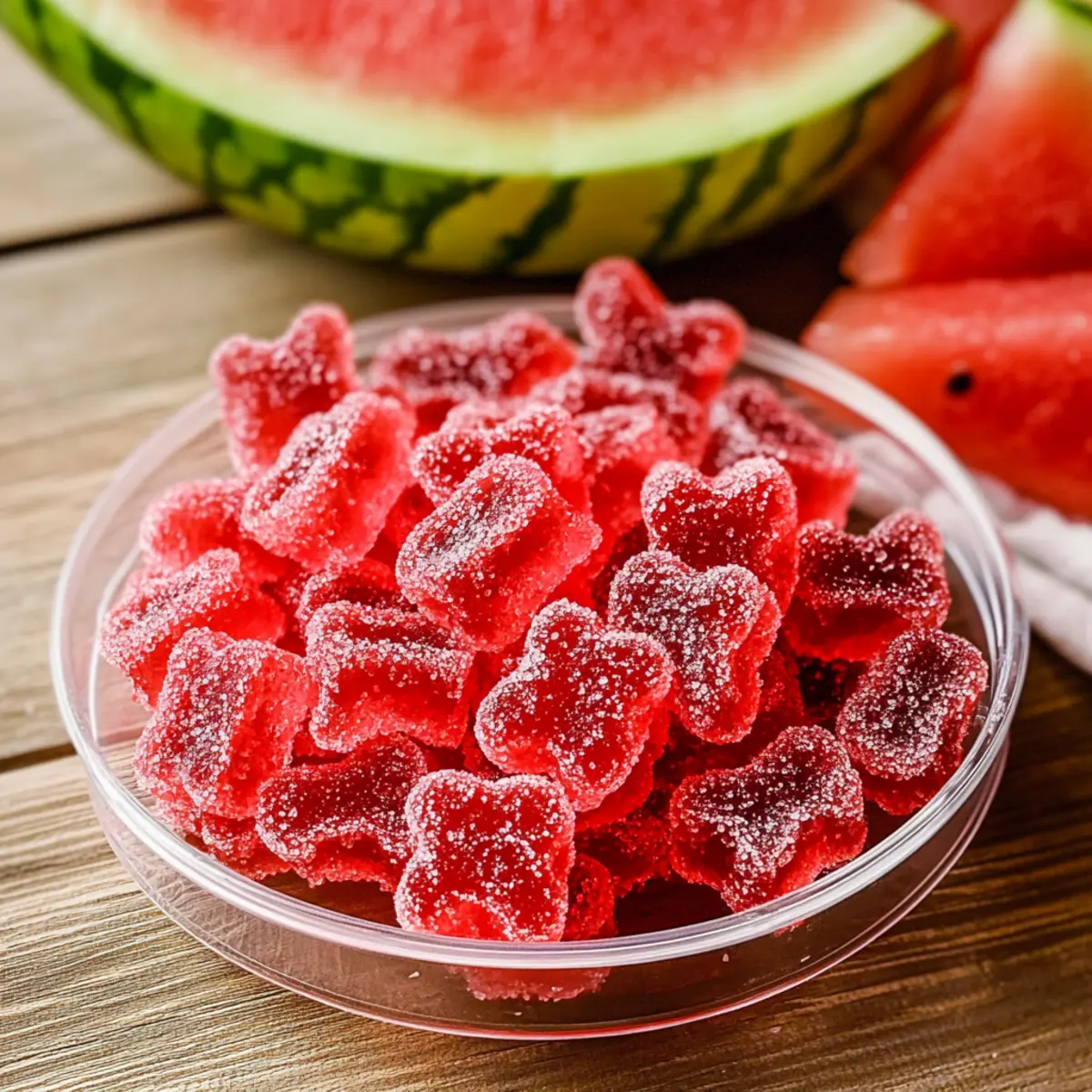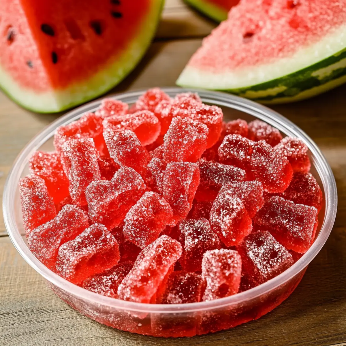 • Watermelon – Fresh watermelon cubes provide the delightful, natural sweetness that makes these gummies irresistible.