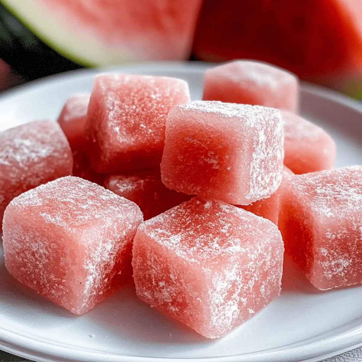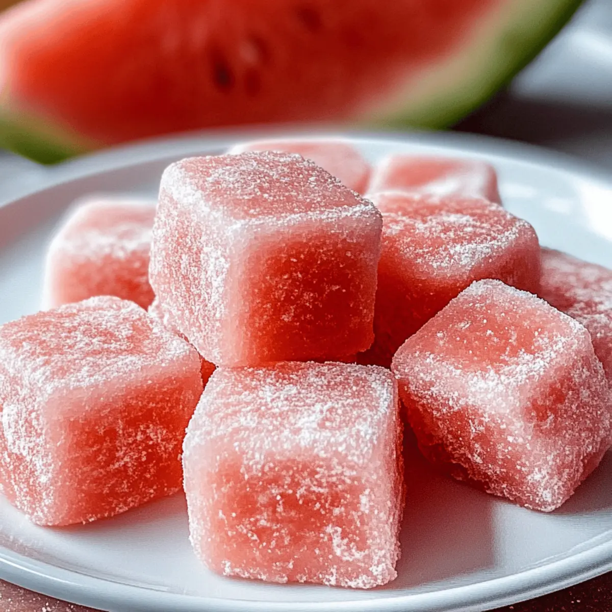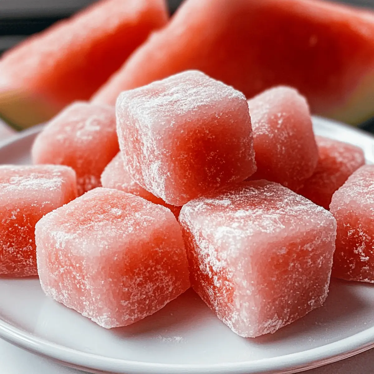 Stepping into my kitchen on a sweltering summer day, I’m greeted by the vibrant scent of fresh watermelon—sweet, crisp, and oh-so-refreshing. It’s the perfect time to whip up some Watermelon Mochi, a delightful Japanese-inspired treat that captivates with its unique chewy texture. Not only is this vegan and gluten-free dessert a fun way to satisfy your sweet tooth, but it’s also a nourishing alternative to conventional candies, sans refined sugars and artificial additives. Whether you’re looking to impress guests at a summer gathering or simply treat yourself to a guilt-free indulgence, this recipe promises to be a crowd-pleaser with every sticky, satisfying bite. Curious about how to bring this joyful treat to life? Let’s dive into the details! Why is Watermelon Mochi a Must-Try? Unique Flavor Fusion: The refreshing taste of watermelon juice creates a delightful twist on traditional mochi, making it a standout dessert. Vegan & Gluten-Free: This recipe caters to various dietary preferences, ensuring everyone can enjoy a delicious sweet without compromise. Quick & Easy: With minimal ingredients and straightforward steps, you can whip up these chewy treats in no time! Versatile Options: Feel free to customize your mochi with different fruit juices or fillings to match your taste. Need some inspiration? Consider trying your hand at Mochi Doughnuts Chewy for a twist on this theme! Impressive Yet Simple: Your friends and family will be amazed at this simple yet impressive dessert that elevates any summer gathering. Healthy Sweet Alternative: Ditch the refined sugars and embrace a naturally sweetened treat that’s both satisfying and guilt-free! Watermelon Mochi Ingredients • Create your own refreshing masterpiece with these simple ingredients! For the Mochi Base Glutinous Rice Flour – Provides the chewy, stretchy texture characteristic of mochi; ensure it’s labeled gluten-free! Tapioca Starch – This ingredient adds elasticity and helps the mochi set beautifully. Maple Sugar – A natural sweetener that complements the fruity flavor without refined sugars. Fresh Watermelon Juice – The star of the show, giving the mochi its delightful essence; strain it well for a silky smooth texture. Avocado Oil – Adds richness and helps prevent sticking while handling the dough. Optional Add-Ins Fruit Fillings – Consider adding fresh berries or mango for a flavor punch in each bite! Flavor Variations – Substitute watermelon juice with other juices like strawberry or pineapple for exciting new tastes. Toppings – Sprinkle with toasted coconut or crushed nuts for an irresistible crunch! Unleash your creativity while making this Watermelon Mochi, and enjoy a summer treat that’s as fun to make as it is to eat! Step‑by‑Step Instructions for Watermelon Mochi Step 1: Make the Watermelon Juice Start by cutting a ripe watermelon into chunks and blending them until smooth. Strain the mixture using a fine mesh sieve to separate the juice from the pulp, ensuring you have ¾ cup of pure watermelon juice. This vibrant juice is essential for giving your Watermelon Mochi its refreshing flavor, so take your time to get it just right. Step 2: Prepare the Mochi Mixture In a large mixing bowl, combine glutinous rice flour, maple sugar, and tapioca starch. Whisk these dry ingredients together until evenly mixed, then create a well in the center. Pour in the freshly strained watermelon juice along with 1 tablespoon of avocado oil, and whisk until the mixture is smooth and free of lumps. This consistency is crucial for achieving that perfect chewy texture. Step 3: Cook the Mochi Place a non-stick skillet over low-medium heat and add the remaining tablespoon of avocado oil, allowing it to warm for a moment. Pour in the watermelon mixture while stirring continuously with a spatula. Keep stirring for about 3-4 minutes or until the mixture thickens noticeably and takes on a darker pink hue. The consistency should resemble a thick paste that sticks to the spatula. Step 4: Shape the Mochi Remove the skillet from heat and transfer the mochi mixture onto a clean, lightly oiled surface. Let it cool slightly, then use your hands (oiled to prevent sticking) to form the mixture into a large sticky ball. Press this ball into a flattened square shape within a parchment-lined container, smoothing the top. Refrigerate for 1-2 hours until the mochi firms up nicely. Step 5: Dust and Cut Once the Watermelon Mochi has chilled and set, sprinkle a generous layer of glutinous rice flour onto your work surface. Carefully remove the mochi from the container and dust off any excess moisture. Cut the chilled slab into cubes or strips, making each piece uniform. Don’t forget to dust each piece with more rice flour to keep them from sticking together. Serve immediately for the best texture! What to Serve with Watermelon Mochi Delight your taste buds with perfect pairings that complement this unique dessert. Fresh Berries: Their tartness balances the sweetness of the mochi, creating a refreshing contrast with every bite. Green Tea: A warm cup of this soothing beverage enhances the flavors of the mochi while offering a tranquil finish to your meal. Coconut Sorbet: Creamy and cool, this light dessert mirrors the mochi’s chewy texture, making for a delightful dessert duo. Mango Slices: Juicy and ripe, mango adds a tropical flair that beautifully harmonizes with the flavor profile of watermelon mochi. Toasted Coconut Flakes: Sprinkling these on top adds a crunchy texture that enhances the overall experience and brings that island vibe. Sparkling Water with Lime: The fizz and zest refresh the palate, rounding out the sweetness of the mochi and making it a fun, bubbly companion! Fruit Salad: A medley of seasonal fruits brings brightness and freshness, creating a colorful and vibrant complement to the mochi’s soft texture. Matcha Ice Cream: Earthy and slightly bitter, it creates the perfect contrast to the sweetness of waterm
