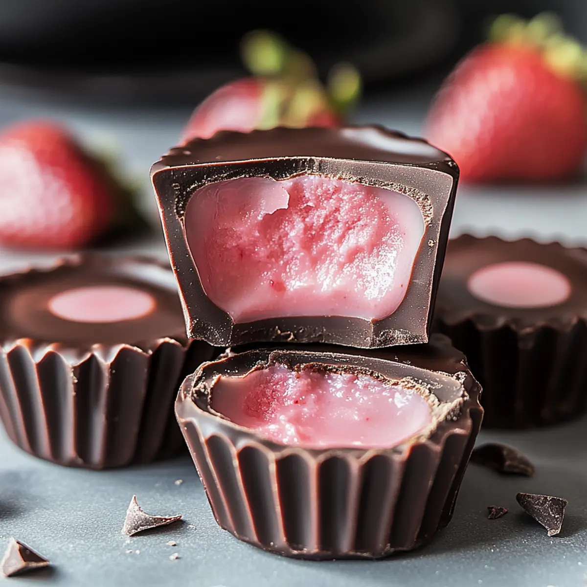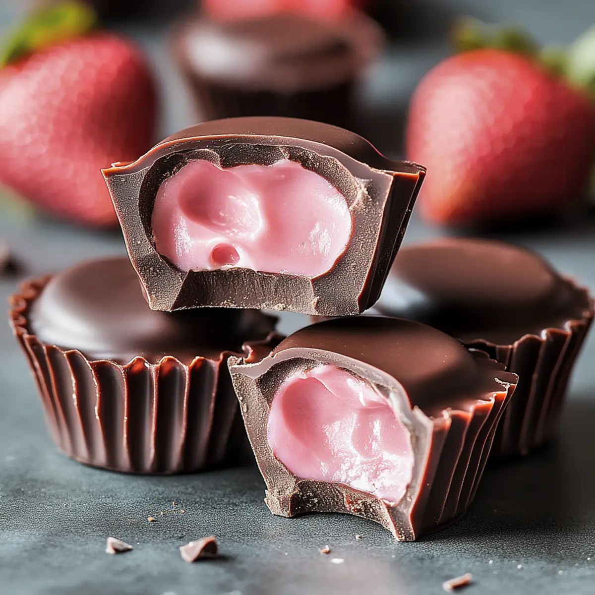 The moment I took my first bite of Strawberry Cream Chocolates, time seemed to pause as sweet memories flooded in—summer picnics, laughter, and pure bliss. These no-bake delights beautifully combine the vibrant essence of ripe strawberries with a silken chocolate shell, creating a treat that’s not only indulgent but also elegantly simple to make. Why Strawberry Cream Chocolates? They’re gluten-free, making them a guilt-free pleasure perfect for any occasion. Plus, they require minimal time in the kitchen, so you can spend more moments savoring the deliciousness. Whether you’re treating yourself or crafting the perfect gift, these little gems are sure to delight. Are you ready to whip up your own batch of happiness? Why Strawberry Cream Chocolates? Indulgent, the luscious blend of fresh strawberries and creamy filling covered in chocolate creates a taste sensation that is hard to resist. No-Bake Convenience means you can whip these up without turning on the oven, making them a fantastic option for any home cook. Guilt-Free Pleasure as these treats are gluten-free, so you can enjoy each bite without worry. Perfect for Gifting, their elegant appearance makes them an ideal gift for birthdays or special occasions, and they are sure to impress. Versatile Treats, feel free to experiment with flavors like raspberry or mango for a delightful twist. Make a batch and experience the joy of homemade sweets! Strawberry Cream Chocolates Ingredients For the Cream Filling Strawberries – fresh strawberries provide natural sweetness and vibrant color; you can substitute with thawed frozen strawberries (drained) if needed. Heavy Cream – creates a luscious creaminess; consider using coconut or almond cream for a dairy-free alternative. Butter – enhances creaminess; omit it entirely if you’re aiming for a dairy-free version. Powdered Sugar – adds the right amount of sweetness to the filling; swap with a sugar alternative if you’re looking for reduced sugar options. Vanilla Extract – introduces a warm depth of flavor; while optional, it’s highly recommended to elevate the taste. For the Chocolate Coating Chocolate (for coating) – the outer shell that envelops the filling; pick dark, milk, or dairy-free chocolate based on your preference for a customized treat. Discover why Strawberry Cream Chocolates can be your new favorite treat, as they bring joy and sweetness with every delightful bite! Step‑by‑Step Instructions for Why Strawberry Cream Chocolates Step 1: Prepare Strawberries Begin by washing and hulling fresh strawberries under cold running water. Once clean, blend them into a smooth puree using a blender or food processor. If desired, strain the mixture through a fine sieve to achieve a silky texture. This vibrant strawberry puree will form the delicious base of your chocolate filling. Step 2: Make Cream Filling In a medium saucepan, over low heat, gently warm heavy cream and butter together until melted and smooth—this should take about 3-5 minutes. Once melted, whisk in powdered sugar and vanilla extract until fully combined. Gradually stir in the prepared strawberry puree until the mixture is uniform and creamy. Allow it to cool slightly, approximately 10 minutes. Step 3: Form Chocolate Centers Transfer the creamy filling mixture into a piping bag or spoon it onto a parchment-lined tray, creating uniform dollops, about 1-inch in size. Space them out to allow for expansion. Place the tray in the refrigerator to firm up for 1-2 hours. The chilled cream centers will be the delightful filling for your Strawberry Cream Chocolates. Step 4: Melt Chocolate While the cream centers are chilling, prepare to melt the chocolate for the coating. Chop your chocolate into small, even pieces and place them in a heatproof bowl. Use a double boiler or microwave; if using a microwave, heat in 20-second increments, stirring frequently until the chocolate is smooth and fully melted, which should take around 1-2 minutes. Step 5: Coat Cream Centers Once the chocolate is melted and your cream centers are firm, carefully dip each chilled filling into the melted chocolate, ensuring it’s completely covered. Allow any excess chocolate to drip back into the bowl. Place the coated chocolates back on the parchment-lined tray, creating an elegant finish for each Strawberry Cream Chocolate. Step 6: Chill After all cream centers are coated in chocolate, return them to the refrigerator. Chill the chocolates until the chocolate coating is set completely, about 30-45 minutes. They should feel firm to the touch. Once set, your Strawberry Cream Chocolates are ready to be served or stored in an airtight container for later enjoyment. What to Serve with Strawberry Cream Chocolates? Imagine a delightful spread that complements your velvety Strawberry Cream Chocolates, enhancing each bite with new textures and flavors. Fresh Berry Salad: A medley of seasonal berries adds a refreshing contrast that brightens the richness of the chocolates. Enjoying strawberries in their natural form alongside your chocolates amplifies the berry experience! Light Whipped Cream: This airy addition provides a cloud-like texture, balancing the dense chocolate shell with its softness. A drizzle of vanilla or a hint of citrus elevates this pairing. Vanilla Ice Cream: A scoop of creamy vanilla ice cream serves as a classic accompaniment, cooling the palate and allowing the flavors to meld beautifully. Choose a high-quality option for an indulgent treat. Sparkling Rosé: Elevate your dessert experience with a glass of bubbly rosé, which brings fruity notes and effervescence that dance around the palate. Perfect for celebrations or a cozy evening in! Mint Leaves: Fresh mint sprinkled on top or muddled into a refreshing drink brightens each bite. Not only does it excite the senses, but it also offers a burst of freshness that complements the sweetness. Chocolate-Covered Pretzels: The sweet-salty combination of chocolate-covered pretzels 