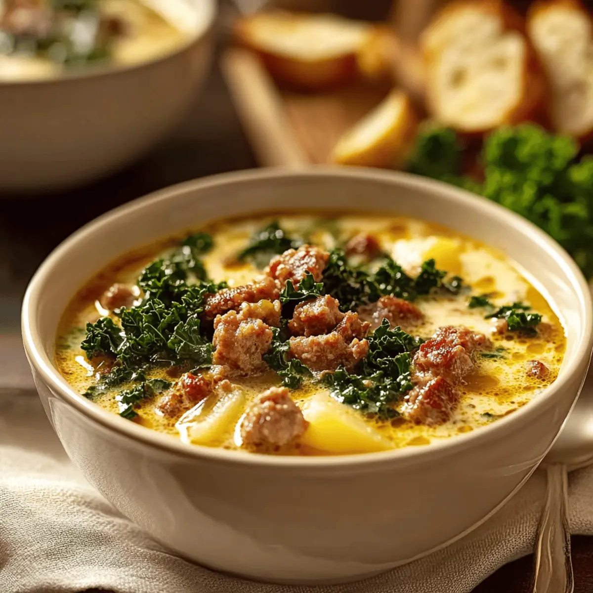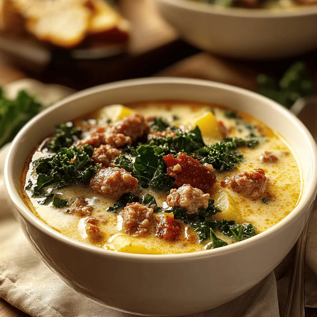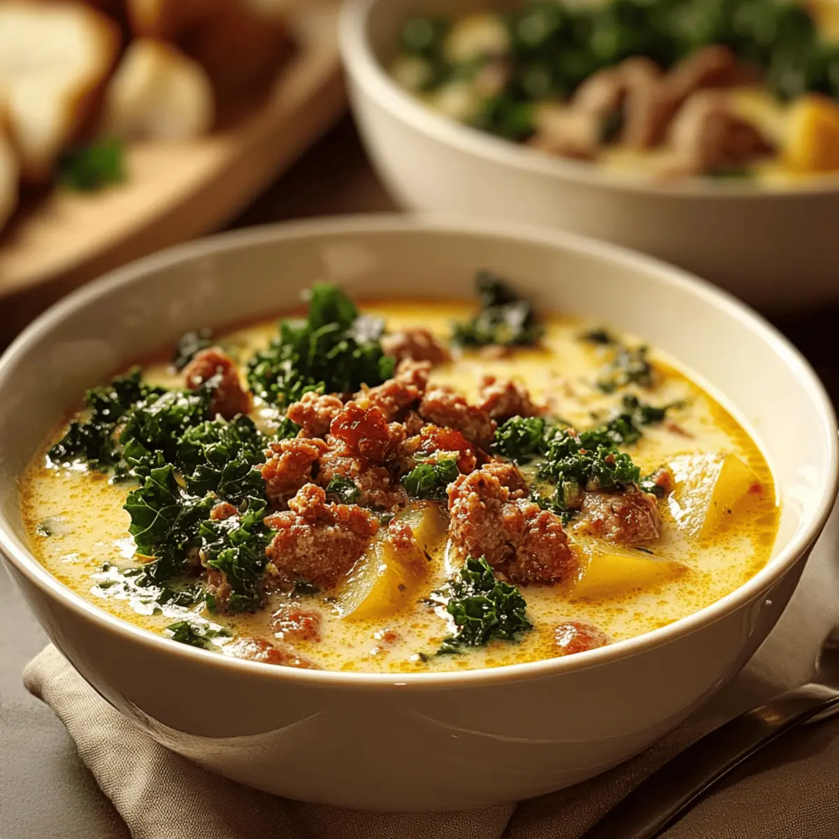 As I stirred the pot, the rich aromas of sizzling Italian sausage and fresh garlic enveloped my kitchen, transporting me straight to a rustic Tuscan village. This Hearty Zuppa Toscana is more than just a comforting soup; it’s a warm invitation to gather around the table and share laughter and stories with loved ones. Packed with tender potatoes, vibrant kale, and the creaminess of heavy cream, this dish transforms everyday ingredients into a meal to remember. What I adore about this version is its customizable nature; whether you prefer it spicy or mild, with sausage or a vegetarian twist, it easily adapts to satisfy everyone’s cravings. Not only is it a crowd-pleaser, but the leftovers deepen in flavor, making busy weekdays a breeze. Are you ready to create your own bowl of cozy goodness? Why is Zuppa Toscana a Must-Try? Simplicity at Its Best: Whipping up this creamy soup is a delightful breeze, requiring only a handful of ingredients and straightforward techniques. Customizable to Perfection: Whether you go for spicy Italian sausage or a veggie-packed version, your preferences lead the way. Nutrient-Rich Goodness: Packed with kale and potatoes, this soup offers a hearty dose of vitamins and minerals to nourish your body. Perfect for Leftovers: The flavors deepen and meld beautifully, ensuring every reheated bowl is just as delightful! Crowd-Pleasing Comfort: Whether it’s family dinner or a gathering with friends, Zuppa Toscana brings everyone together for a warm, cozy experience—because who can resist a bowl of goodness like this? By the way, if you’re looking for side dishes to complement your meal, check out my recommendations for delicious bread pairings. Zuppa Toscana Ingredients For the Soup • Italian Sausage – This deliciously seasoned sausage adds heartiness; choose mild or spicy based on your taste preference. • Potatoes – Yukon Gold or Russet are best as they maintain their texture while soaking up the rich broth. • Onion – Adds aromatic sweetness; sautéing really brings out its flavor, enhancing the overall experience. • Garlic – Minced garlic is crucial as it infuses the soup with a fragrant note and depth. • Chicken Broth – This serves as the flavorful base, enriching the soup beautifully as it simmers with the other ingredients. • Kale – Not only nutritious, but it also adds a slightly bitter touch that balances beautifully with the richness; swap for spinach if preferred. • Heavy Cream – Makes the soup luxuriously creamy; or use half-and-half for a lighter touch. • Red Pepper Flakes – Optional, but adds a nice kick if you want to spice things up! • Salt and Pepper – Essential for seasoning; adjust to taste for the perfect finish. • Olive Oil – Used to sauté the sausage and veggies, infusing the soup with extra flavor. Optional Topping • Crusty Bread – Serve on the side for a perfect dipping companion to your hearty Zuppa Toscana! Step‑by‑Step Instructions for Zuppa Toscana Step 1: Heat the Oil In a large pot or Dutch oven, heat two tablespoons of olive oil over medium heat. Allow the oil to shimmer, which signals it’s ready for cooking. This initial step sets the perfect stage for sautéing the sausage and vegetables, infusing the entire Zuppa Toscana with rich flavor. Step 2: Cook the Sausage Add one pound of Italian sausage to the hot oil, breaking it apart with a wooden spoon. Cook the sausage for about 5-7 minutes, stirring occasionally until it’s nicely browned and cooked through. This step brings out savory notes, creating a flavorful base for your soup. If there’s excess fat, drain it for a lighter dish. Step 3: Sauté the Aromatics Next, stir in one diced onion, cooking for 3-4 minutes until it becomes translucent and aromatic. Add in three minced garlic cloves and sauté for an additional minute, allowing the garlic to release its fragrant aroma. This will enhance the depth of flavor in the Zuppa Toscana, making it even more inviting. Step 4: Add the Potatoes and Broth Incorporate four diced Yukon Gold potatoes and pour in six cups of chicken broth. Raise the heat to bring the mixture to a gentle boil, then lower it to a simmer. Let it cook for around 15 minutes, or until the potatoes are tender and can be easily pierced with a fork. This step thickens the soup beautifully. Step 5: Include the Greens Add four cups of chopped kale to your pot, along with a pinch of red pepper flakes for a hint of spice. Cook for another 5 minutes, allowing the kale to wilt and infuse the Zuppa Toscana with its vibrant color and nutrients. This step provides that necessary balance to the richness of the soup. Step 6: Stir in Cream and Season Lower the heat and gently stir in one cup of heavy cream, allowing it to meld with the soup for 2-3 minutes until warmed through. Season with salt and pepper to taste, adjusting to achieve the perfect balance. This creamy addition transforms the Zuppa Toscana into a comforting, velvety delight. Step 7: Serve and Savor Ladle the hearty Zuppa Toscana into bowls and serve hot, optionally pairing it with crusty bread. The soup is not only satisfying but also a wonderful meal to share with loved ones, creating moments of warmth and togetherness as you enjoy each delicious spoonful. What to Serve with Hearty Zuppa Toscana? When it comes to enjoying this creamy Italian delight, pairing it with the right sides can elevate your meal to a whole new level. Crusty Bread: Perfect for dipping, this freshly baked bread complements the rich broth, making every bite satisfying and indulgent. There’s nothing quite like soaking up that last bit of soup! Simple Side Salad: A refreshing mix of greens, cherry tomatoes, and a tangy vinaigrette contrasts the soup’s creaminess and adds a light, crisp texture. Garlic Breadsticks: Warm, buttery breadsticks infused with garlic flavor add a delightful crunch and are a must-have for any Italian-inspired meal. Roasted Vegetables: Featuring vibrant seasona